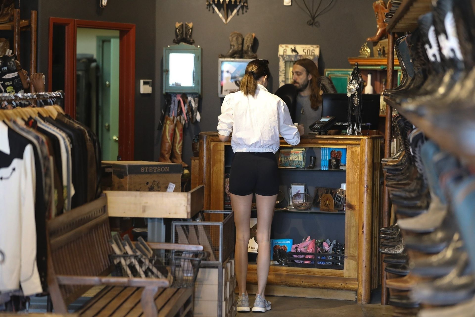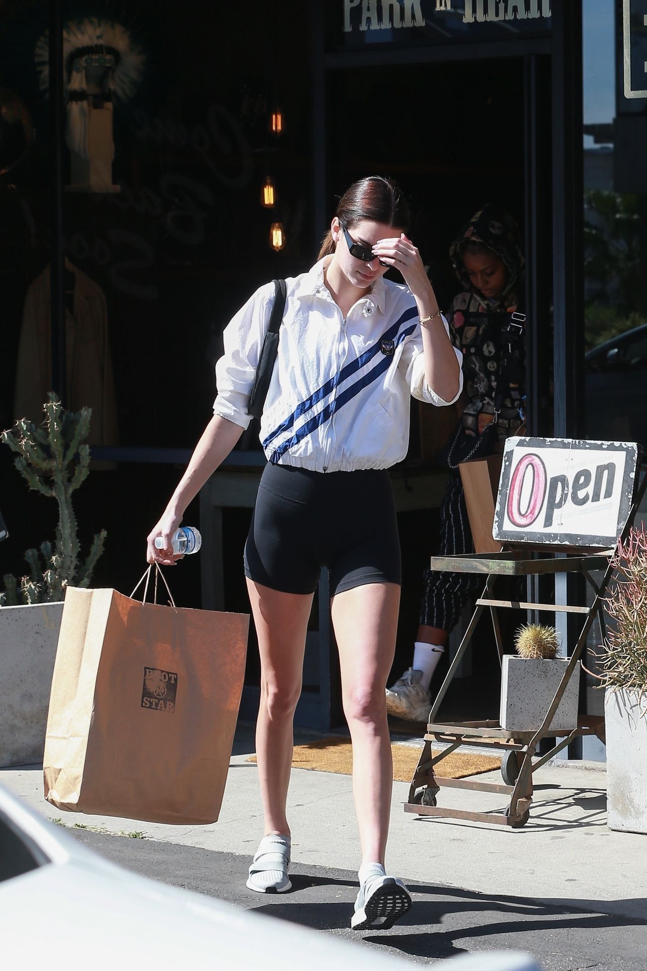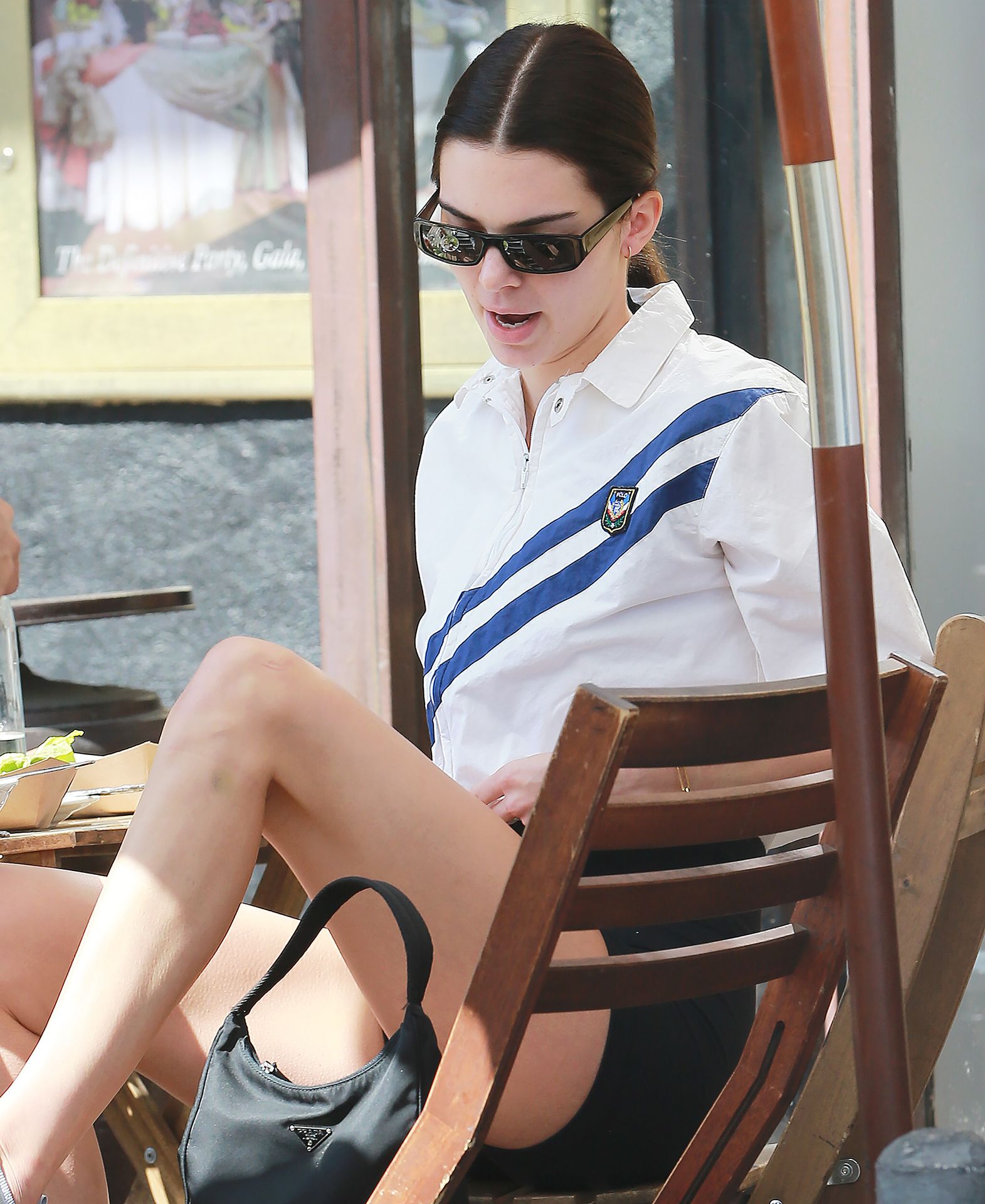 Kendall Jenner joins Fai Khadra, Zack Bia and other friends for lunch at Melrose Place, 03/05/2020. The supermodel then shows off her legs in a pair of sexy black biker shorts.