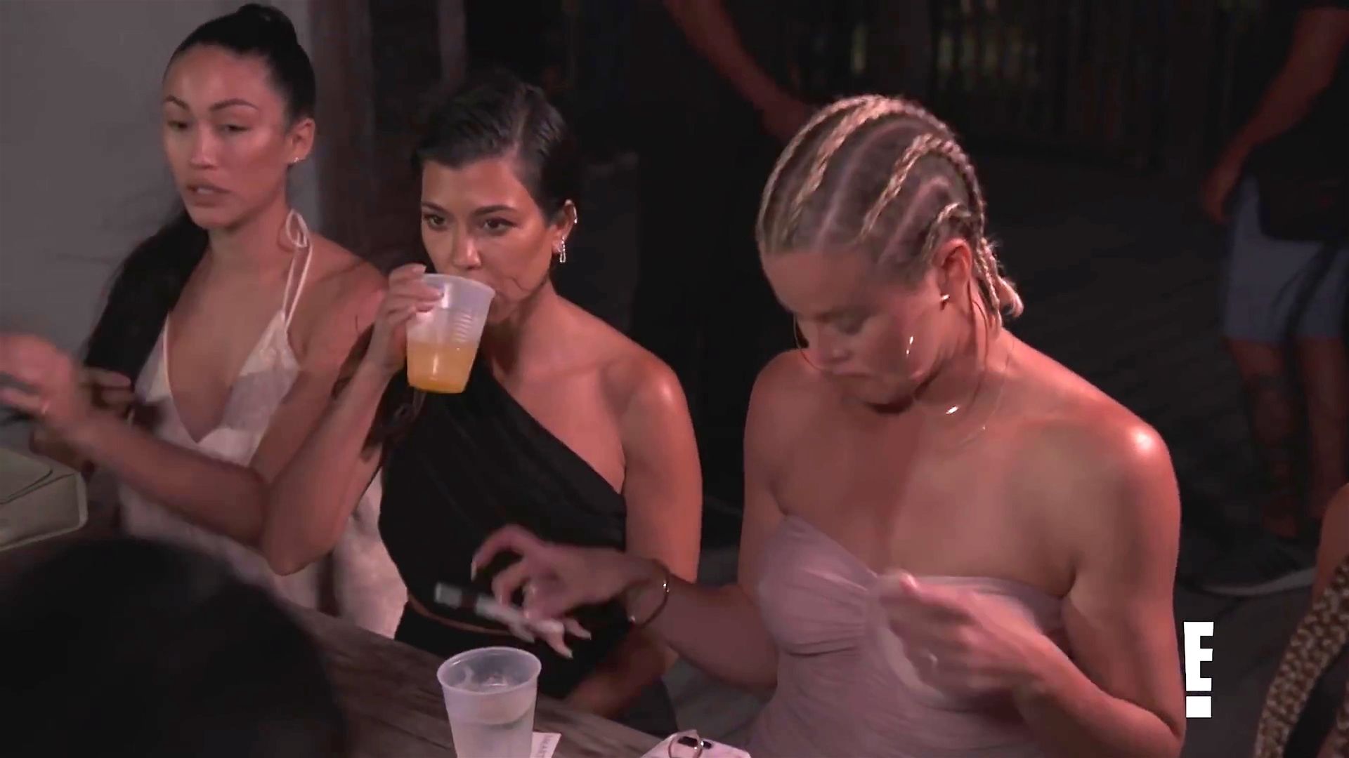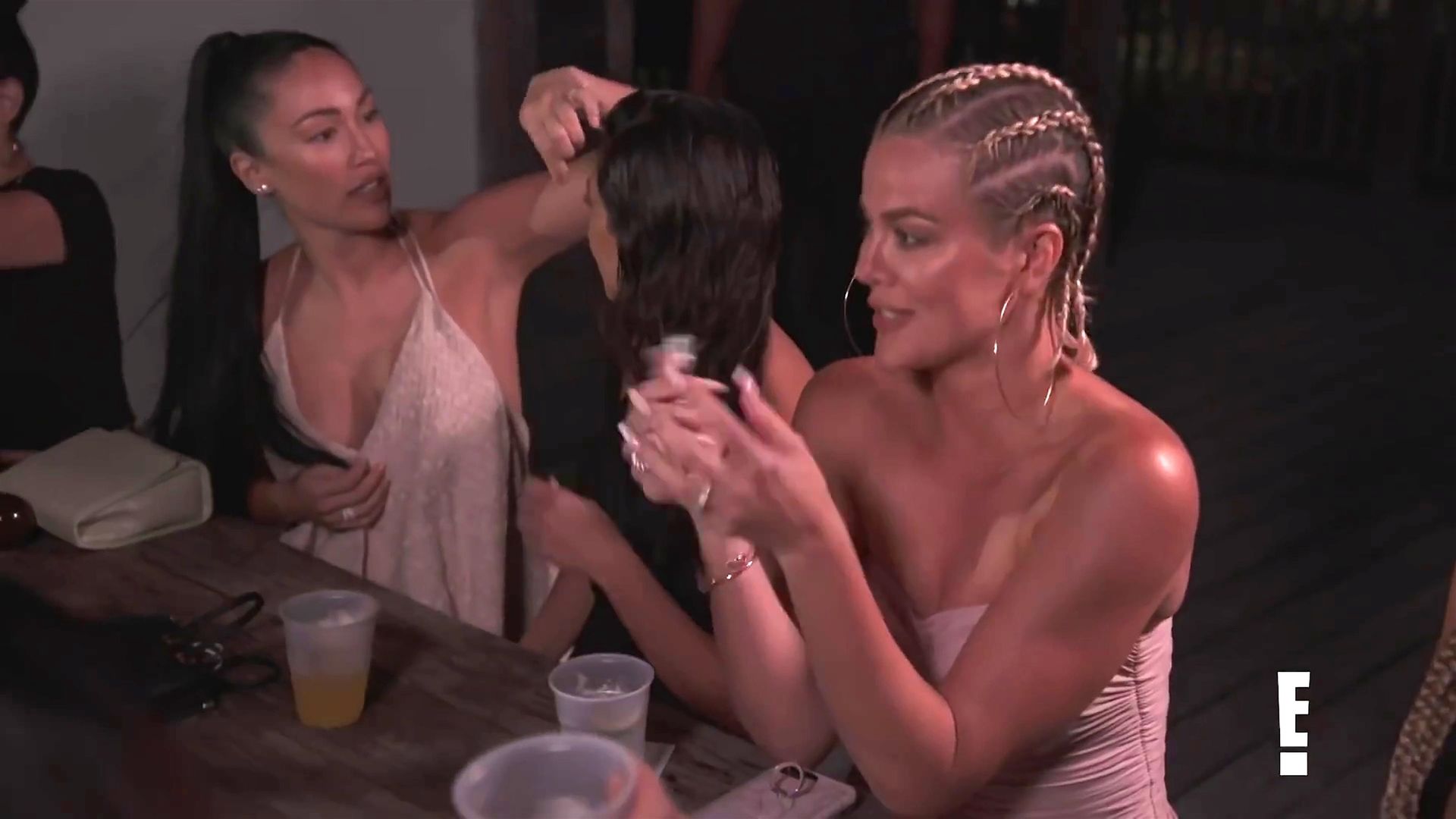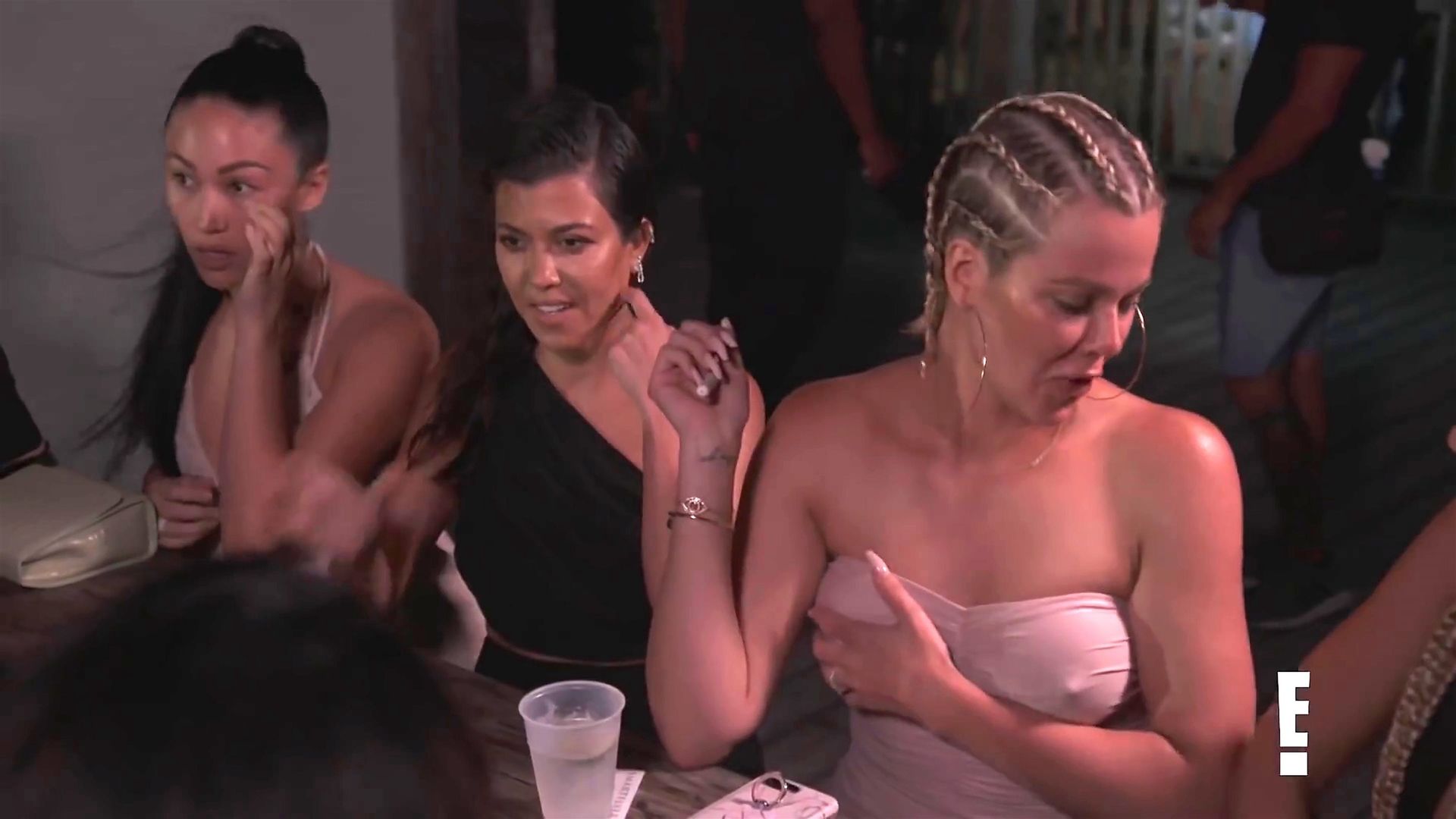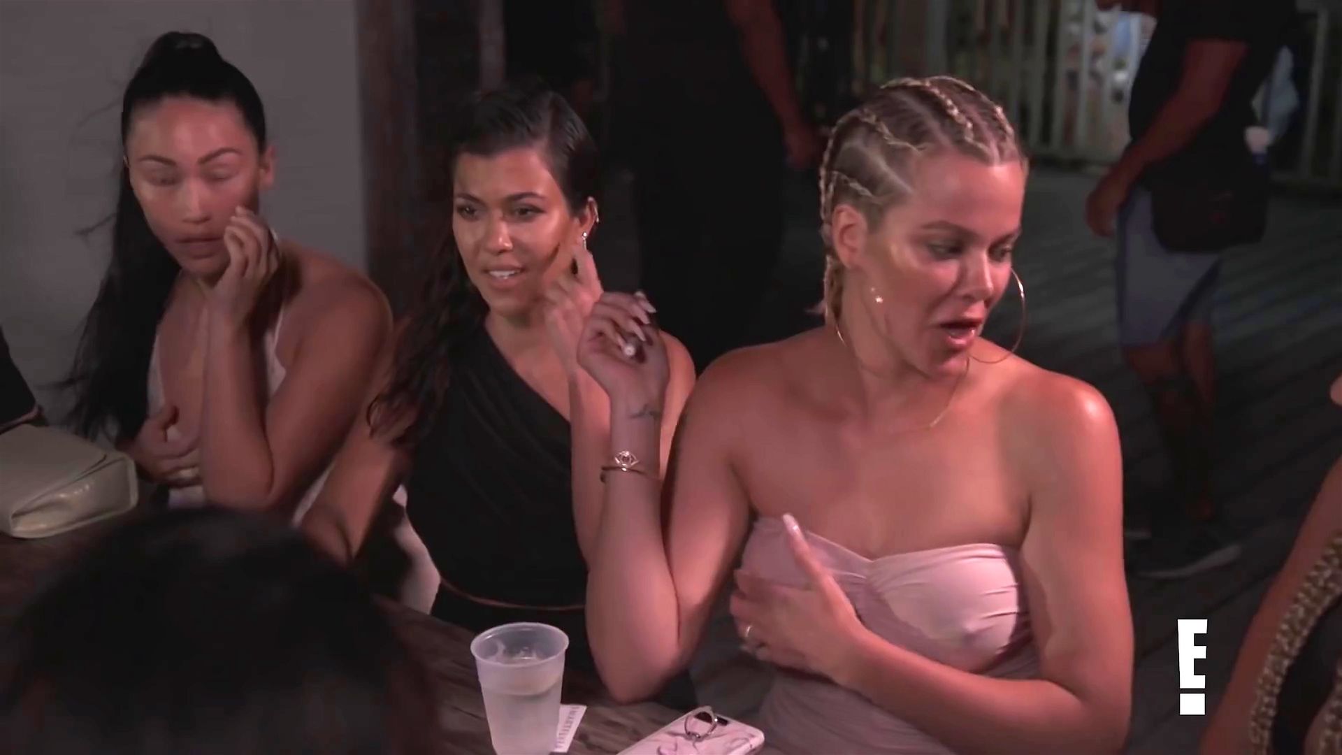 Khloé Kardashian gets a little cold and she’s not wearing a bra while celebrating sister Kourtney’s birthday in Turks & Caicos during a bonus scene from Keep Up With The Kardashians.