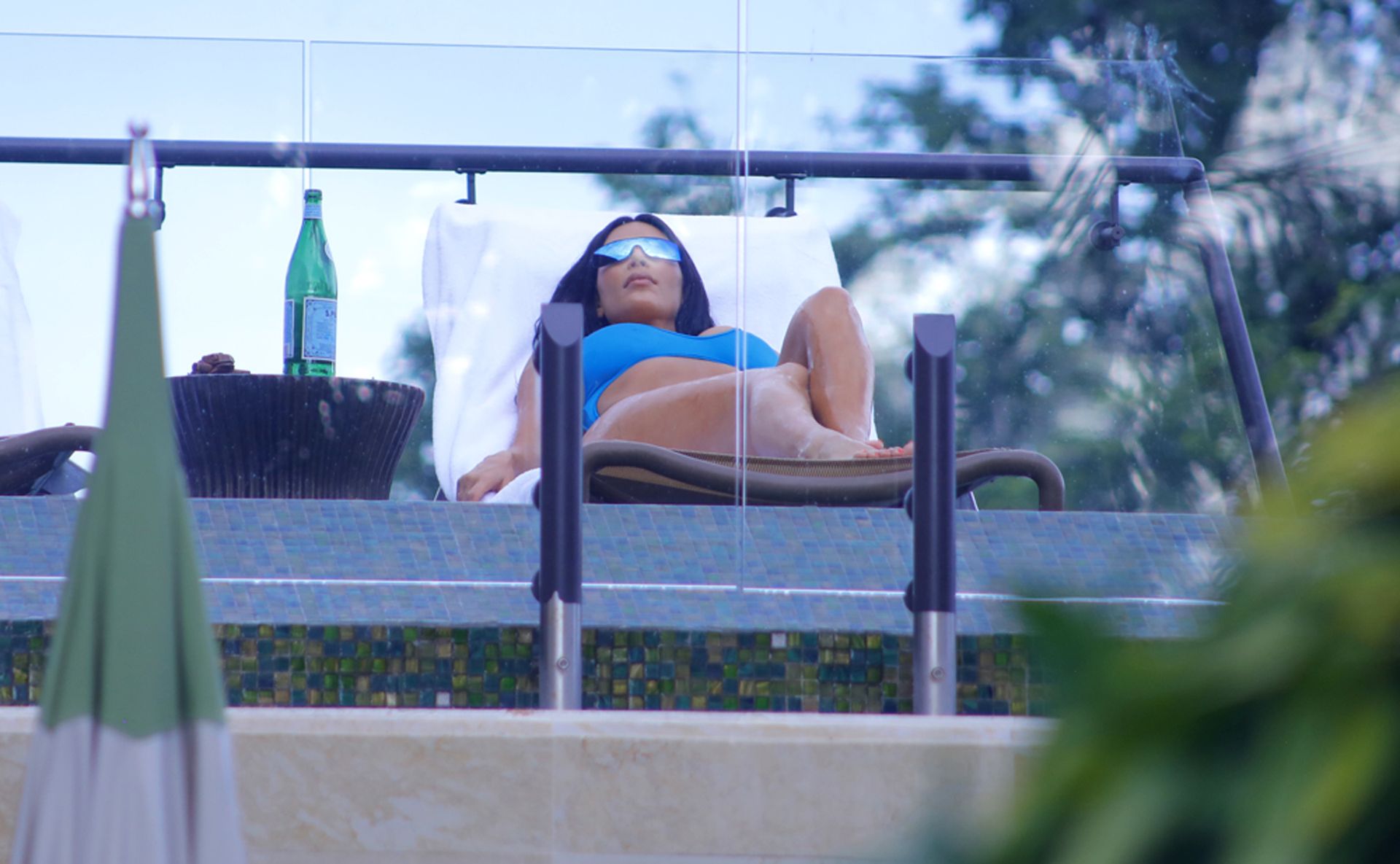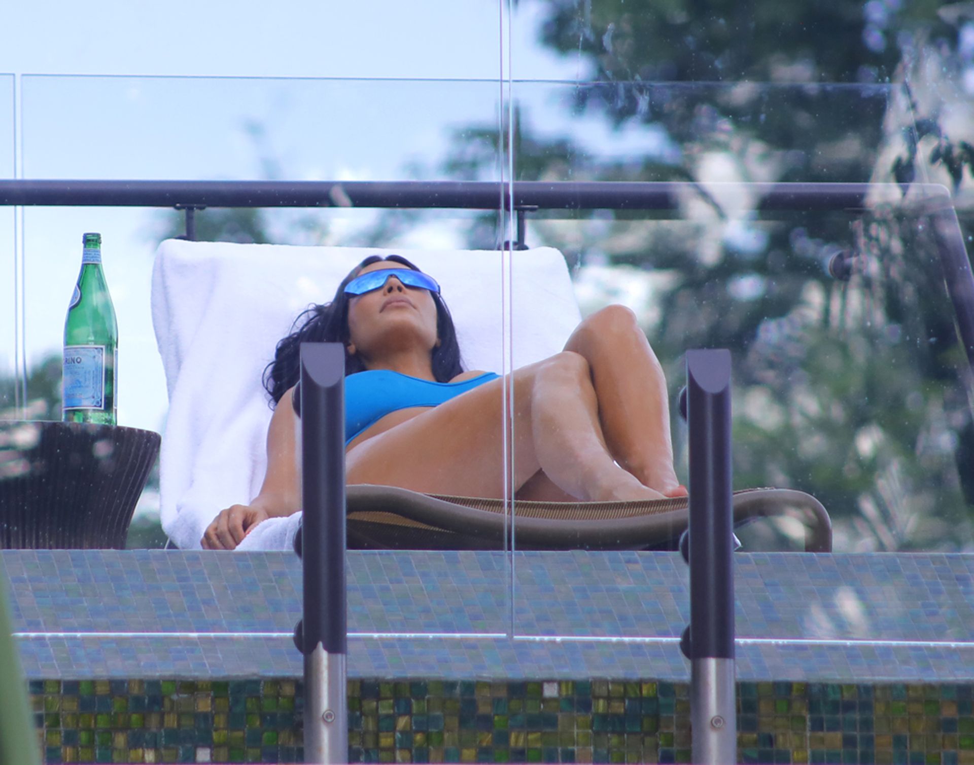 Kim Kardashian West wears an electric blue cut-out swimsuit, while soaking up the rays, on vacation with her family in Costa Rica, 06/21/2019.