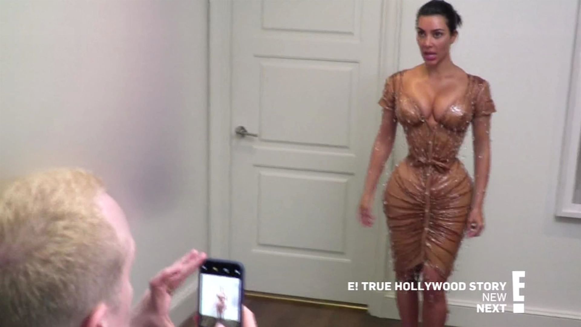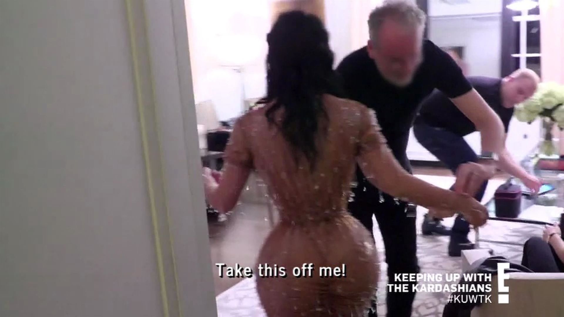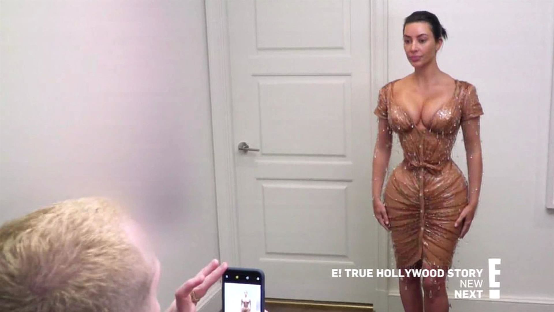 “If I gotta pee, it’s a problem,” says the KKW Beauty boss with concern. She appears to know this for a fact, since attempts to use the bathroom during Met Galas past were complicated enough – and she wasn’t wearing an ensemble that took 20 minutes and several sets of hands to fasten her into. Remembering 2018’s metallic Versace gown, Kim squats and explains: “I had to go like this and almost pee on the floor.” As for how a similar scenario might play out this year: “Can you just wear a diaper?” Kim’s friend Natalie Halcro asks cheekily. And though her comment is met with chuckles from Mugler’s manager, the suggestion honestly doesn’t sound like such a wild idea once Kanye West’s wife proposes her own. “If it’s an emergency, I think I pee my pants and then have my sister wipe my leg up,” she tells the room, dead serious. “I’m not even joking. She can wipe my leg up.”