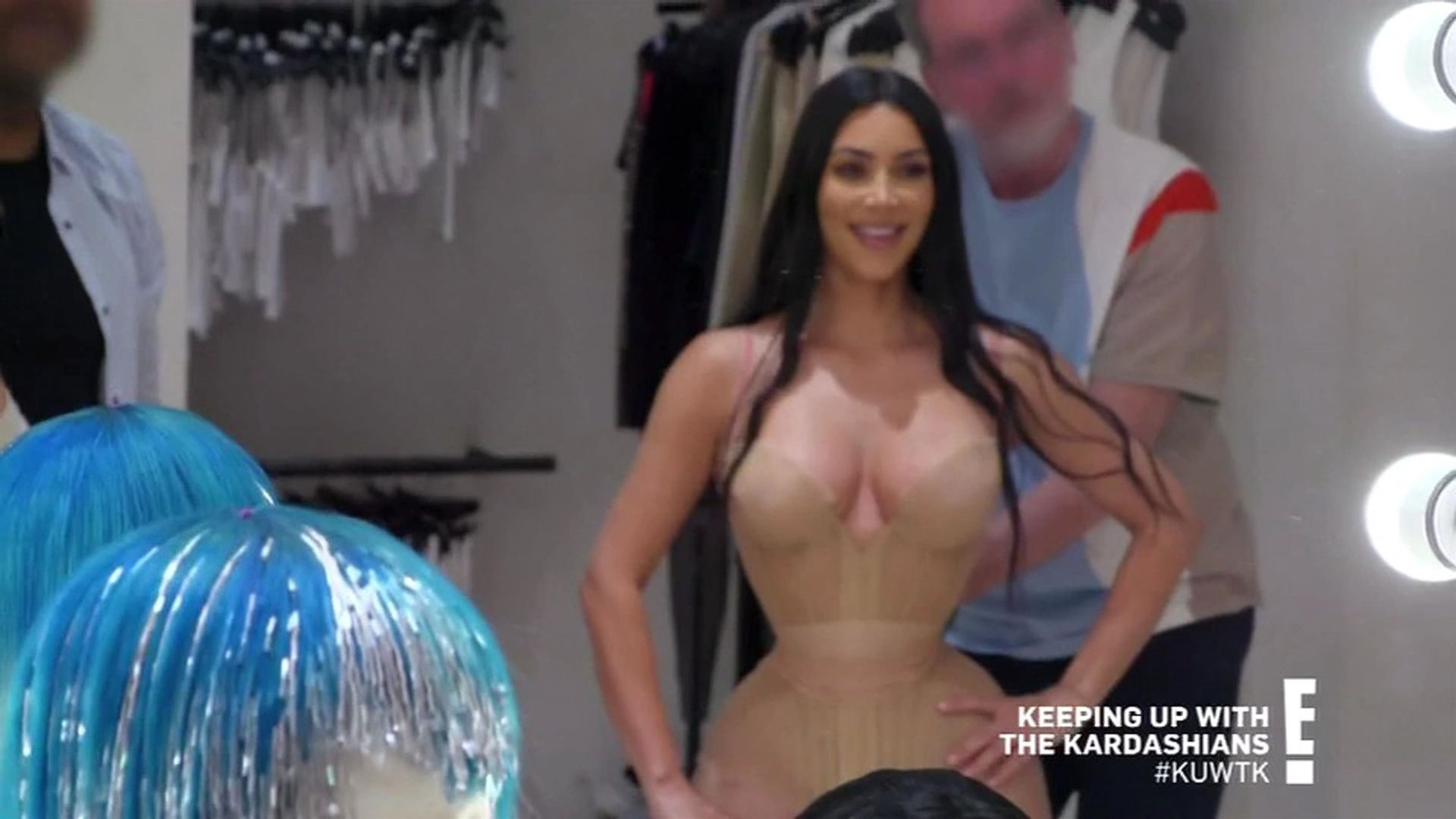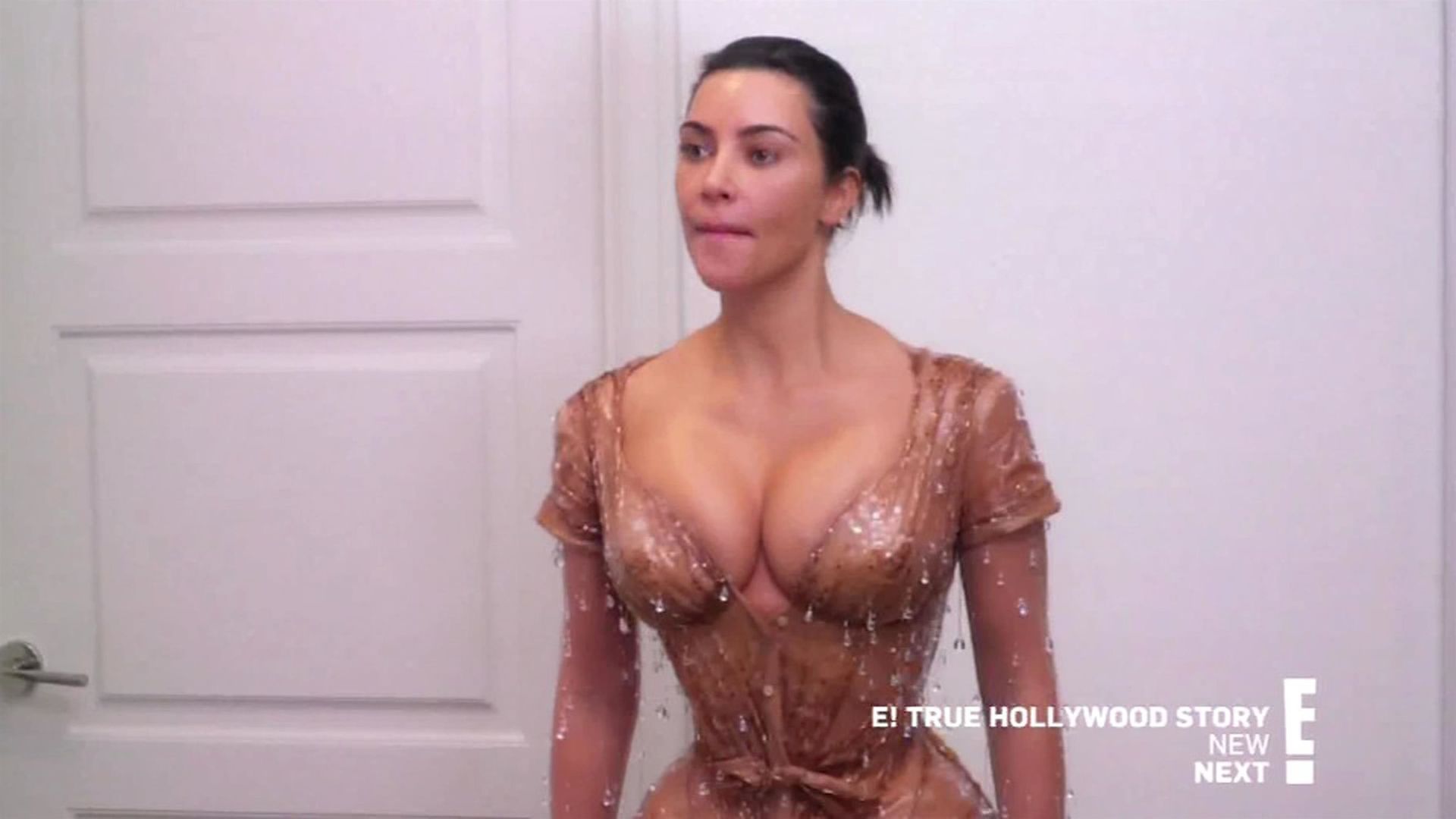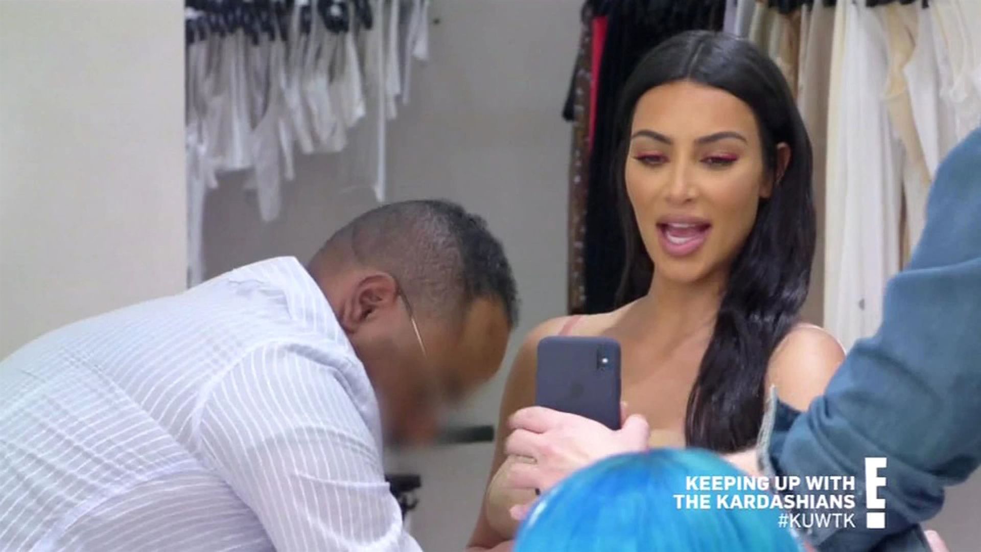 “If I gotta pee, it’s a problem,” says the KKW Beauty boss with concern. She appears to know this for a fact, since attempts to use the bathroom during Met Galas past were complicated enough – and she wasn’t wearing an ensemble that took 20 minutes and several sets of hands to fasten her into. Remembering 2018’s metallic Versace gown, Kim squats and explains: “I had to go like this and almost pee on the floor.” As for how a similar scenario might play out this year: “Can you just wear a diaper?” Kim’s friend Natalie Halcro asks cheekily. And though her comment is met with chuckles from Mugler’s manager, the suggestion honestly doesn’t sound like such a wild idea once Kanye West’s wife proposes her own. “If it’s an emergency, I think I pee my pants and then have my sister wipe my leg up,” she tells the room, dead serious. “I’m not even joking. She can wipe my leg up.”