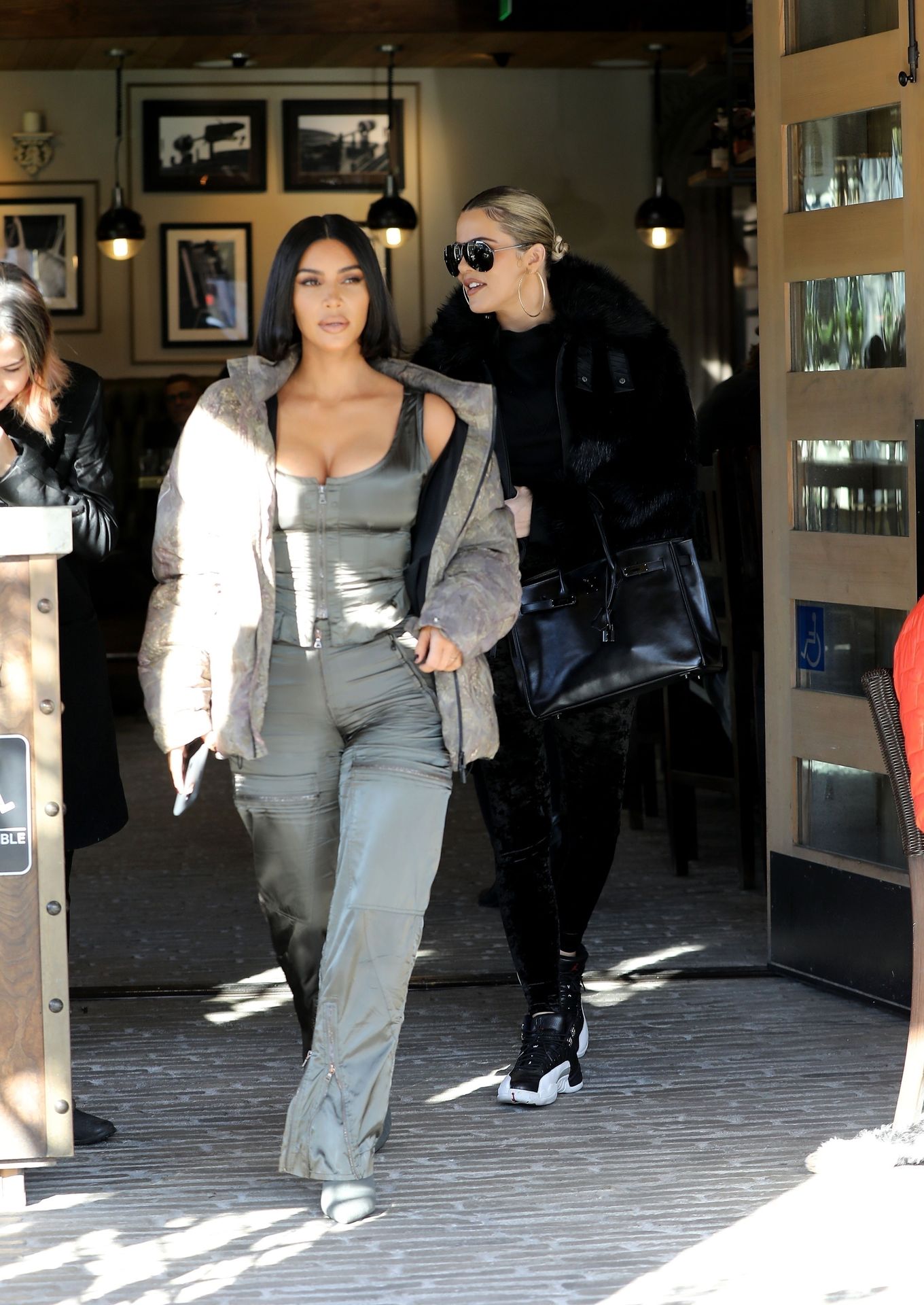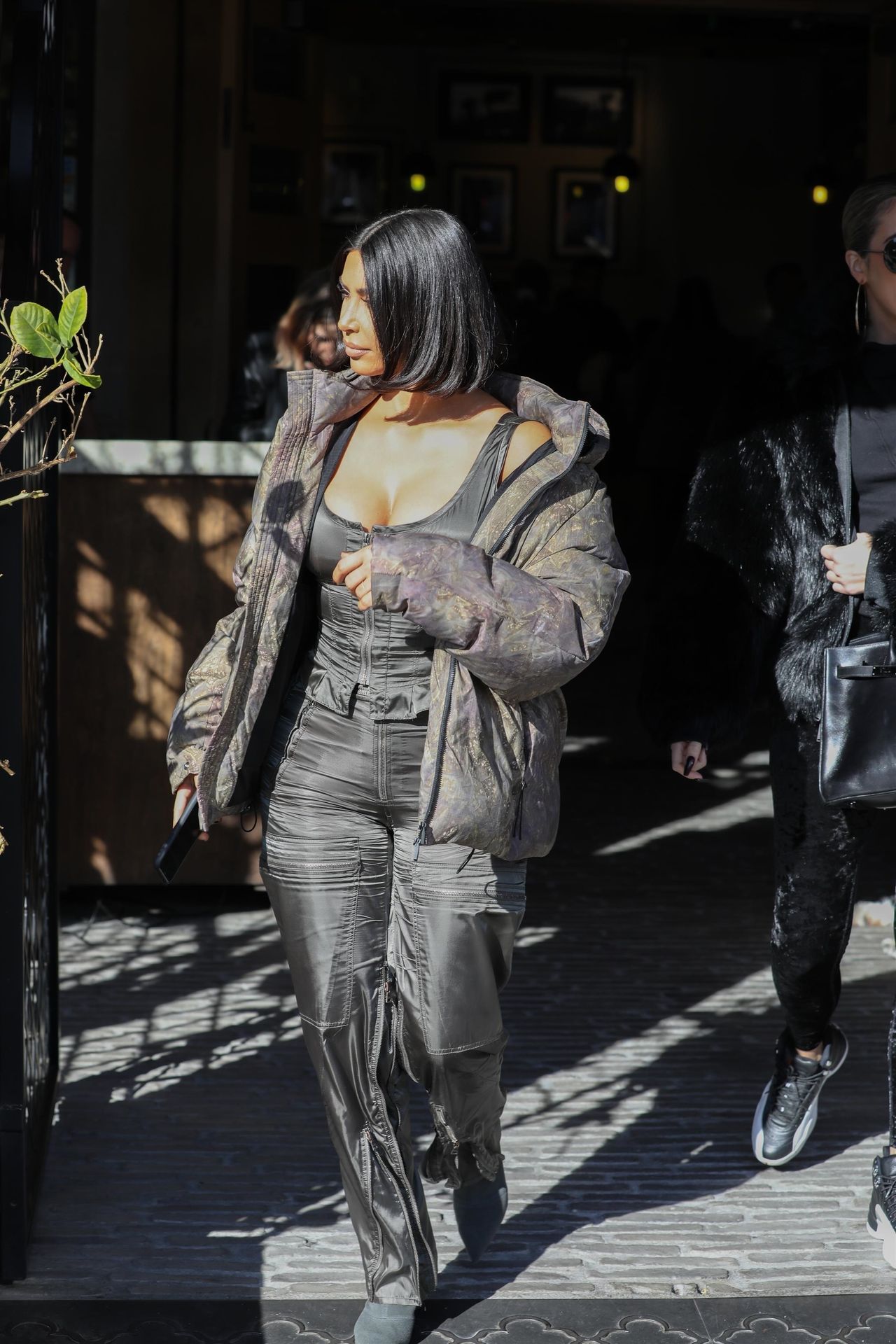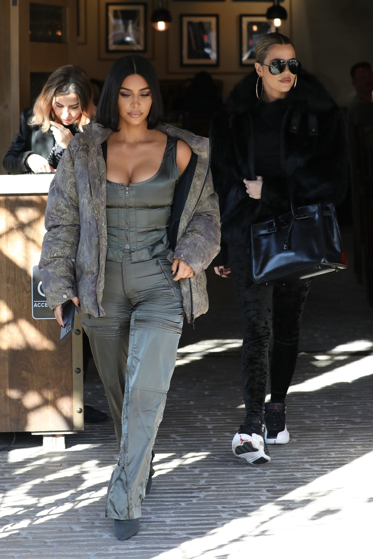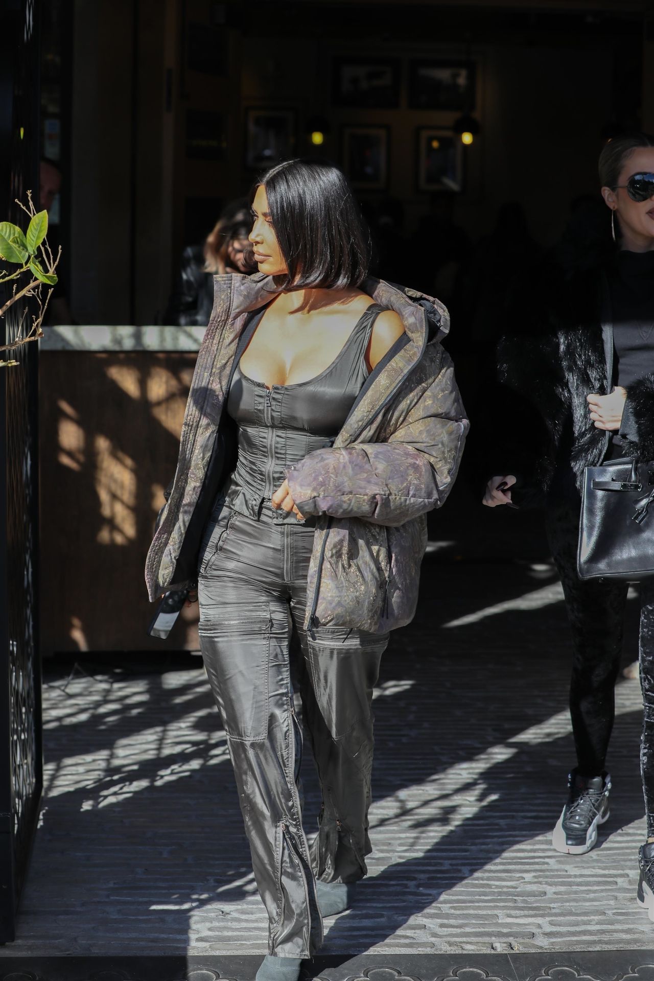 Reality Stars Kim Kardashian arrives at the Grandville Restaurant in Studio City with a new shorter hairstyle, 12/02/2019. Kim and Khloe Kardashian leave after lunch together.