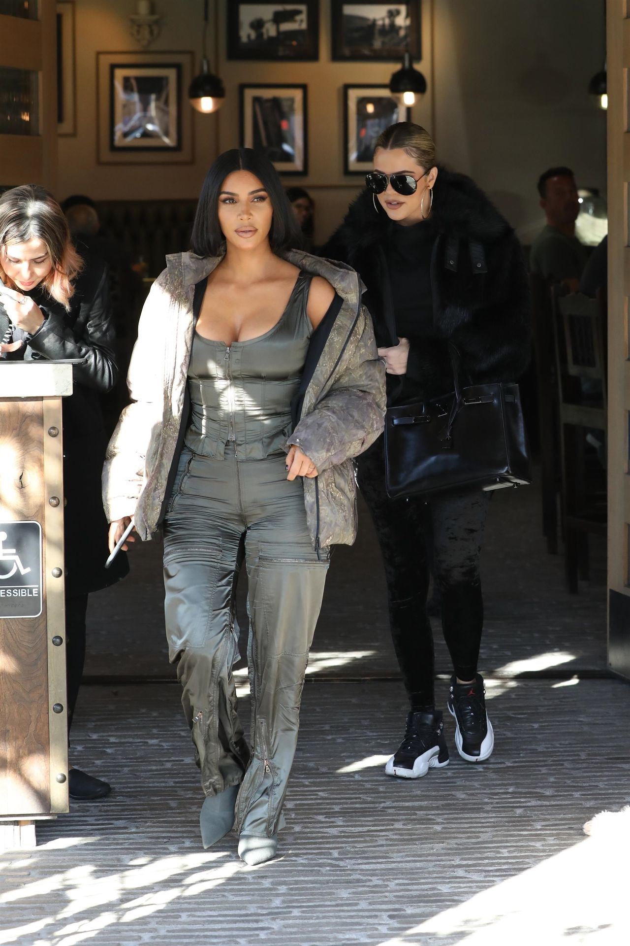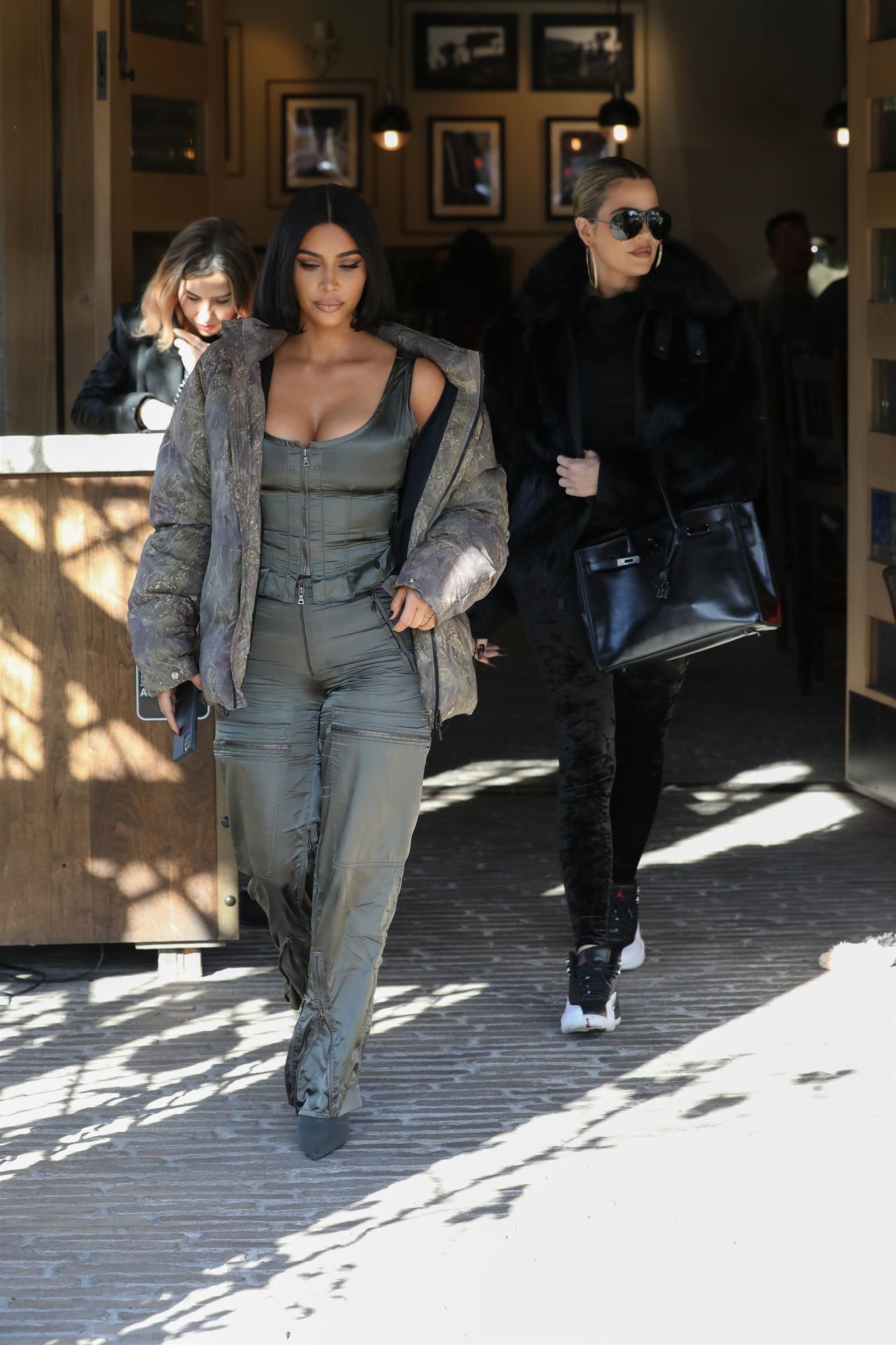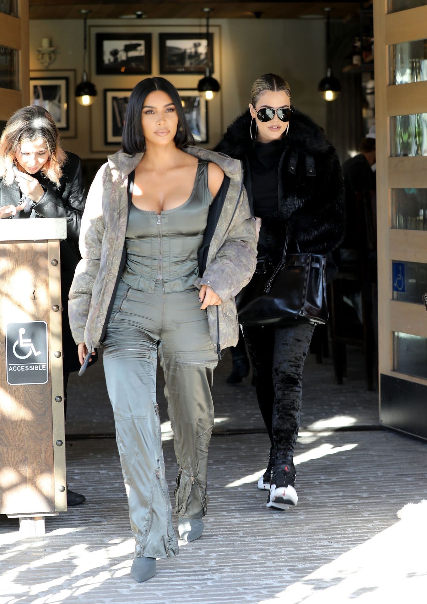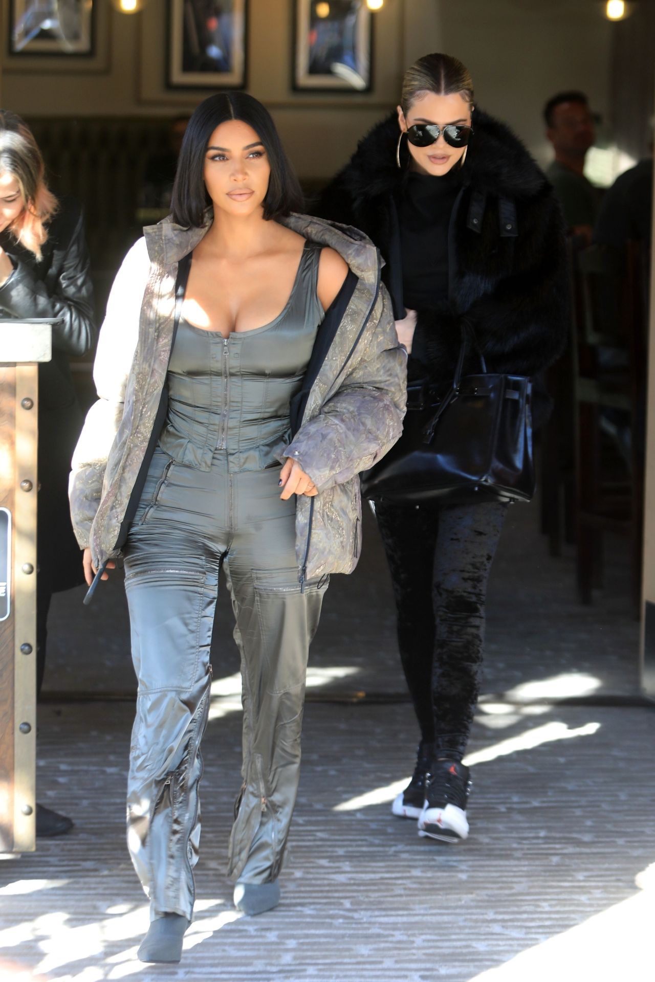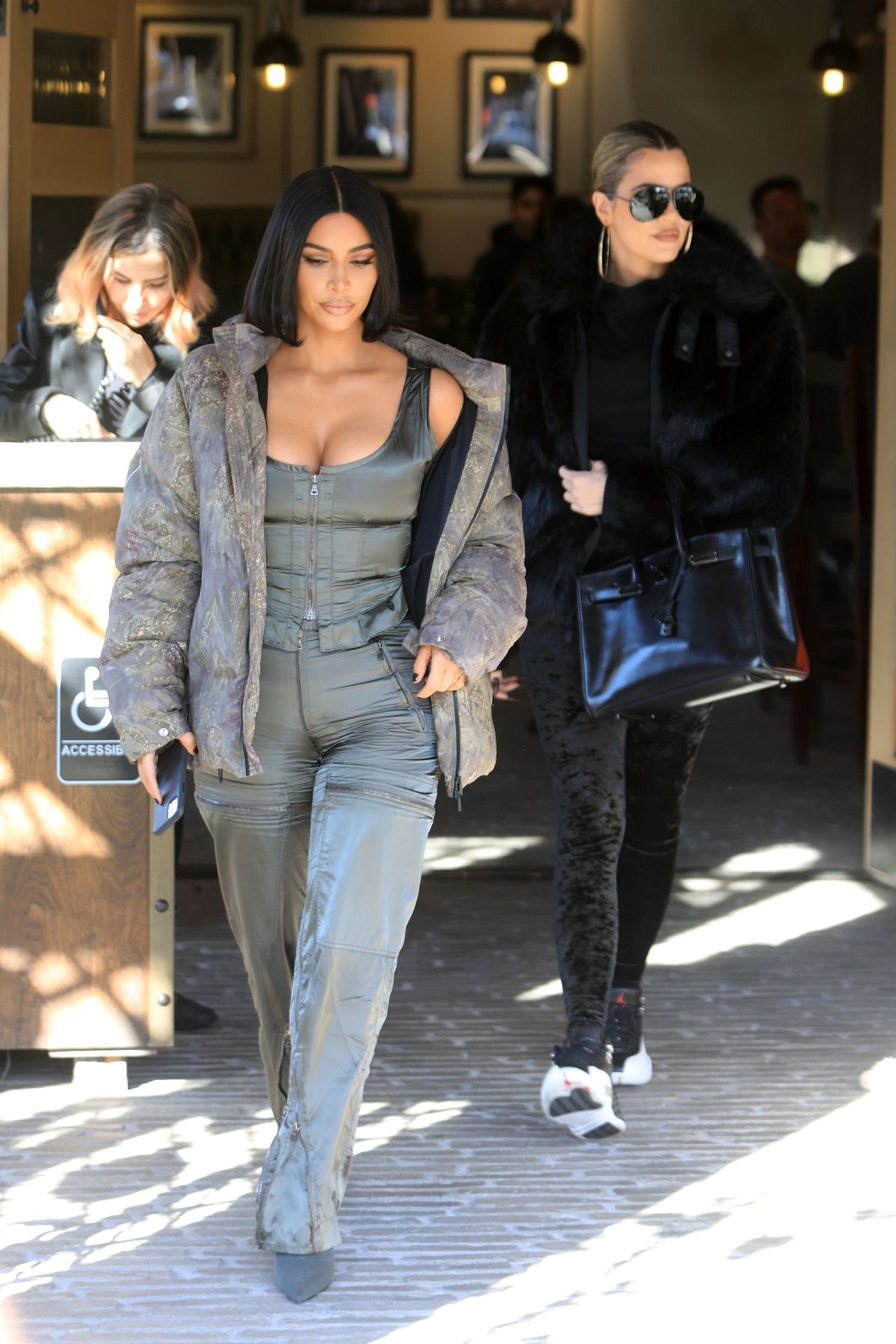 Reality Stars Kim Kardashian arrives at the Grandville Restaurant in Studio City with a new shorter hairstyle, 12/02/2019. Kim and Khloe Kardashian leave after lunch together.