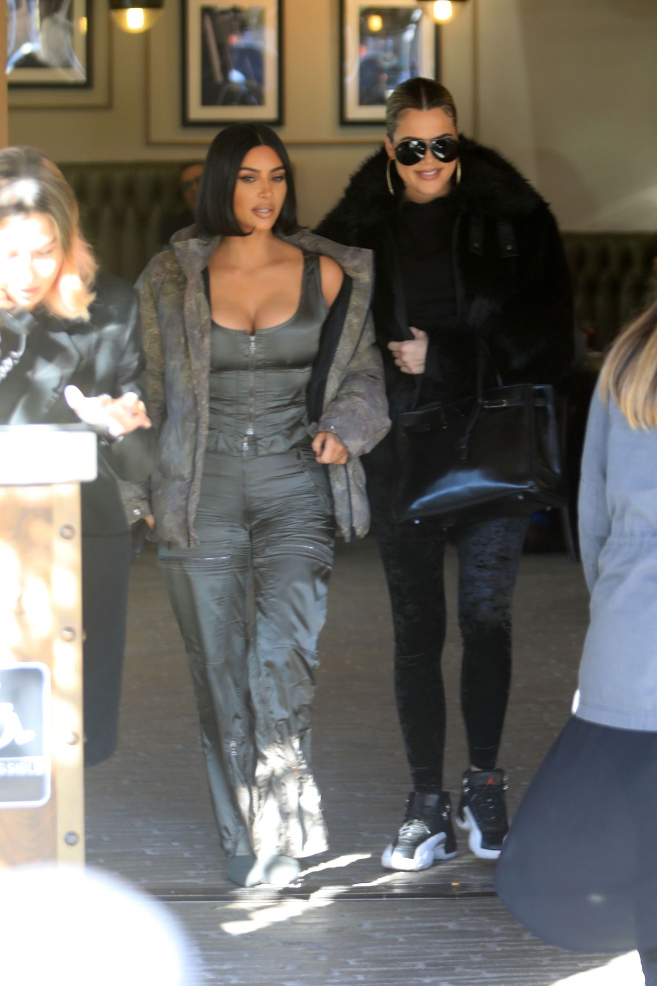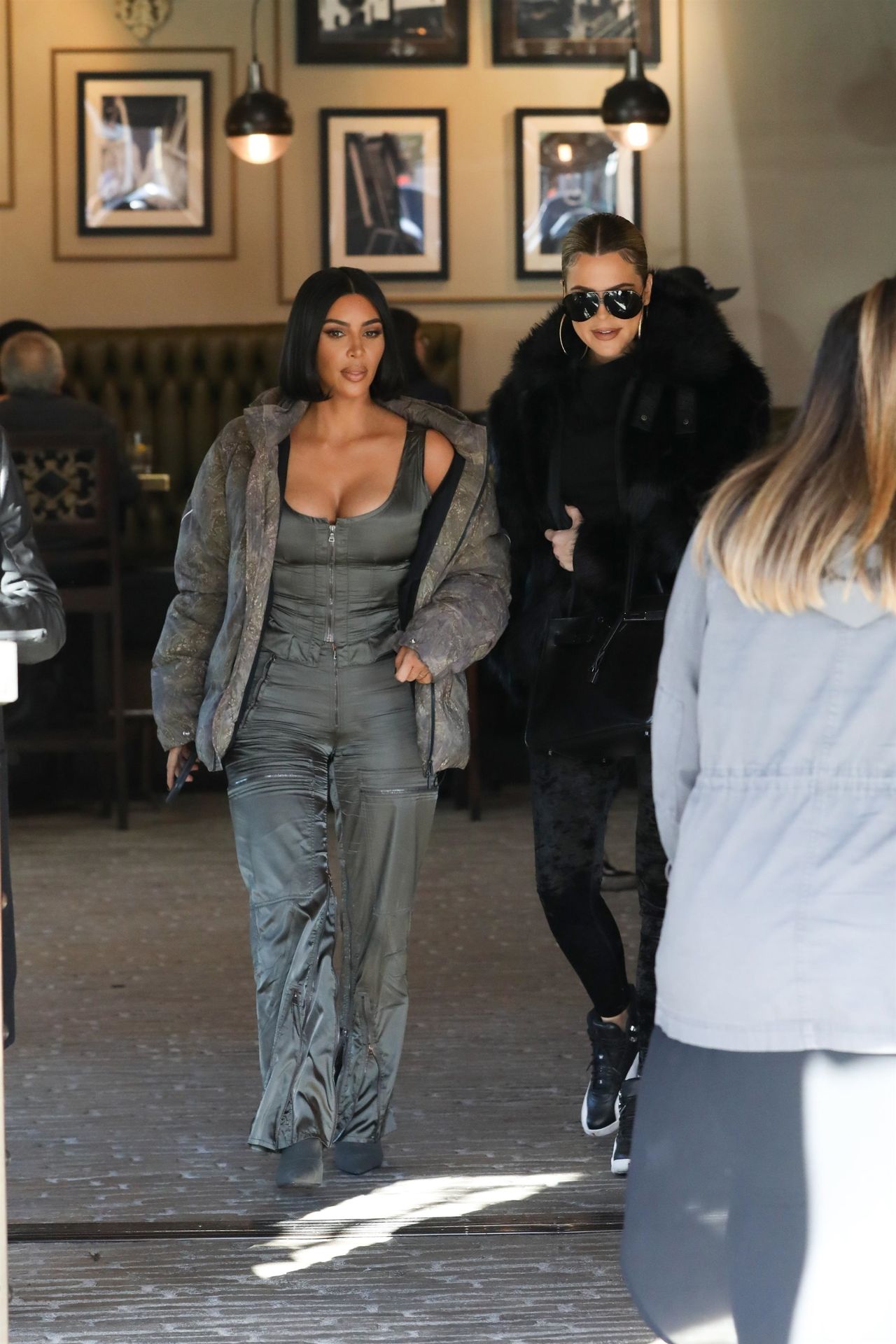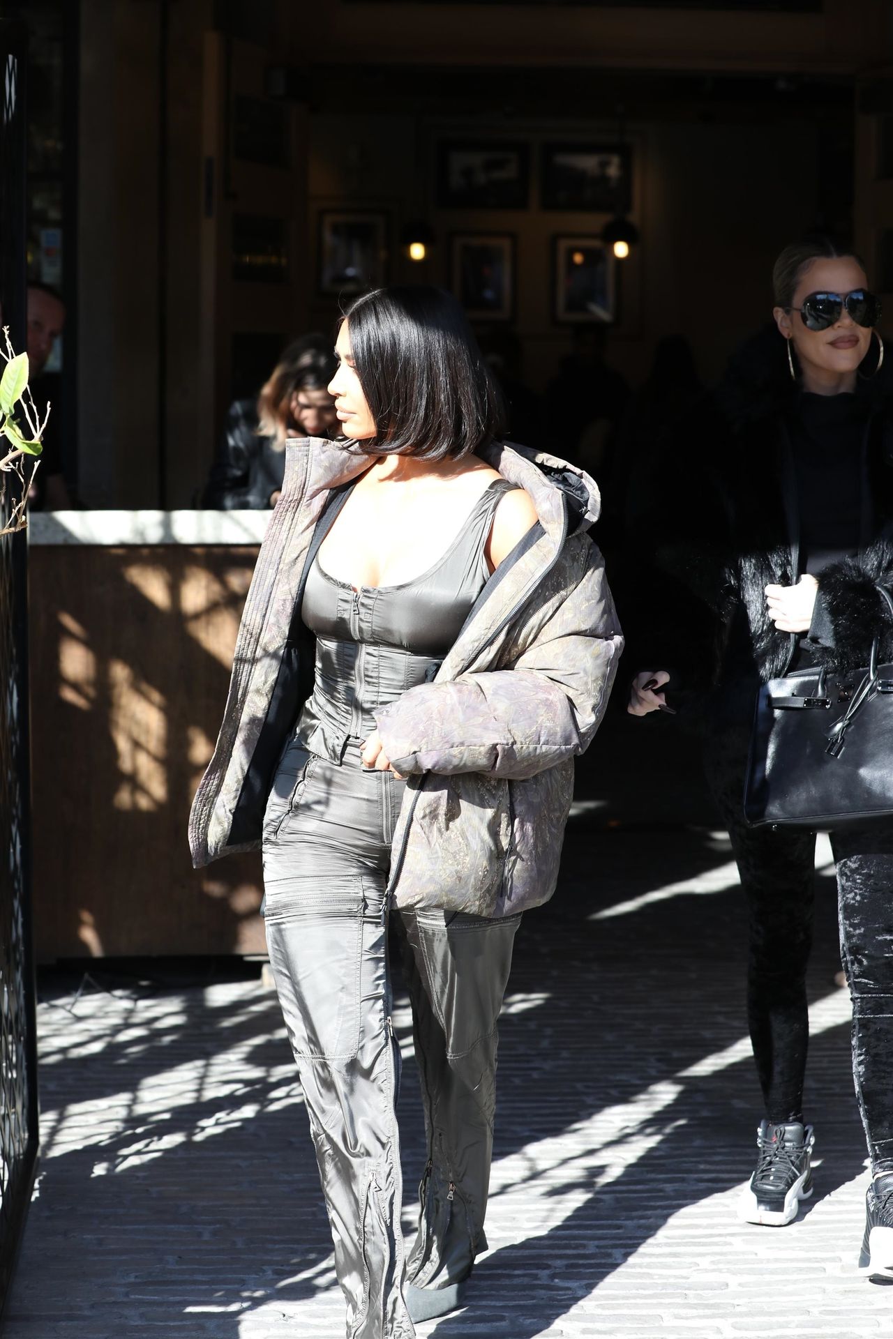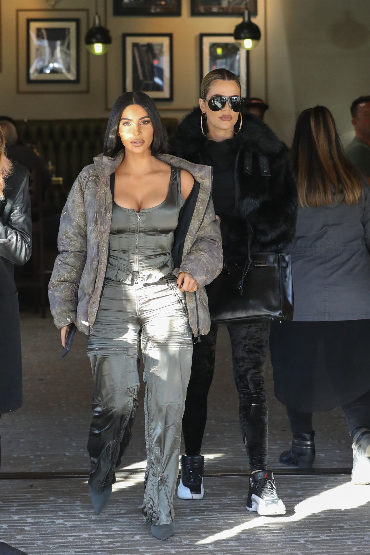 Reality Stars Kim Kardashian arrives at the Grandville Restaurant in Studio City with a new shorter hairstyle, 12/02/2019. Kim and Khloe Kardashian leave after lunch together.