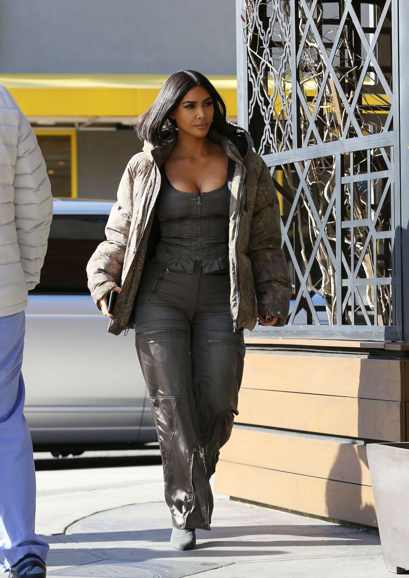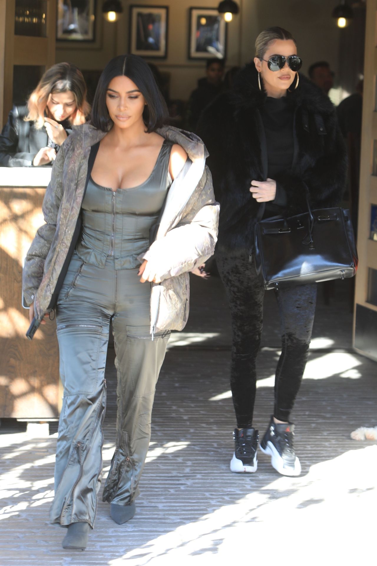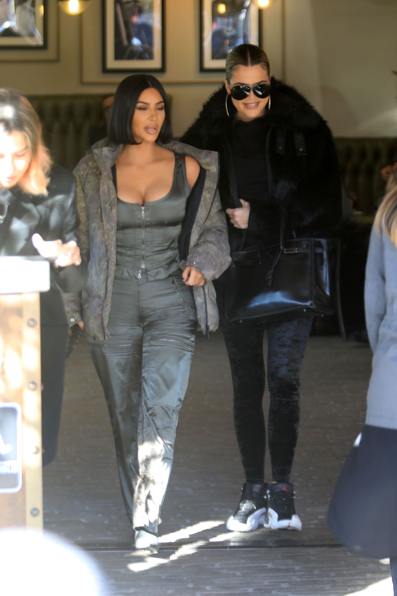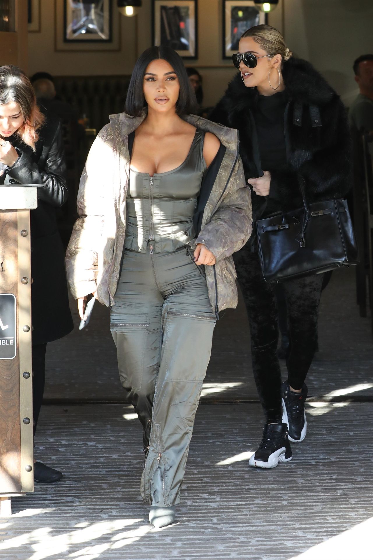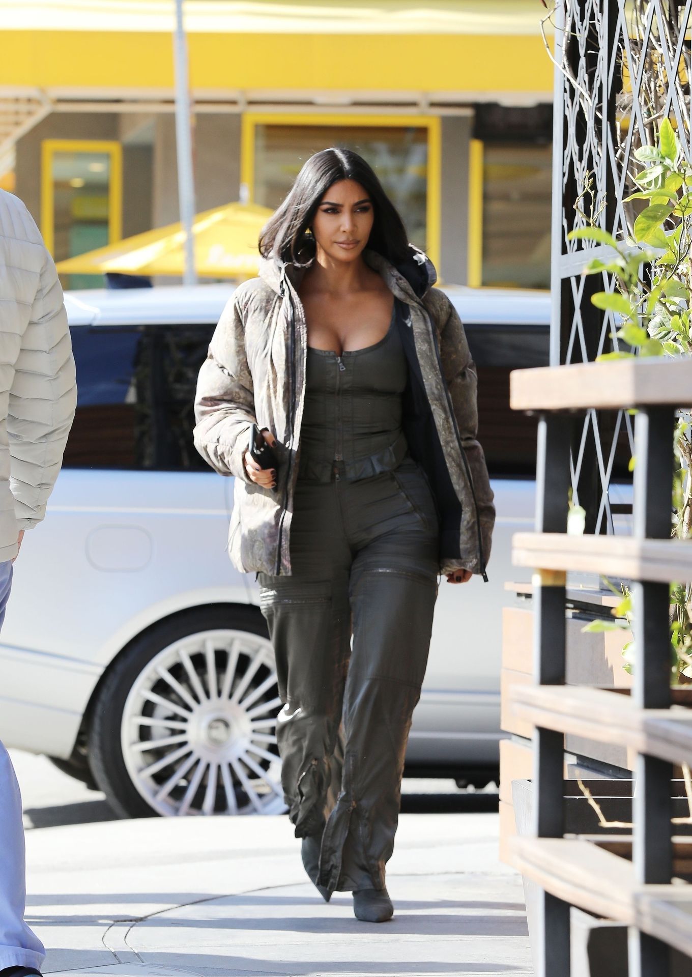 Reality Stars Kim Kardashian arrives at the Grandville Restaurant in Studio City with a new shorter hairstyle, 12/02/2019. Kim and Khloe Kardashian leave after lunch together.