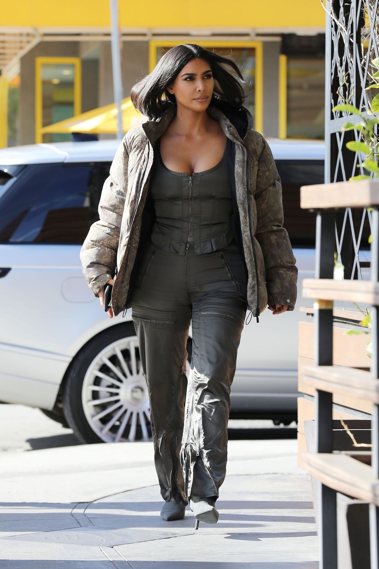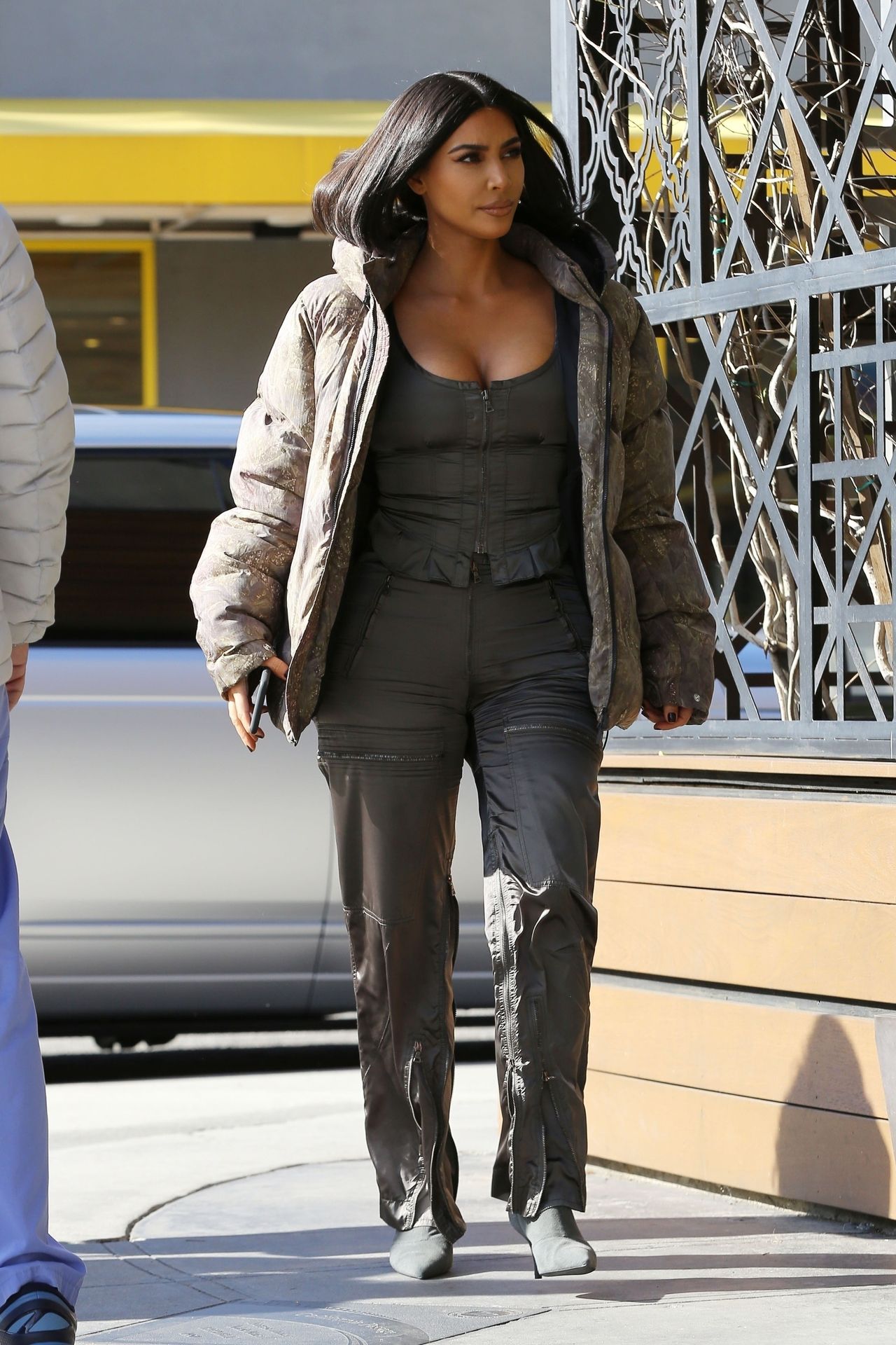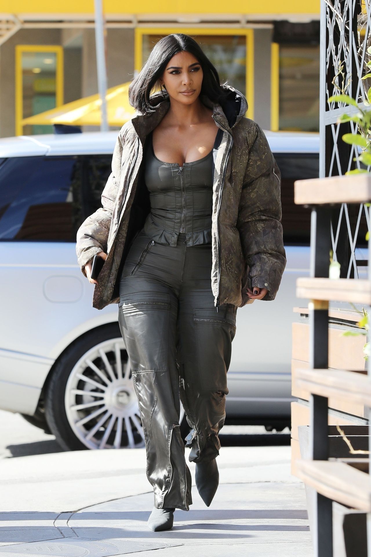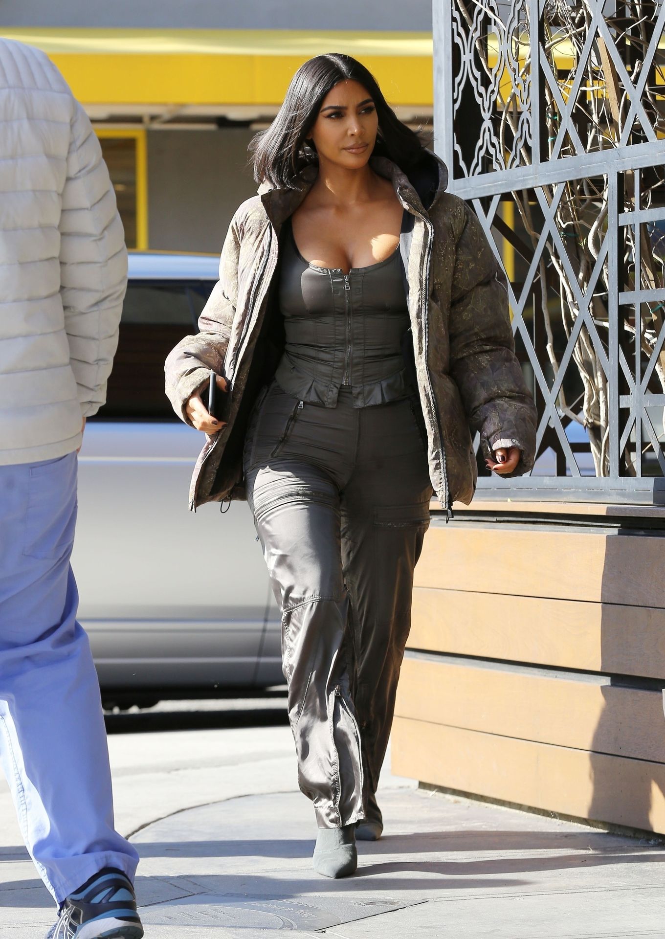 Reality Stars Kim Kardashian arrives at the Grandville Restaurant in Studio City with a new shorter hairstyle, 12/02/2019. Kim and Khloe Kardashian leave after lunch together.