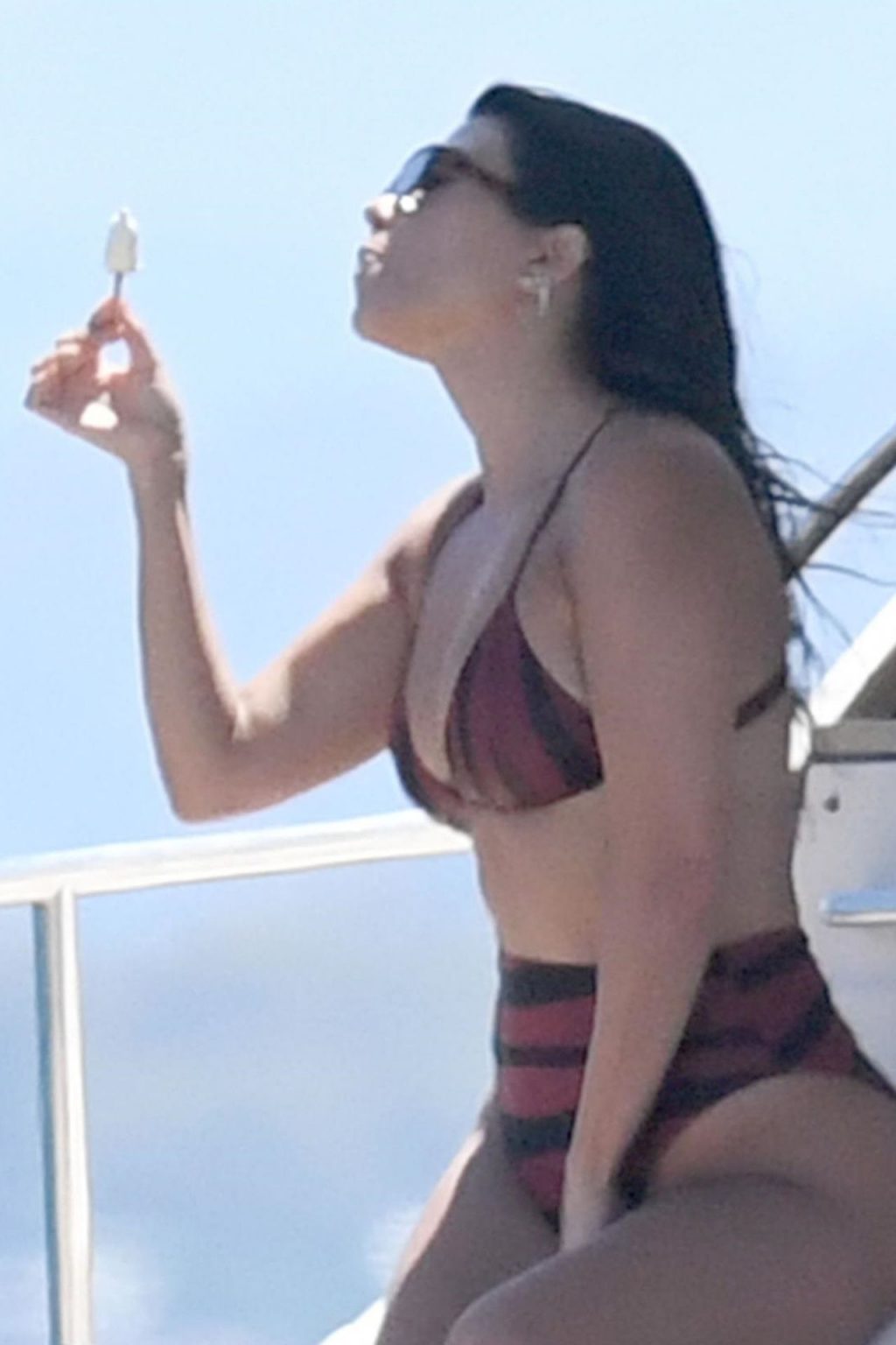 Kourtney Kardashian shows off her hot body wearing a two-piece bikini while enjoying her vacation in Sardinia, 07/30/2019.