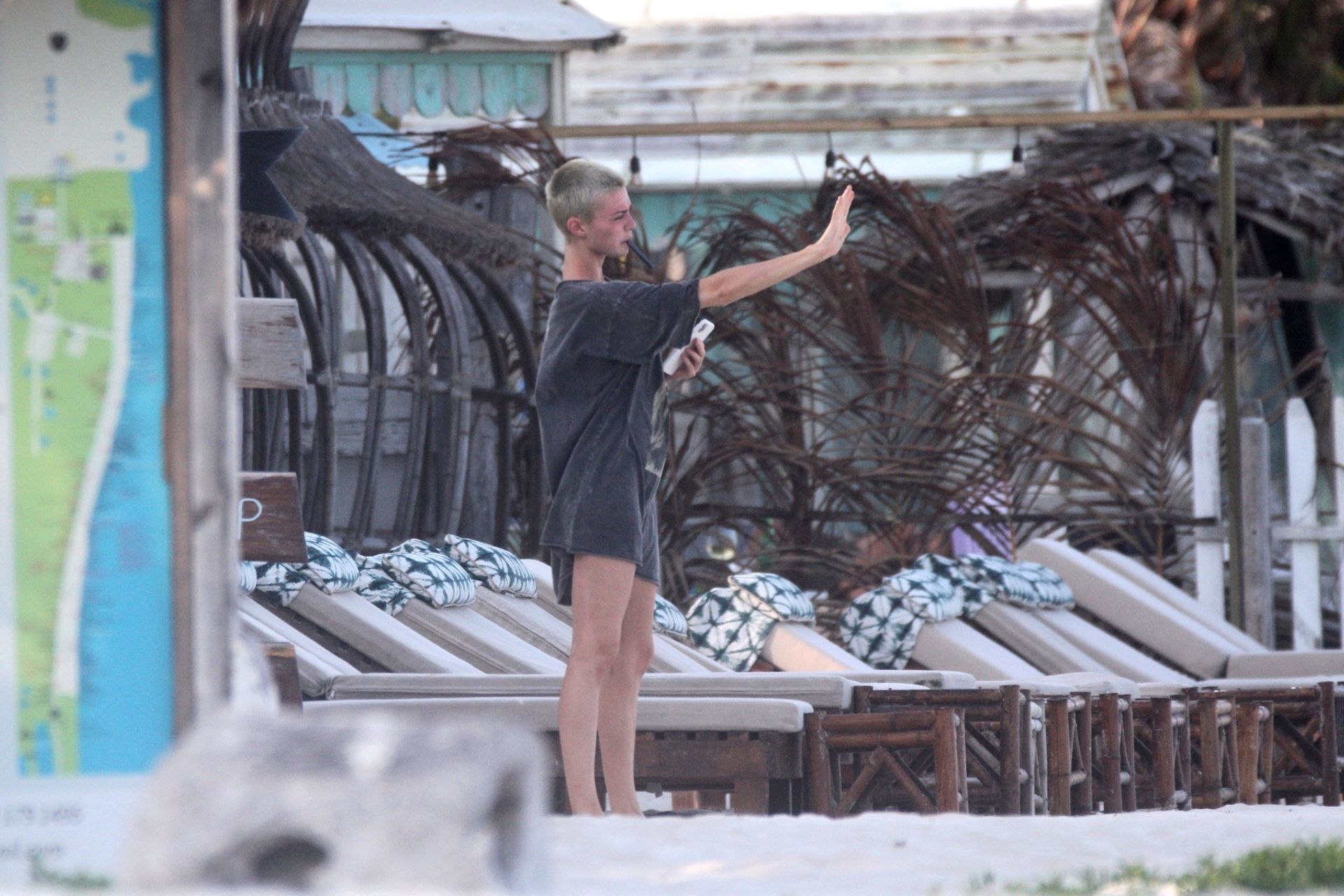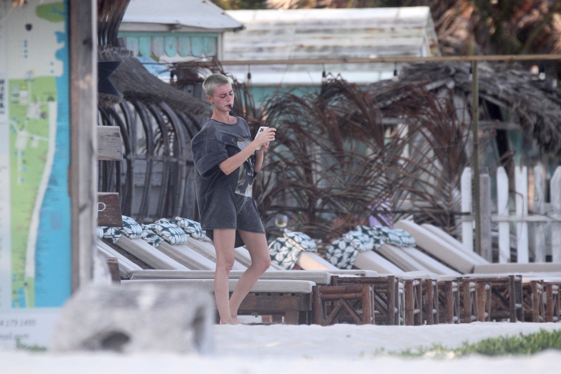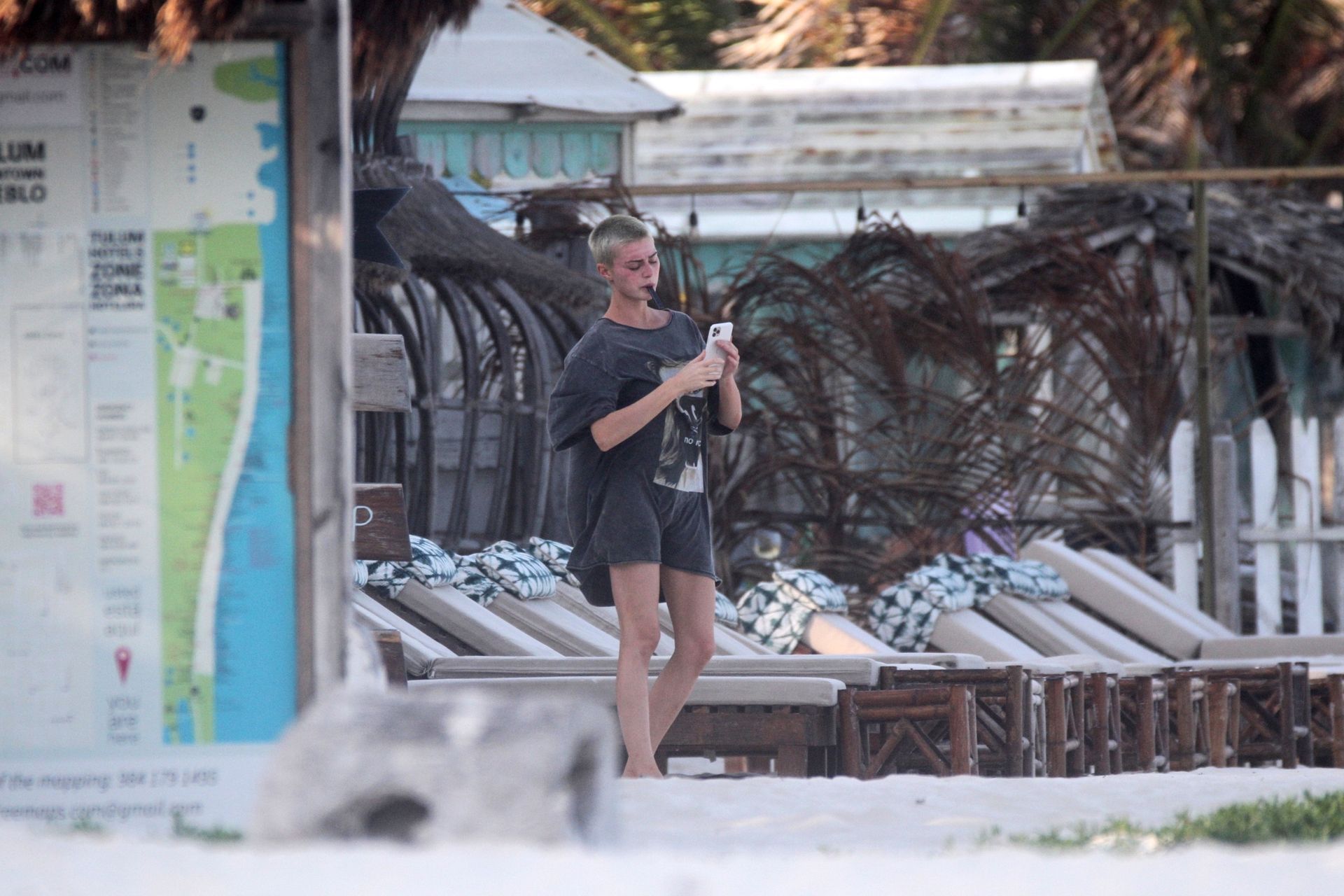 Model and YouTuber Kristen Hancher hits the beach today to take in the gorgeous weather south of the border in Tulum while being stuck during the COVID-19 pandemic, 04/01/2020.
