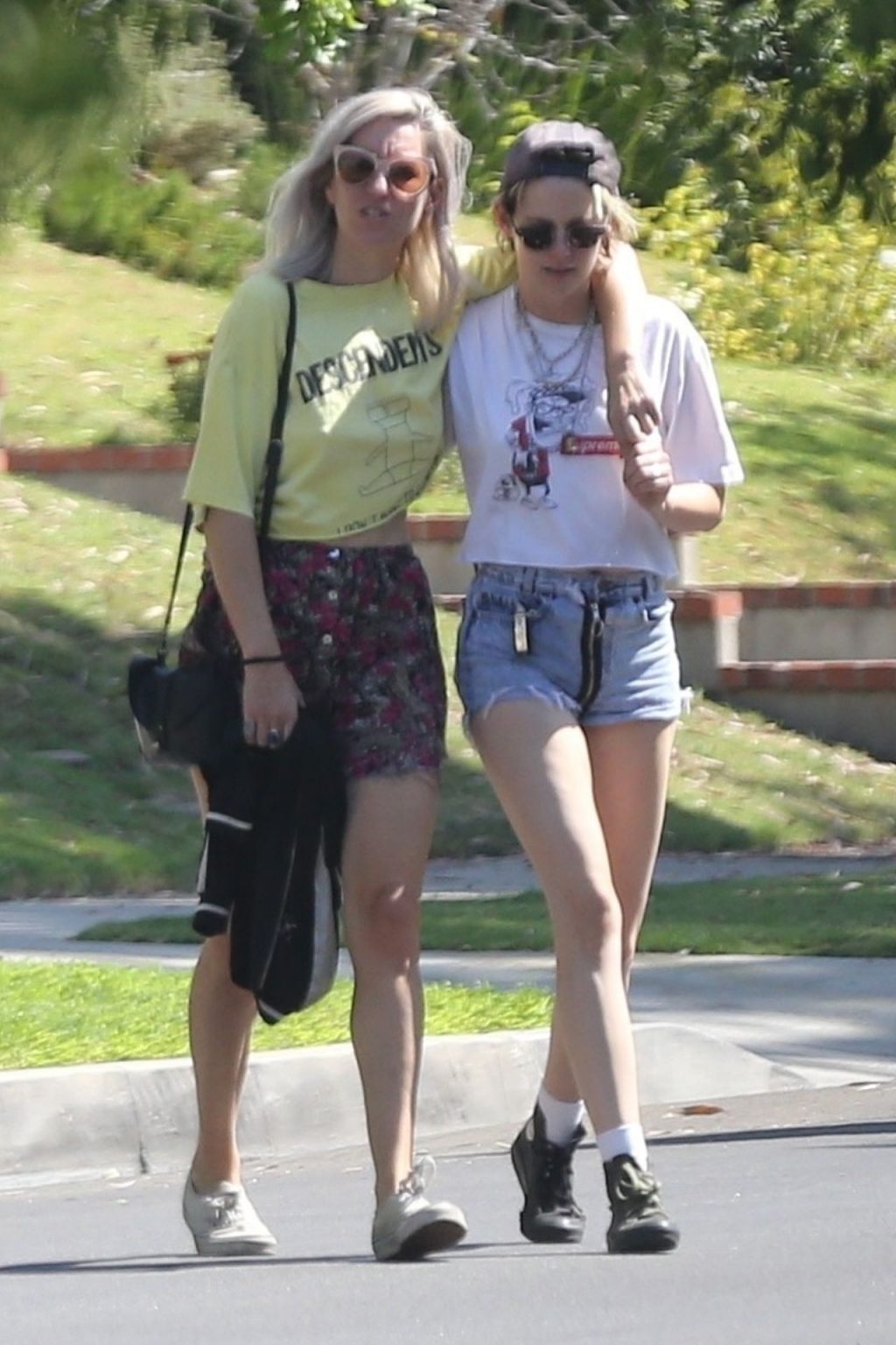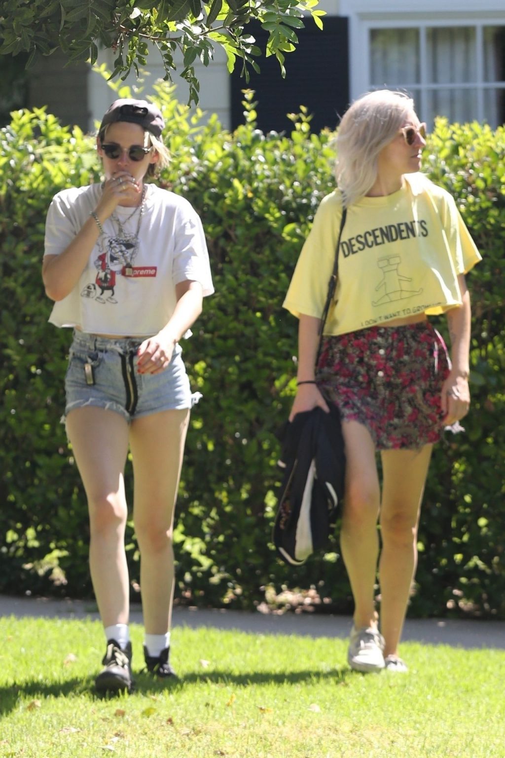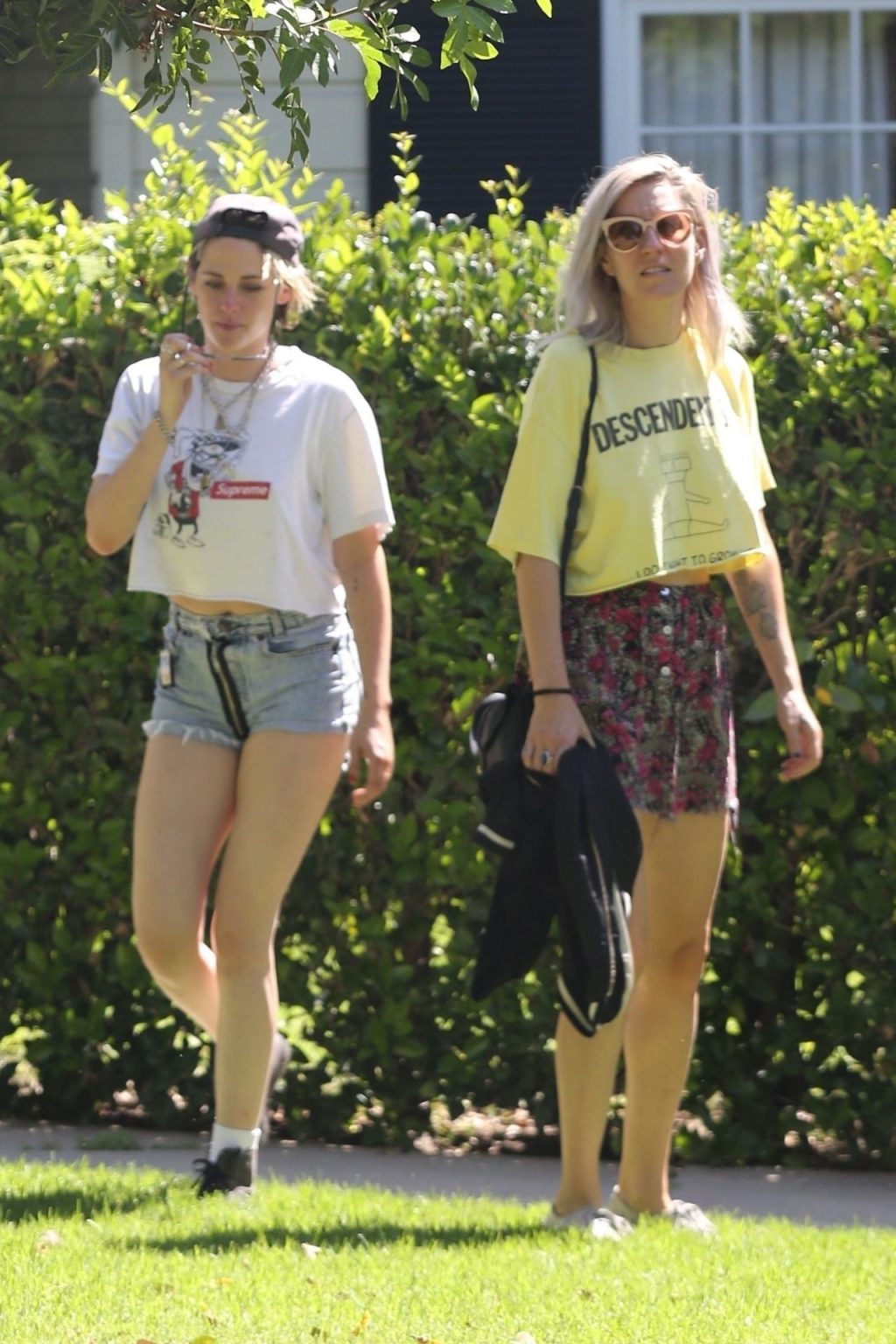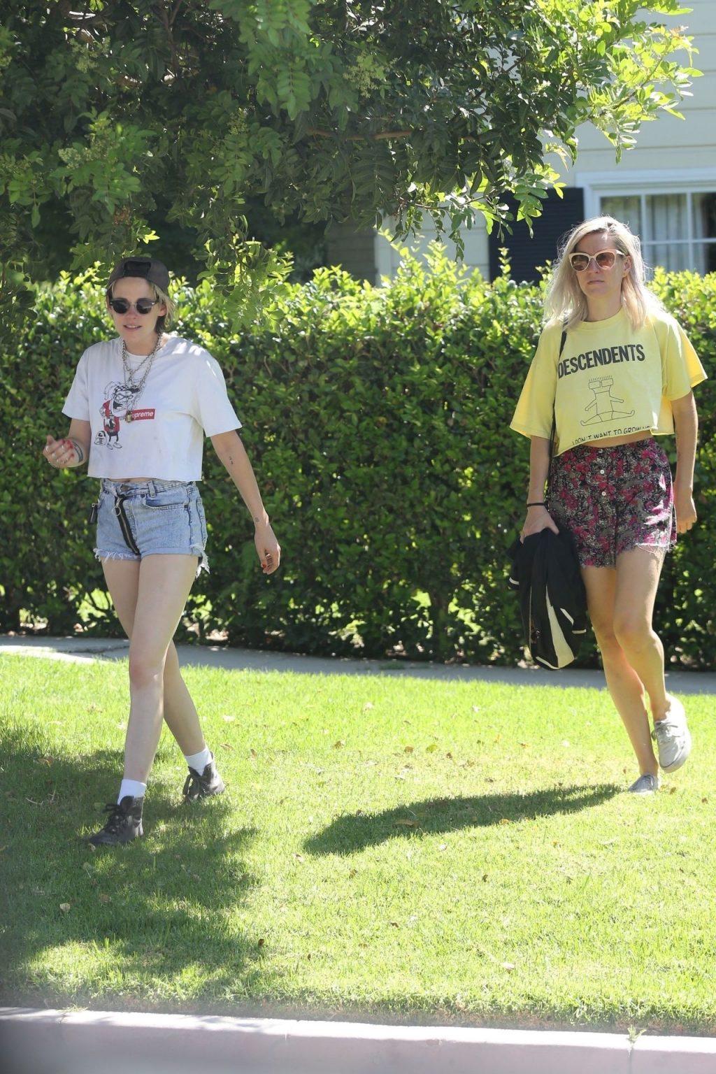 Kristen Stewart passionately kisses writer Dylan Meyer while on a romantic stroll this morning in Los Feliz, 08/26/2019. The “Charlie’s Angels” star appeared over the moon with her new leading lady.