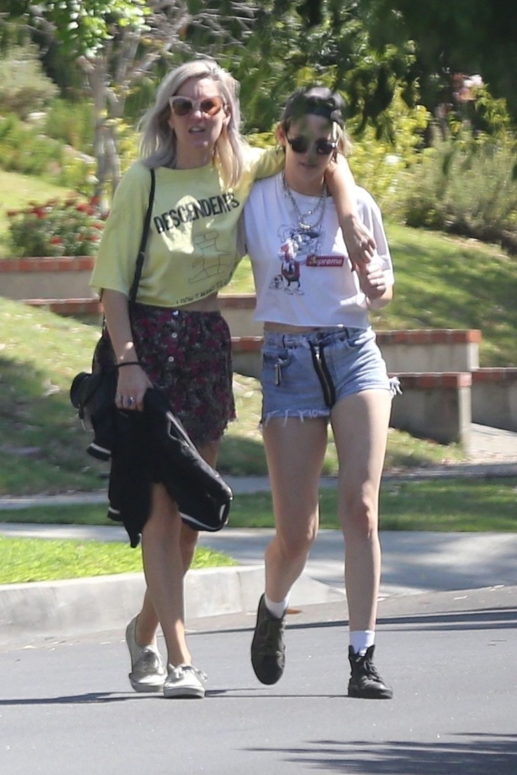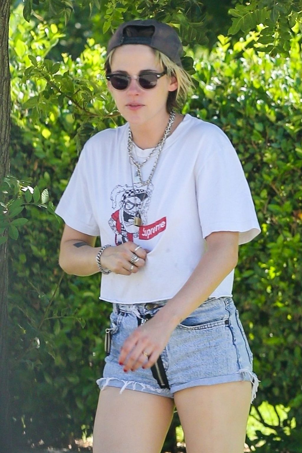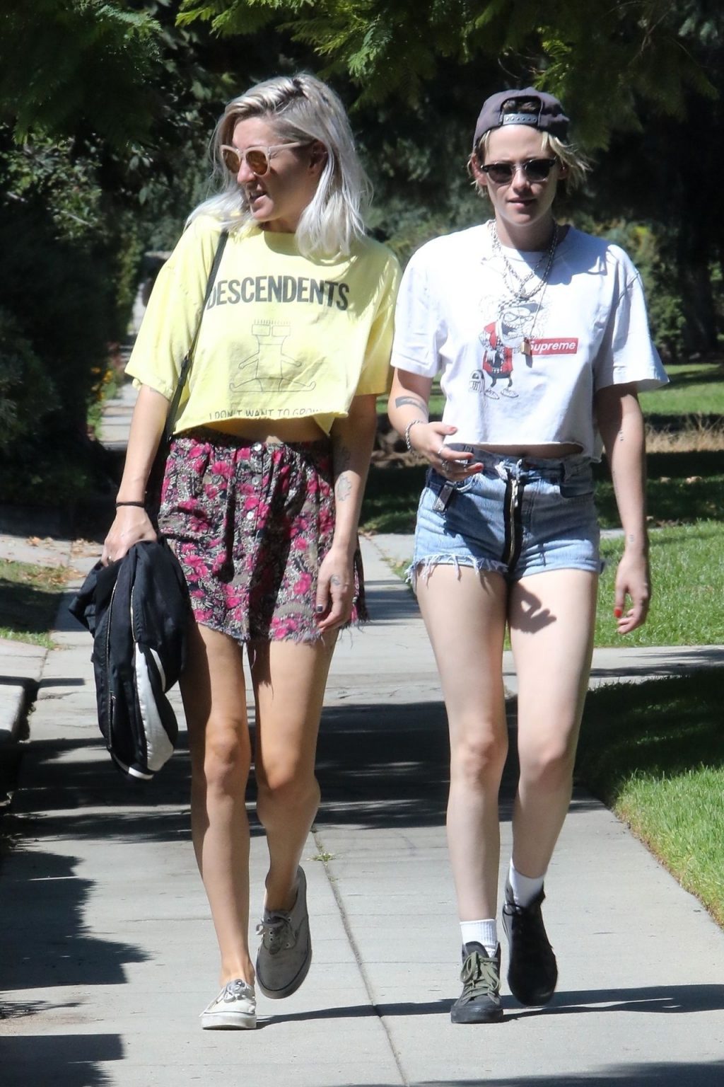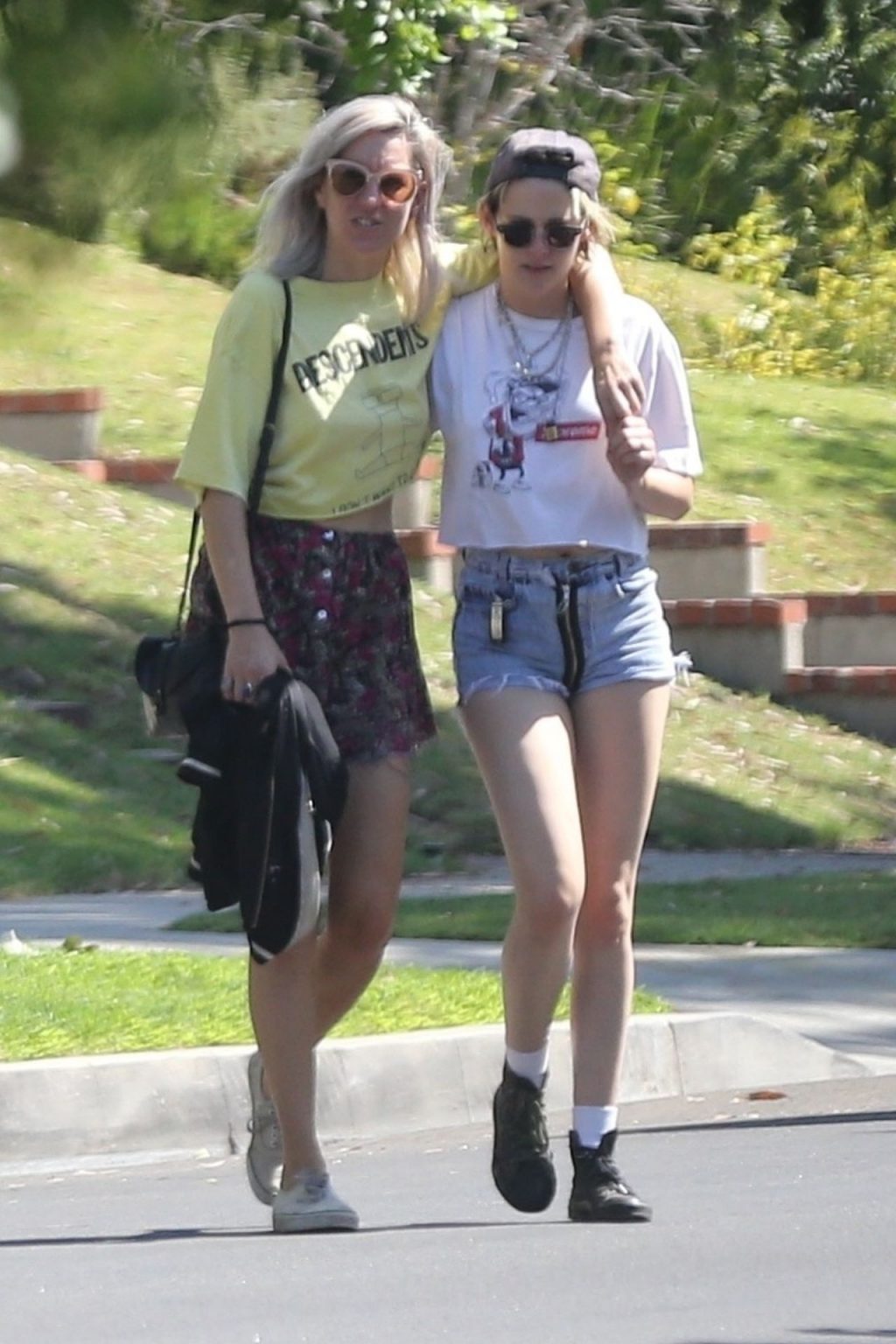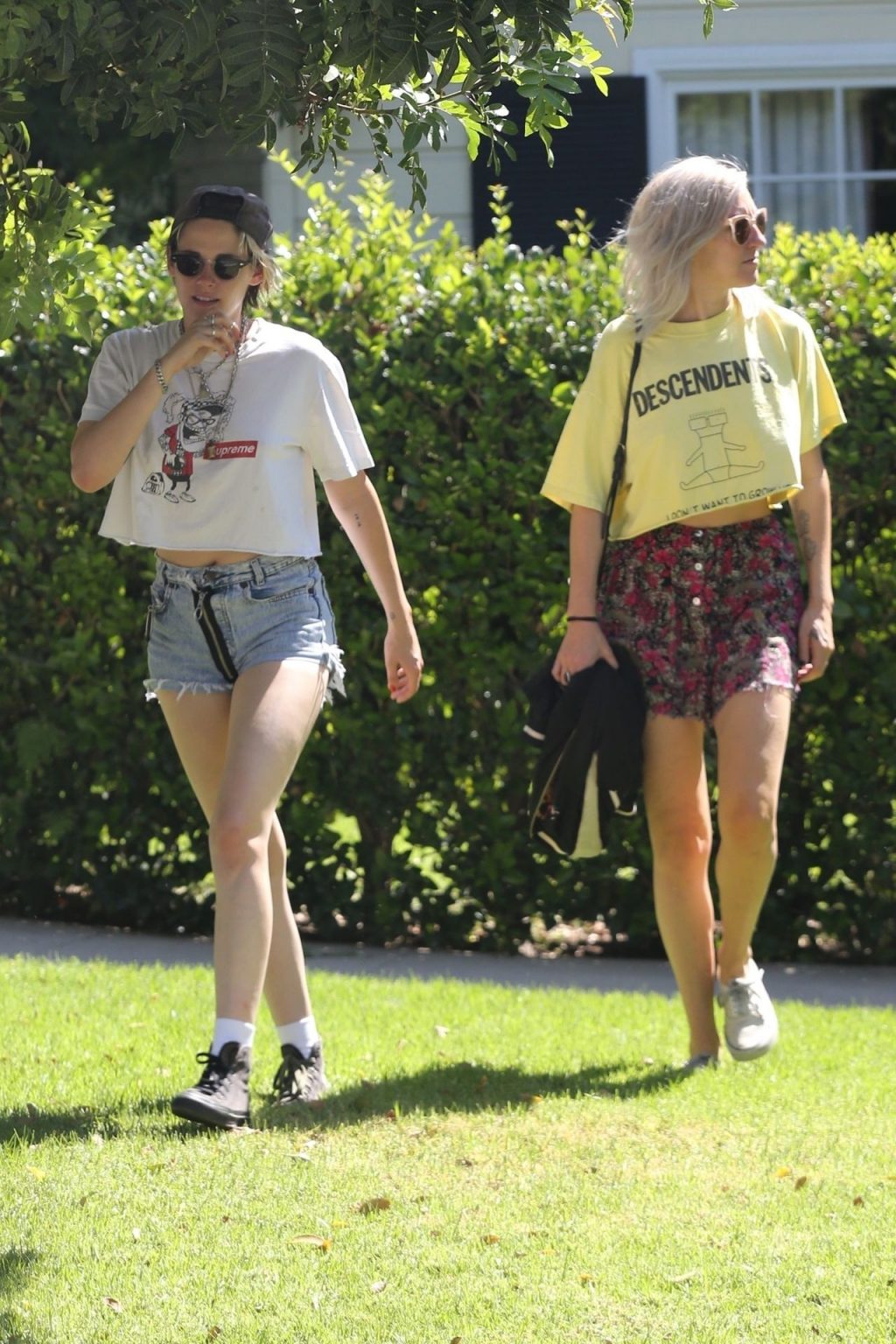 Kristen Stewart passionately kisses writer Dylan Meyer while on a romantic stroll this morning in Los Feliz, 08/26/2019. The “Charlie’s Angels” star appeared over the moon with her new leading lady.