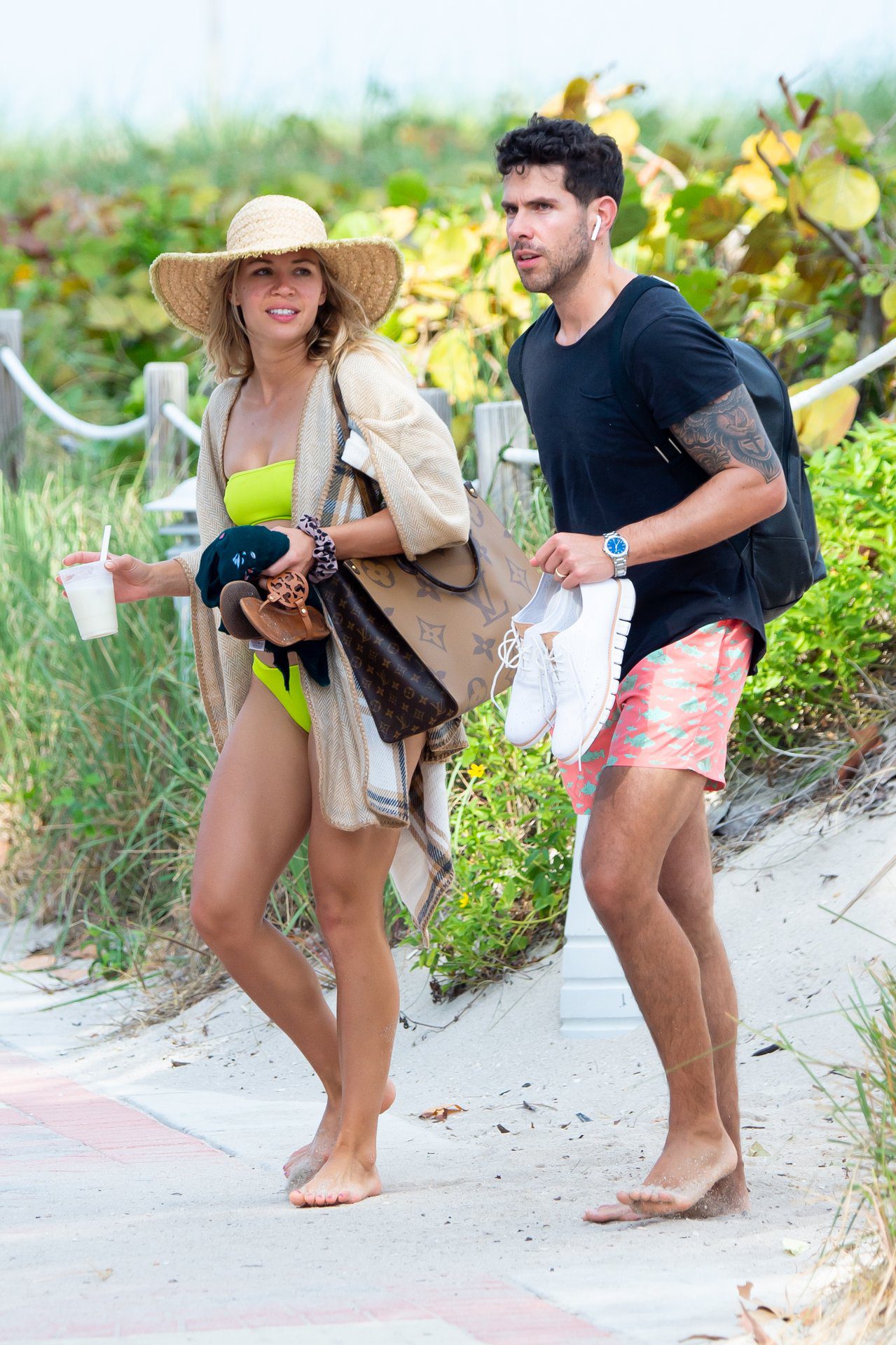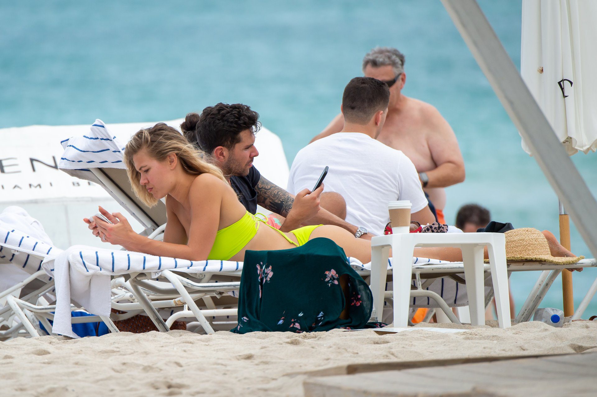 Bachelor TV newlyweds Chris Randone and Krystal Nielson hit the beach in Miami, 12/14/2019. The couple from California, who are in town celebrating Chris’s birthday, appeared to be engrossed in their cellphones during an afternoon sunbathing session on Saturday. Krystal, a fitness coach, showed off her superfit physique in a luminous green bikini.