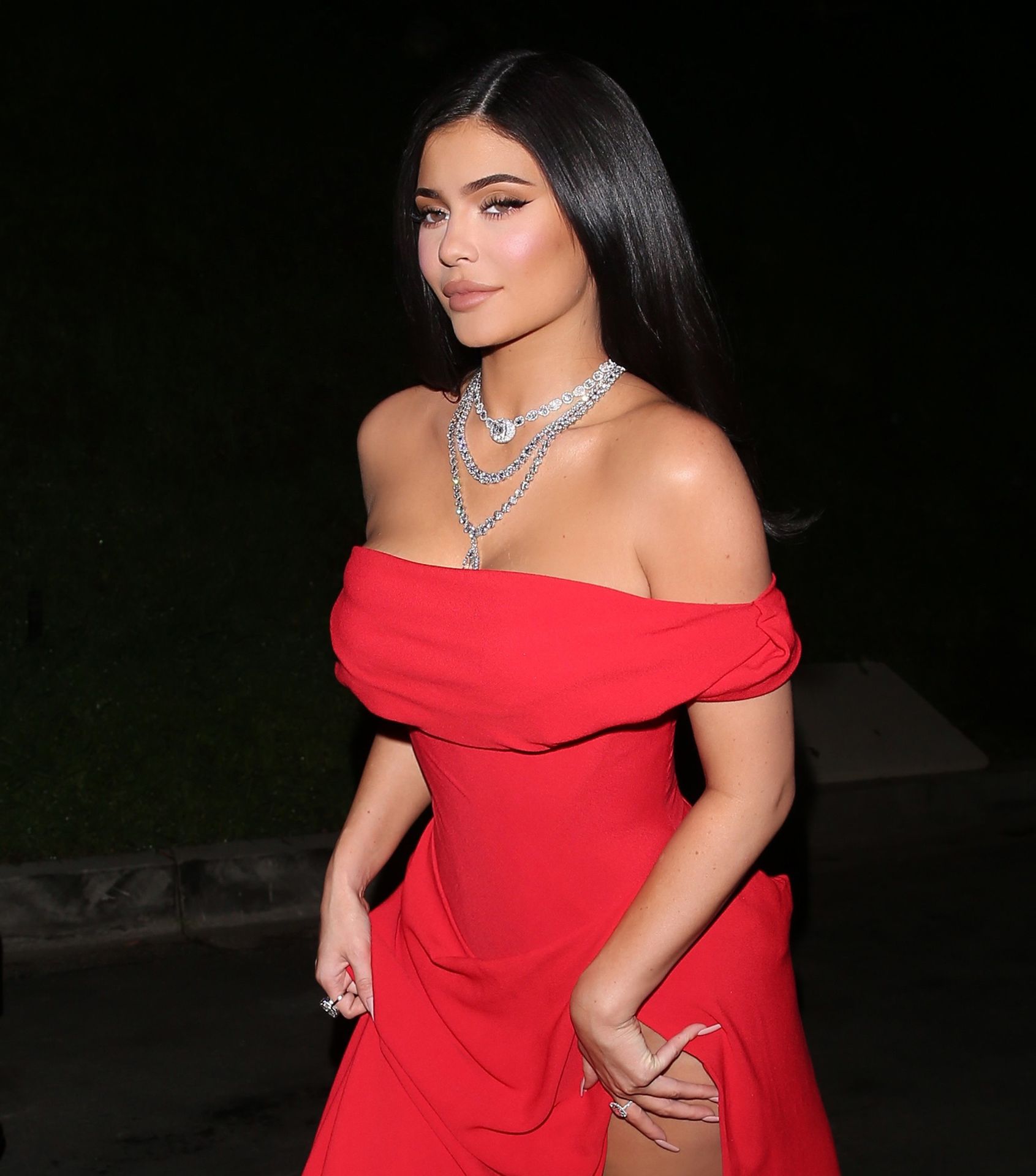 Sexy brunette Kylie Jenner looks stunning in a full length ‘Vivienne Westwood’ designer dress with ‘Christian Louboutin’ shoes and a ‘Jimmy Choo’ clutch as she was seen heading to Jay Z and Beyonce’s Oscar’s party in West Hollywood, 02/10/2020.