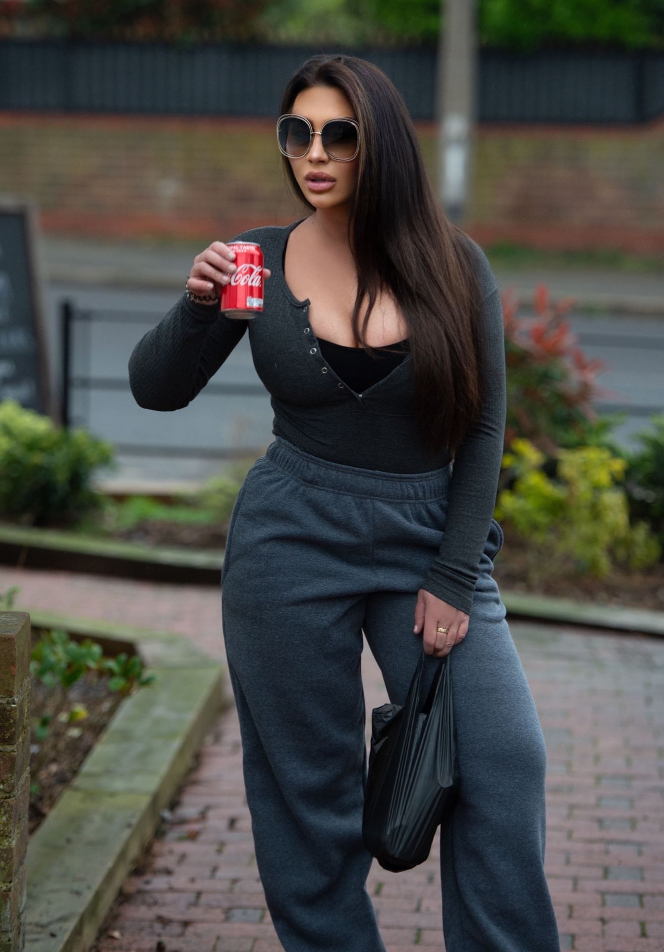 “The Only Way Is Essex” star Lauren Goodger is seen leaving her home going to her local shops, 03/23/2020. Lauren is seen wearing a grey joggers and busty grey top and drinking a can of Coca-Cola.