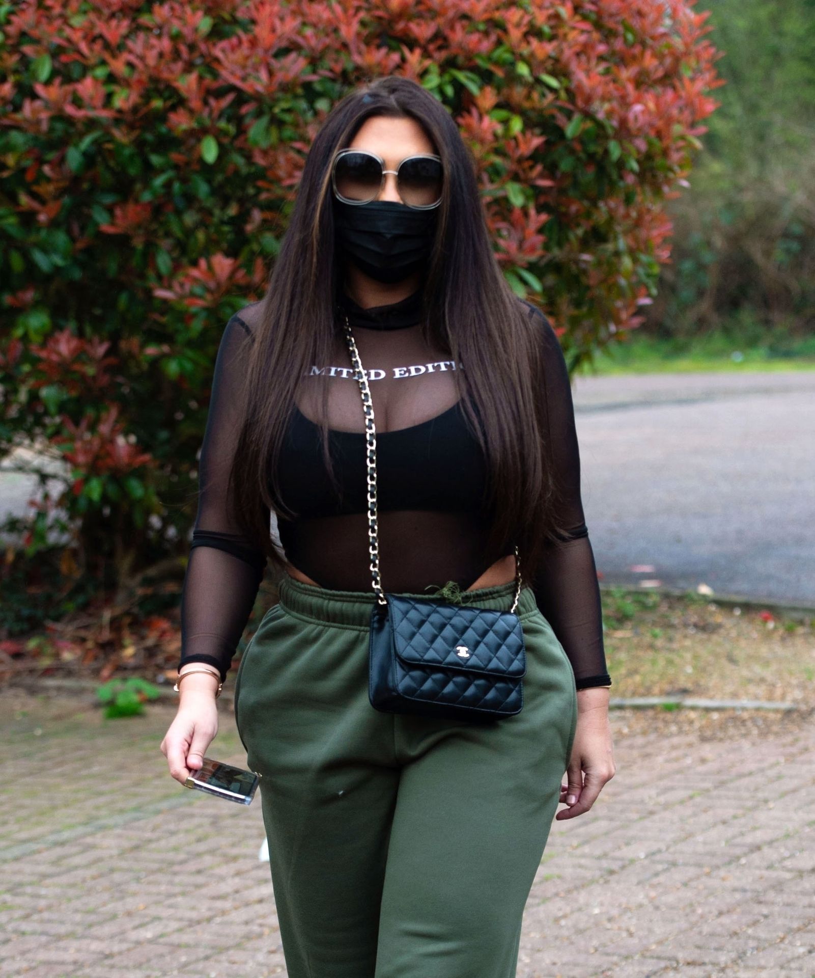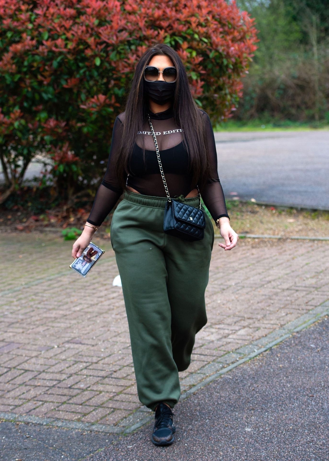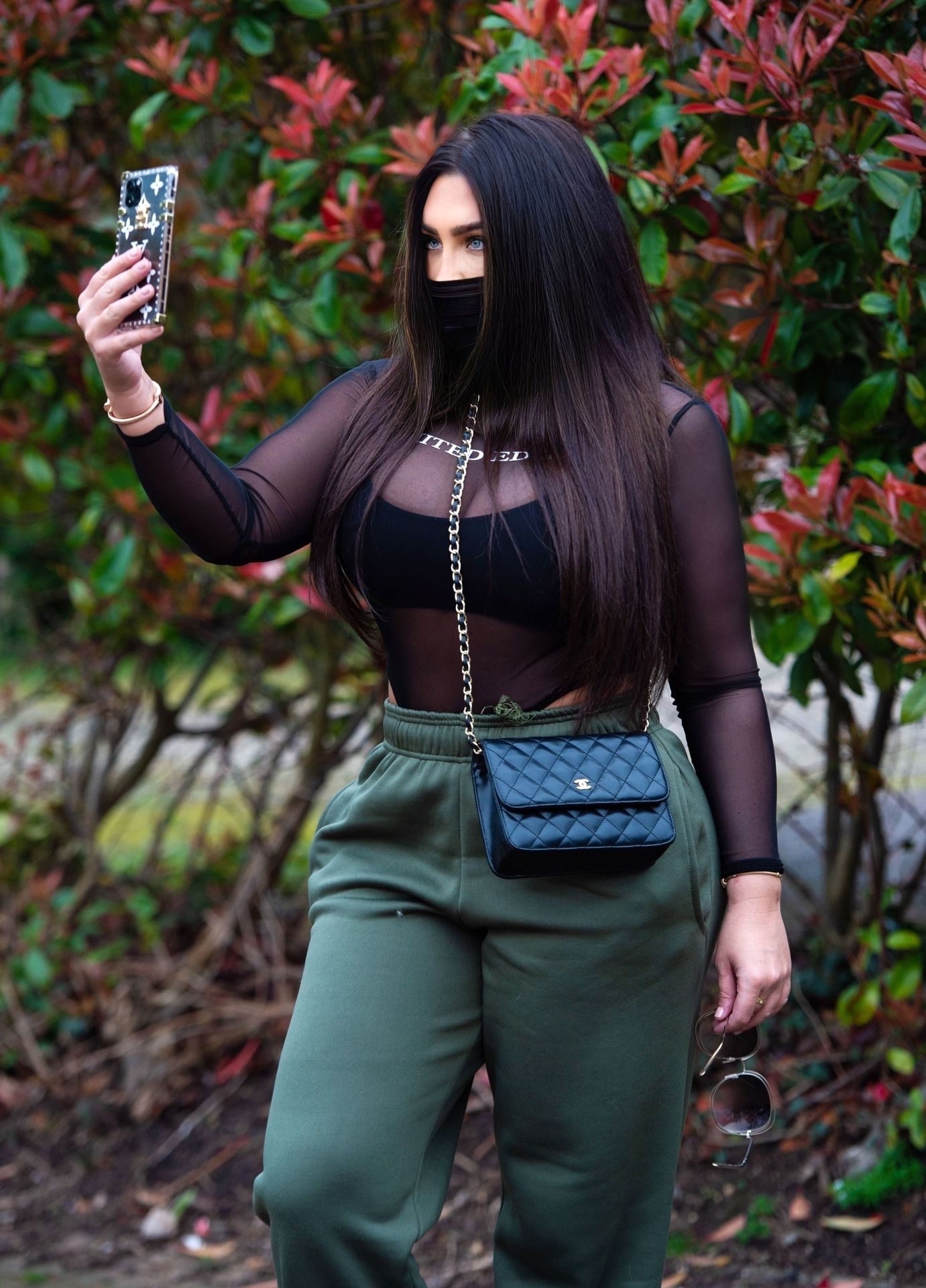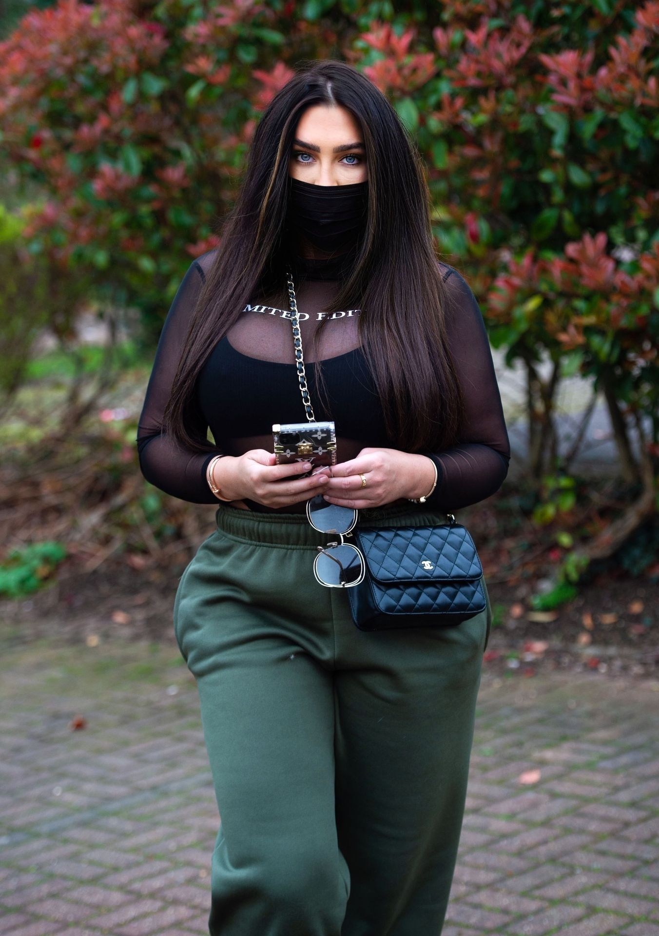 The reality star is seen wearing a black face mask to protect herself from Covid-19. Lauren, who has starred in The Only Way Is Essex and Celebs go dating wears a black top saying Limited Edition alongside a pair of green joggers.