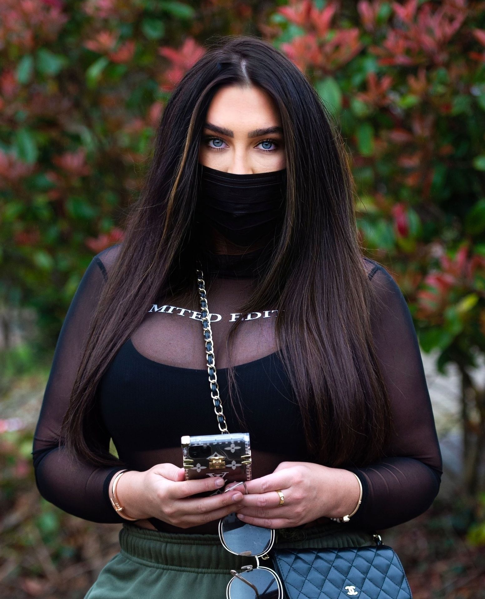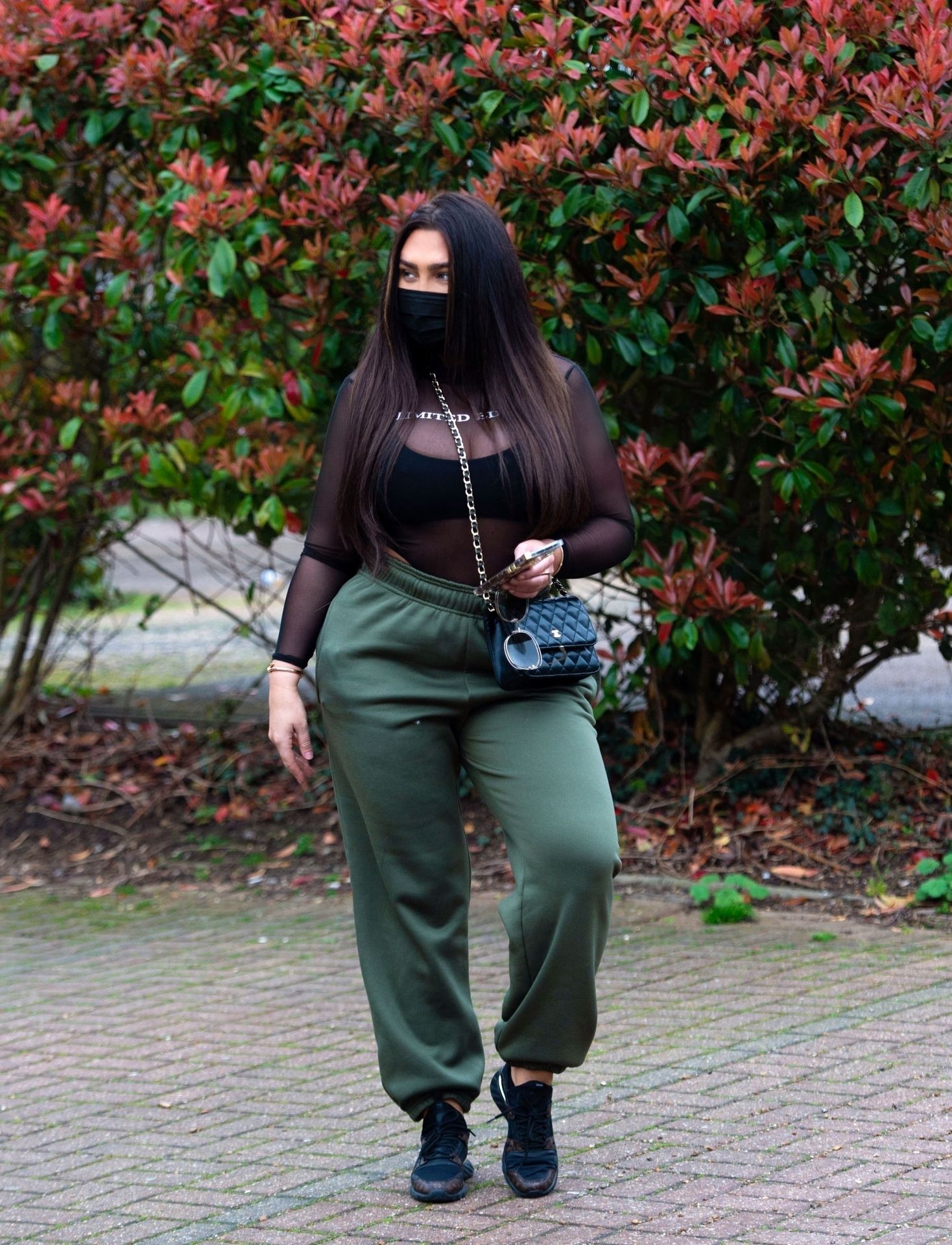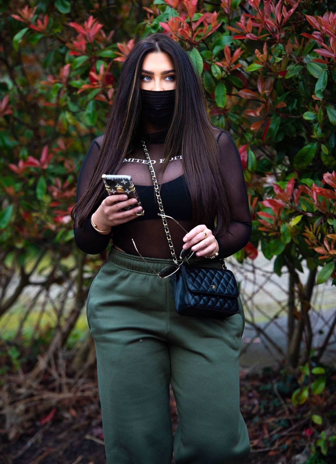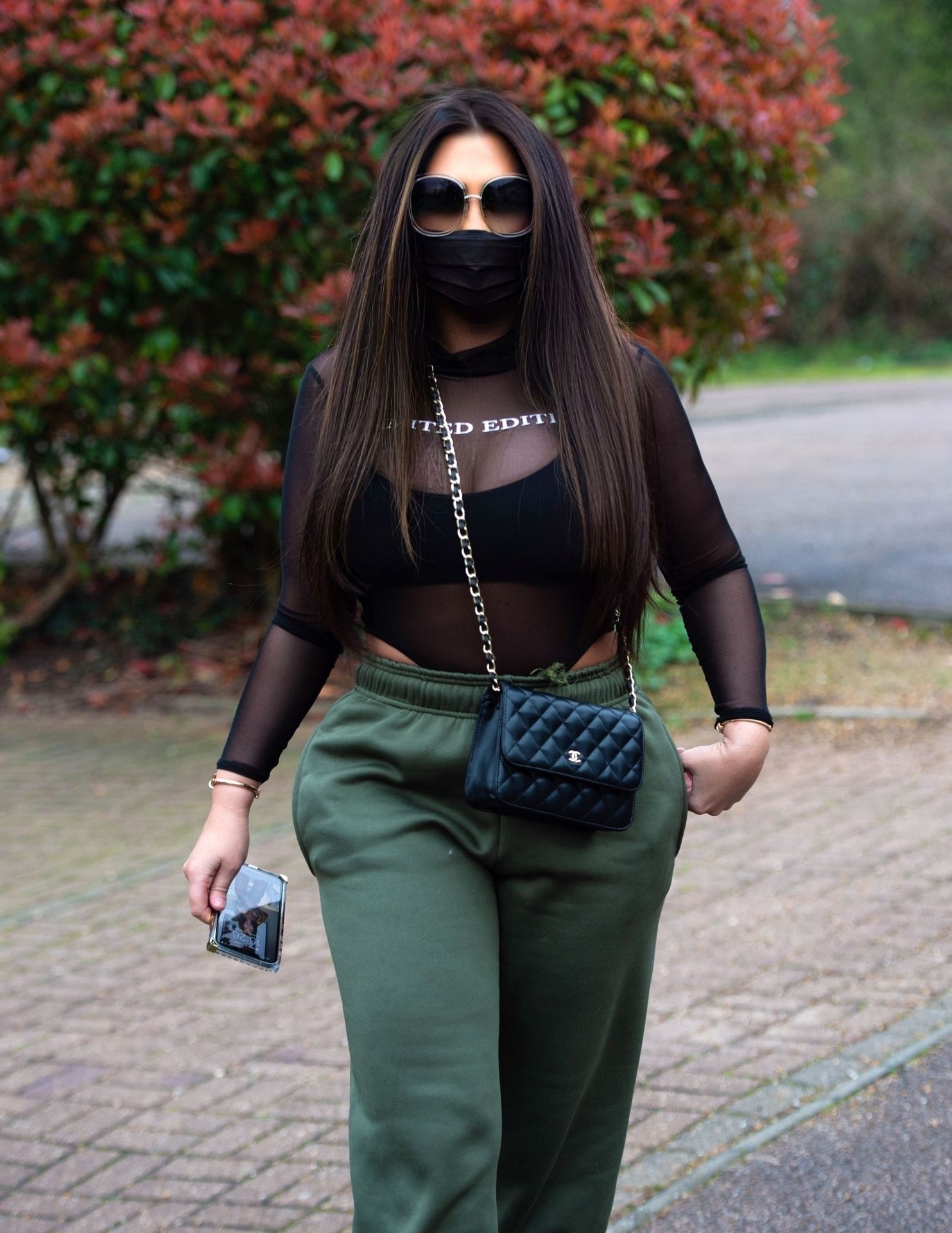 The reality star is seen wearing a black face mask to protect herself from Covid-19. Lauren, who has starred in The Only Way Is Essex and Celebs go dating wears a black top saying Limited Edition alongside a pair of green joggers.