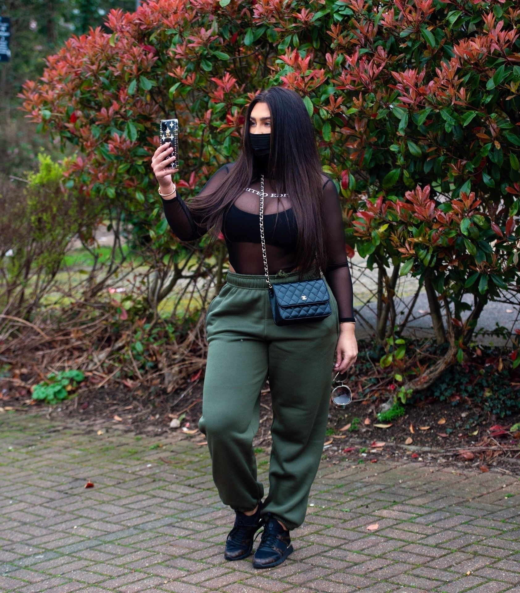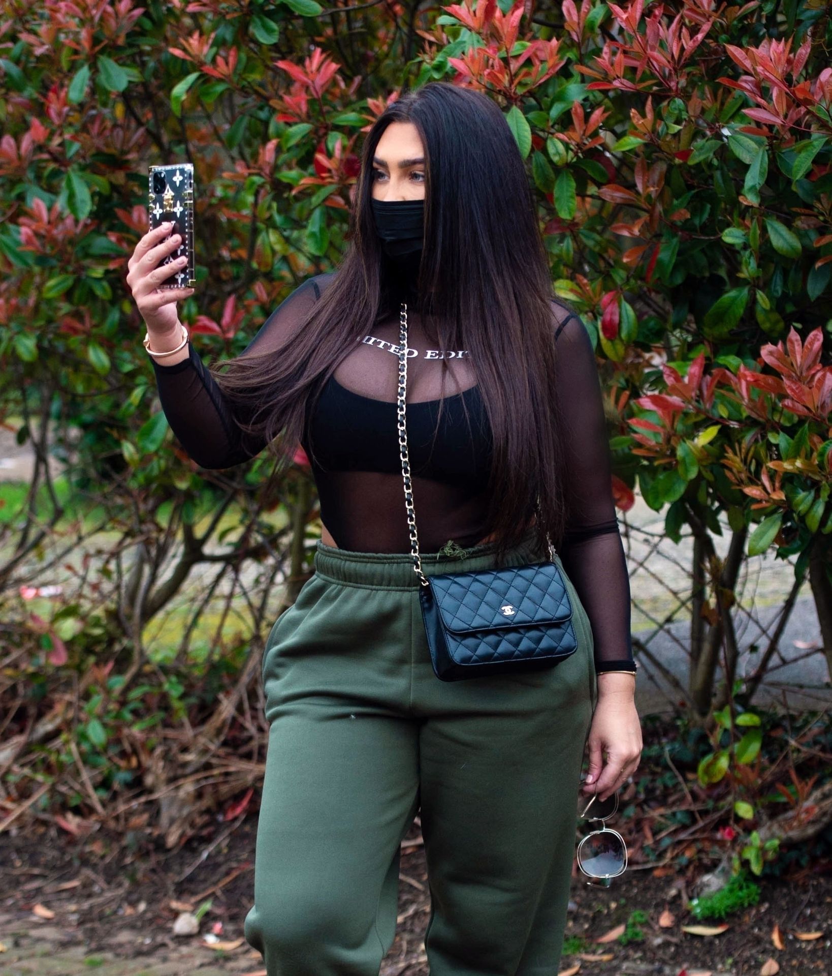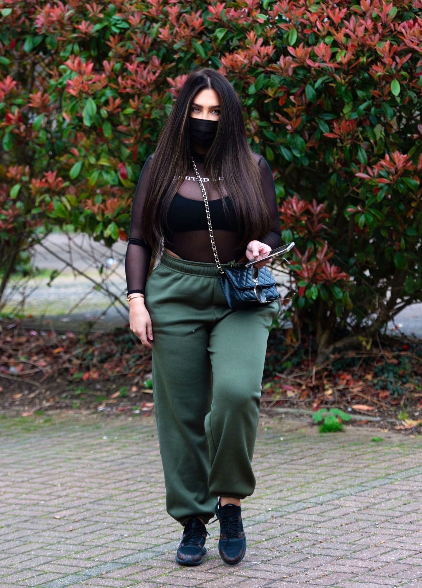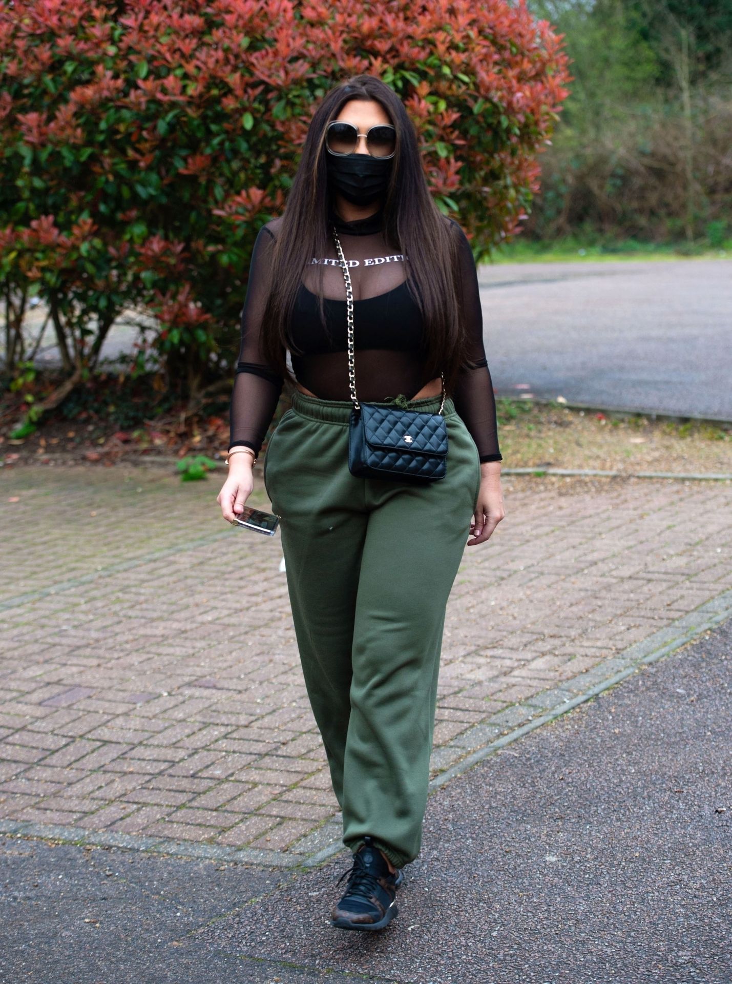 The reality star is seen wearing a black face mask to protect herself from Covid-19. Lauren, who has starred in The Only Way Is Essex and Celebs go dating wears a black top saying Limited Edition alongside a pair of green joggers.