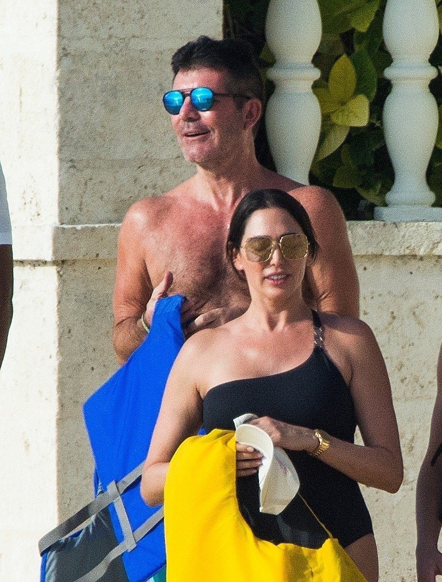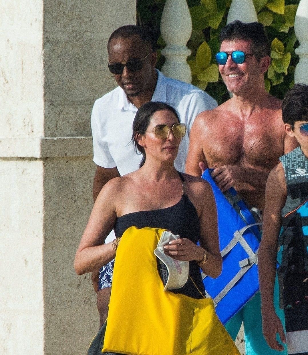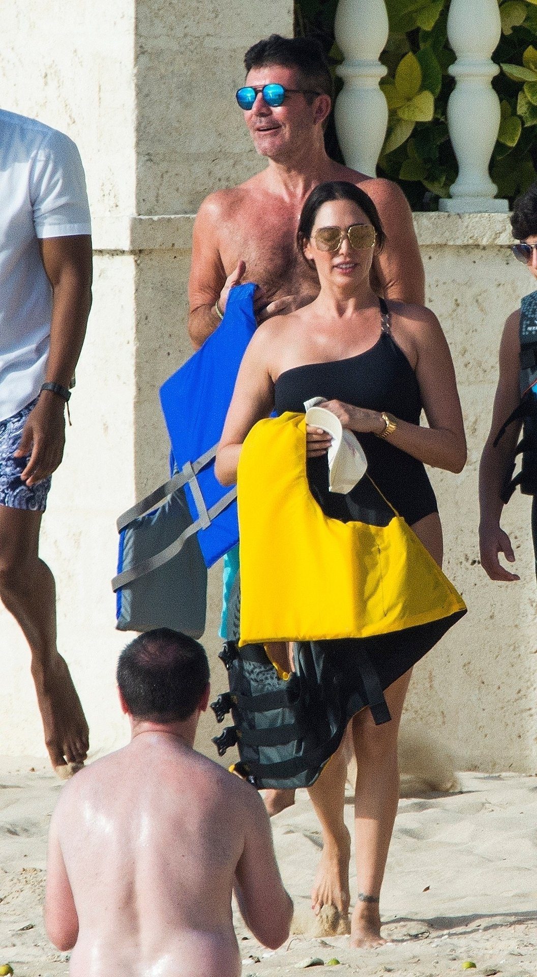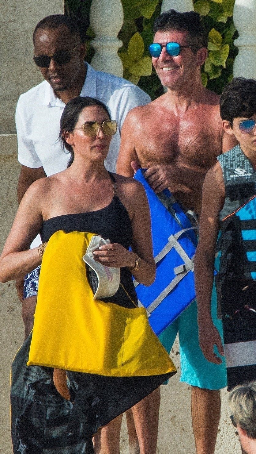 Television personality Simon Cowell and socialite Lauren Silverman enjoy a beach day in Barbados with their son Eric Cowell, 12/20/2019.