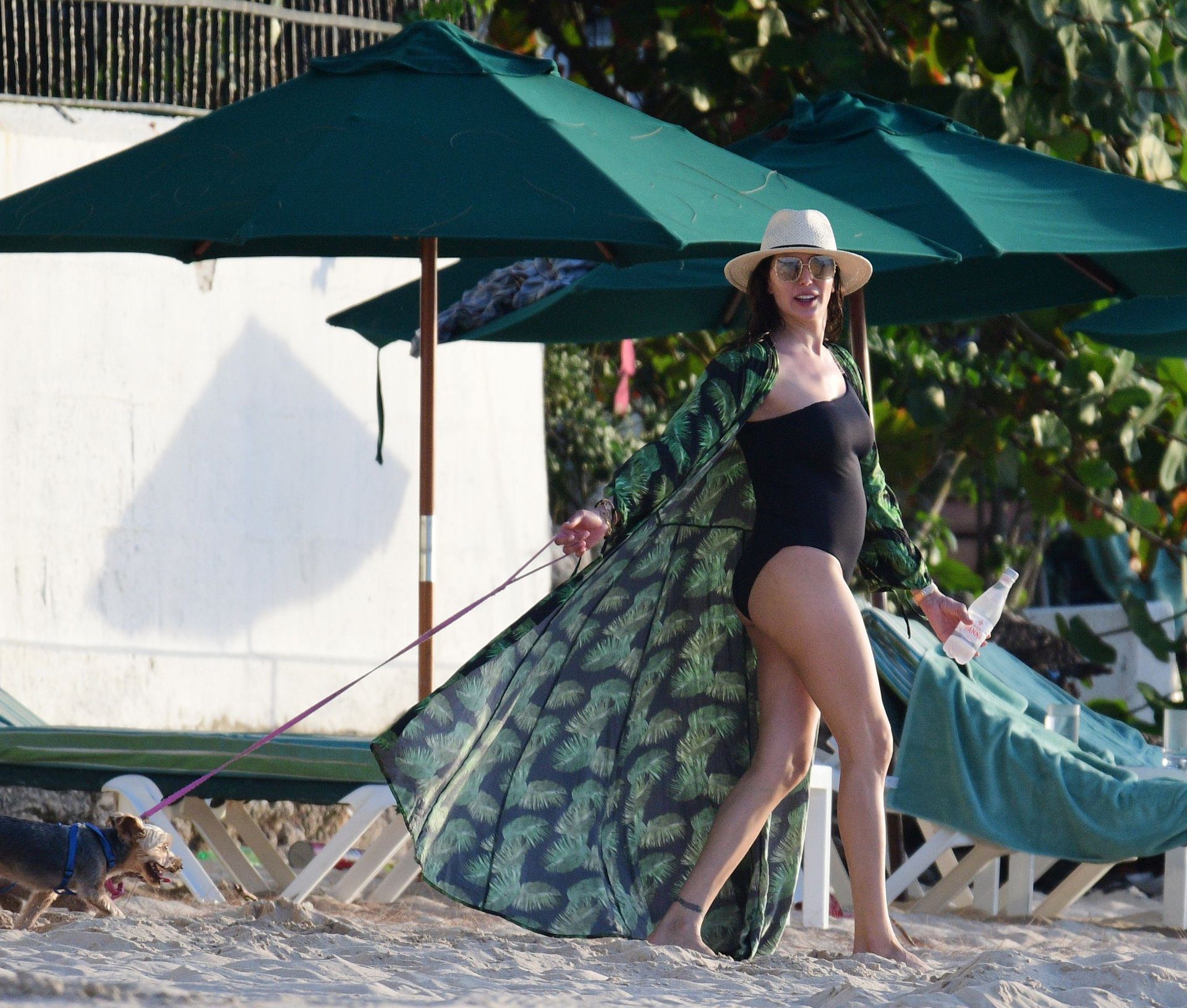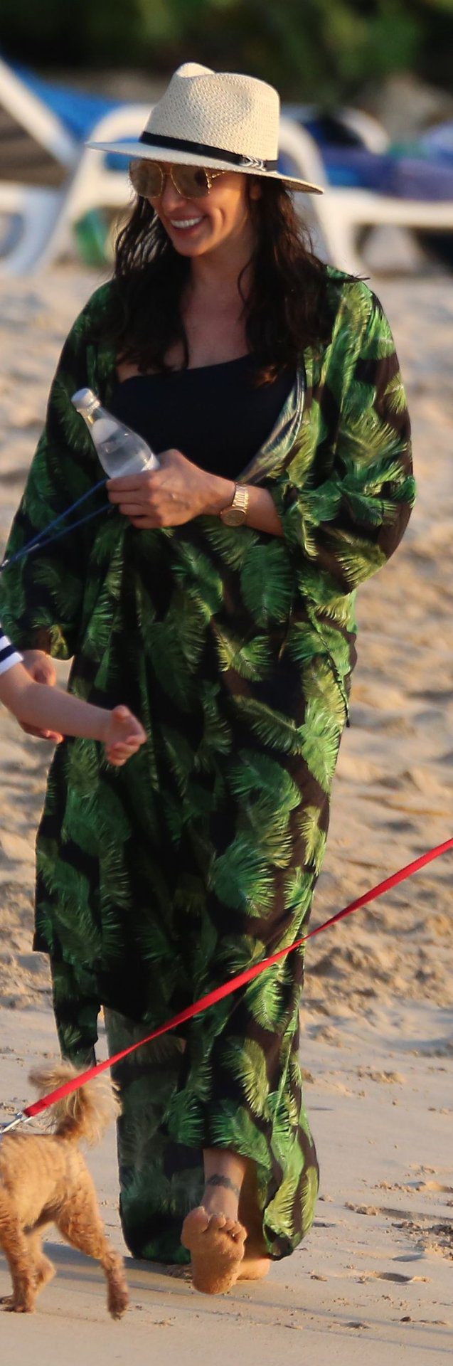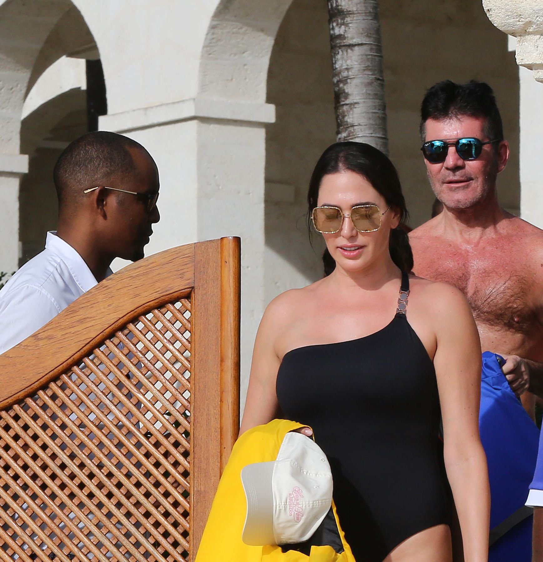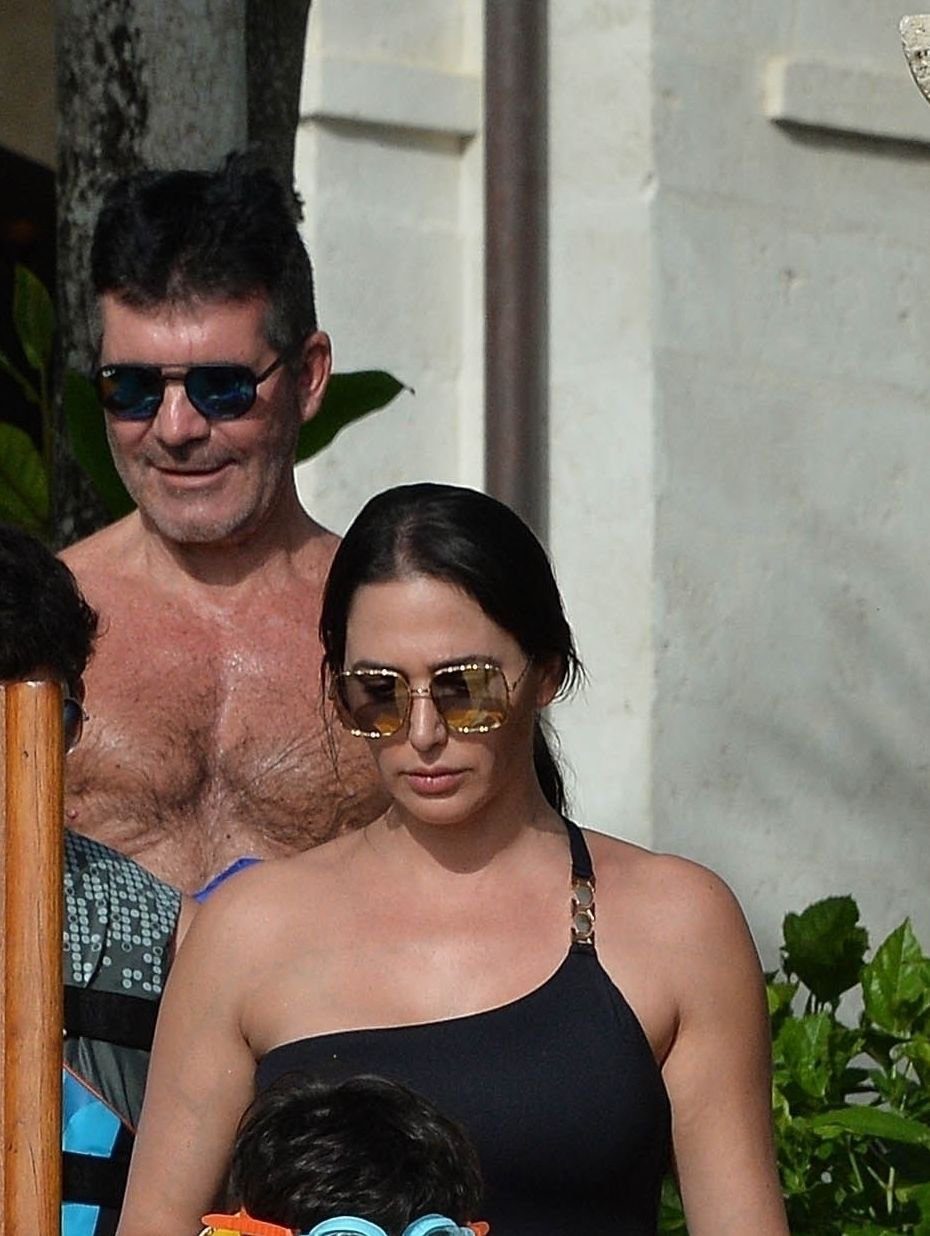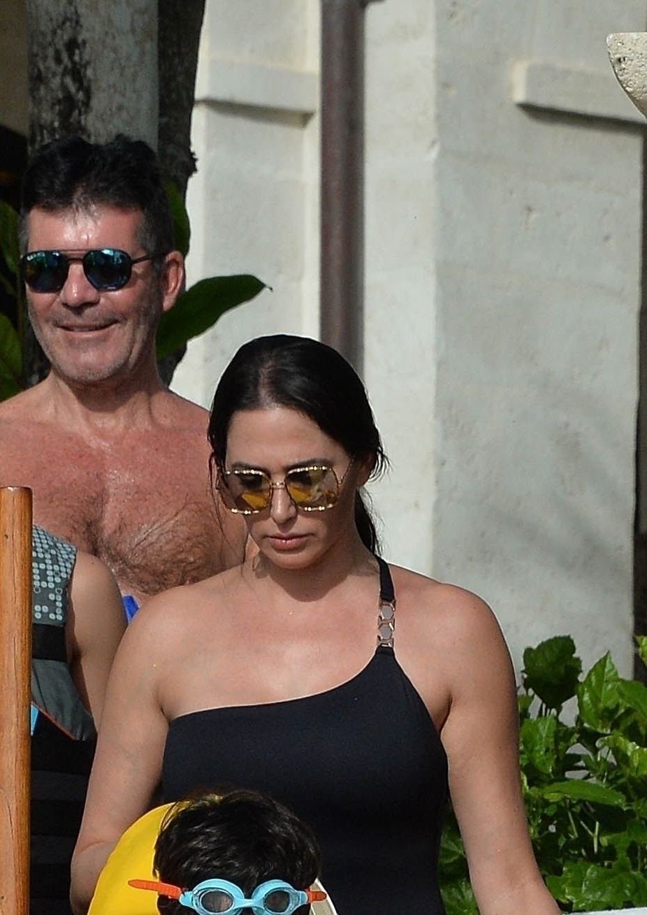 Television personality Simon Cowell and socialite Lauren Silverman enjoy a beach day in Barbados with their son Eric Cowell, 12/20/2019.