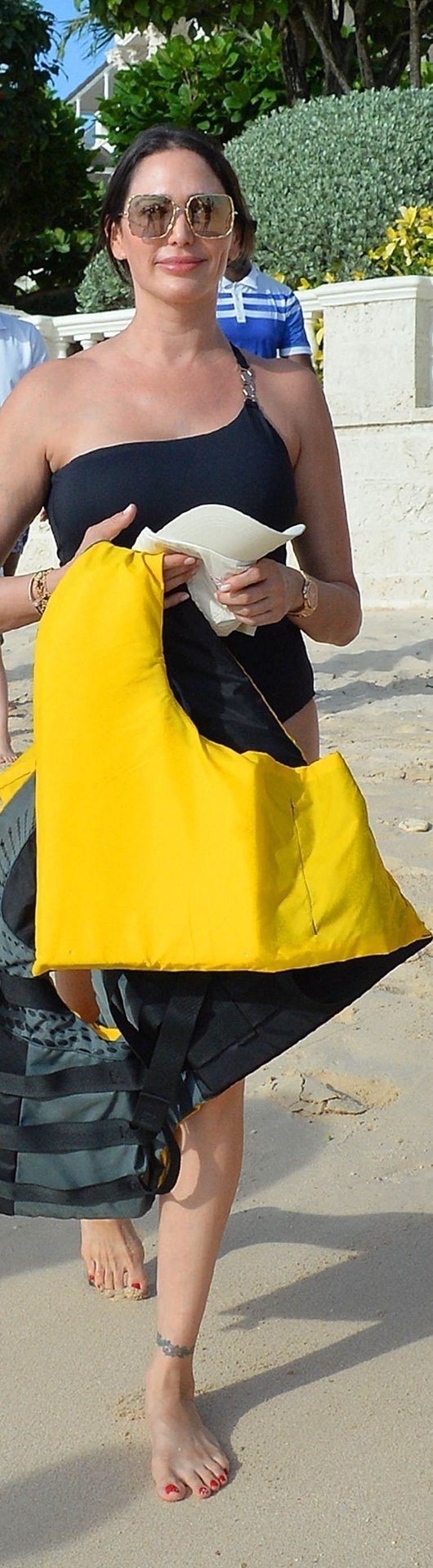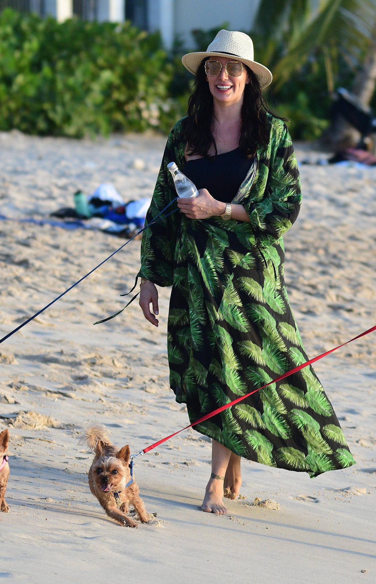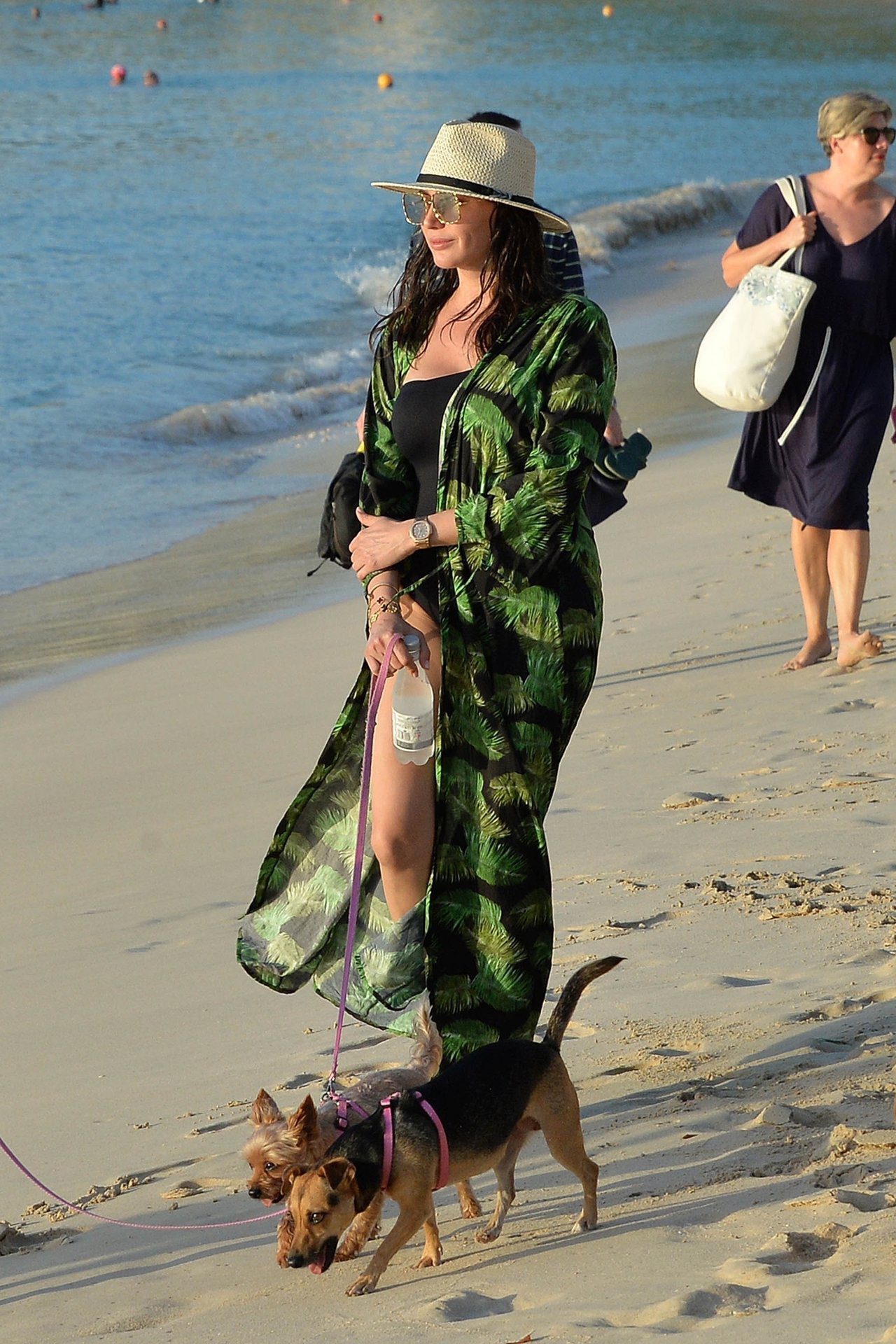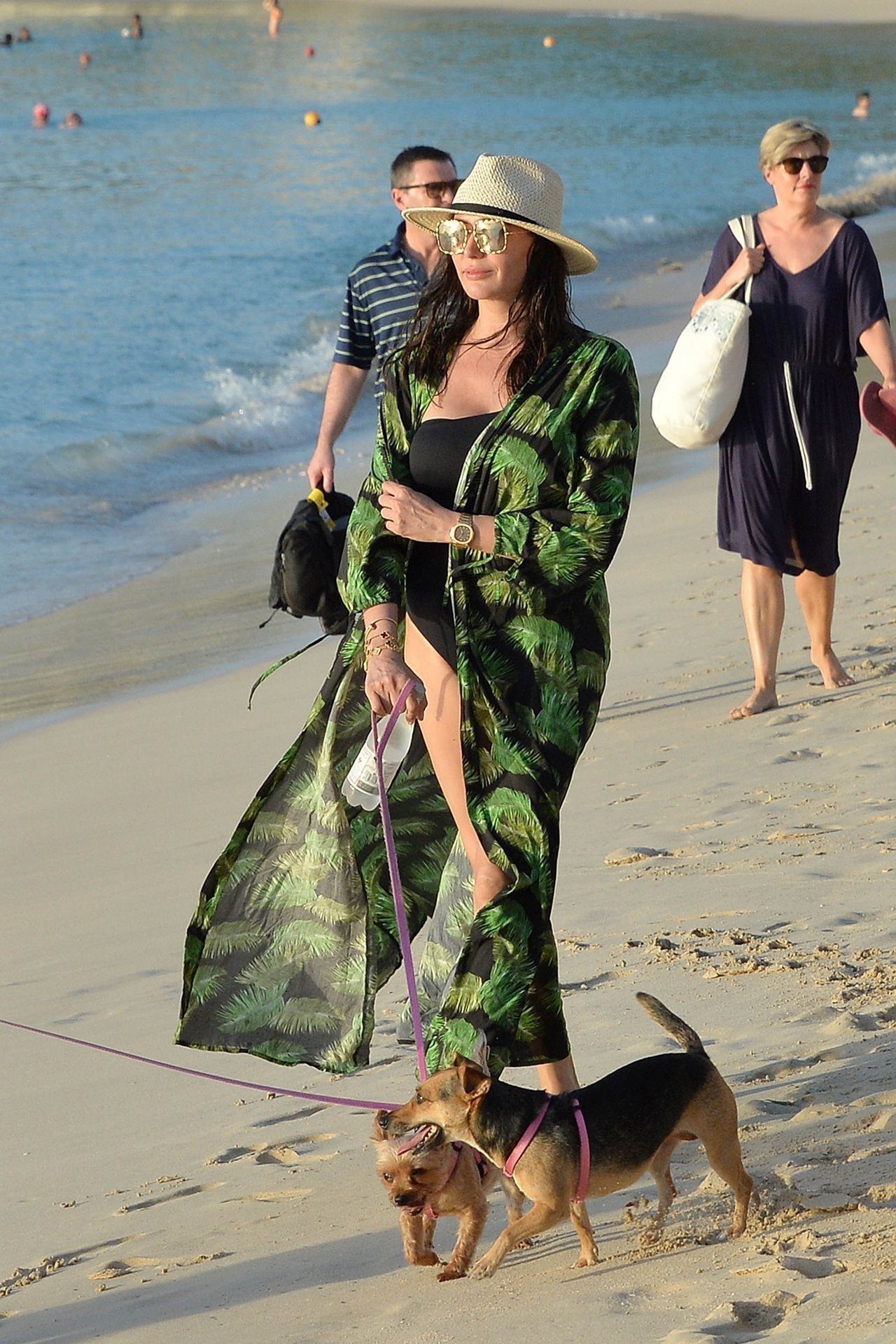 Television personality Simon Cowell and socialite Lauren Silverman enjoy a beach day in Barbados with their son Eric Cowell, 12/20/2019.