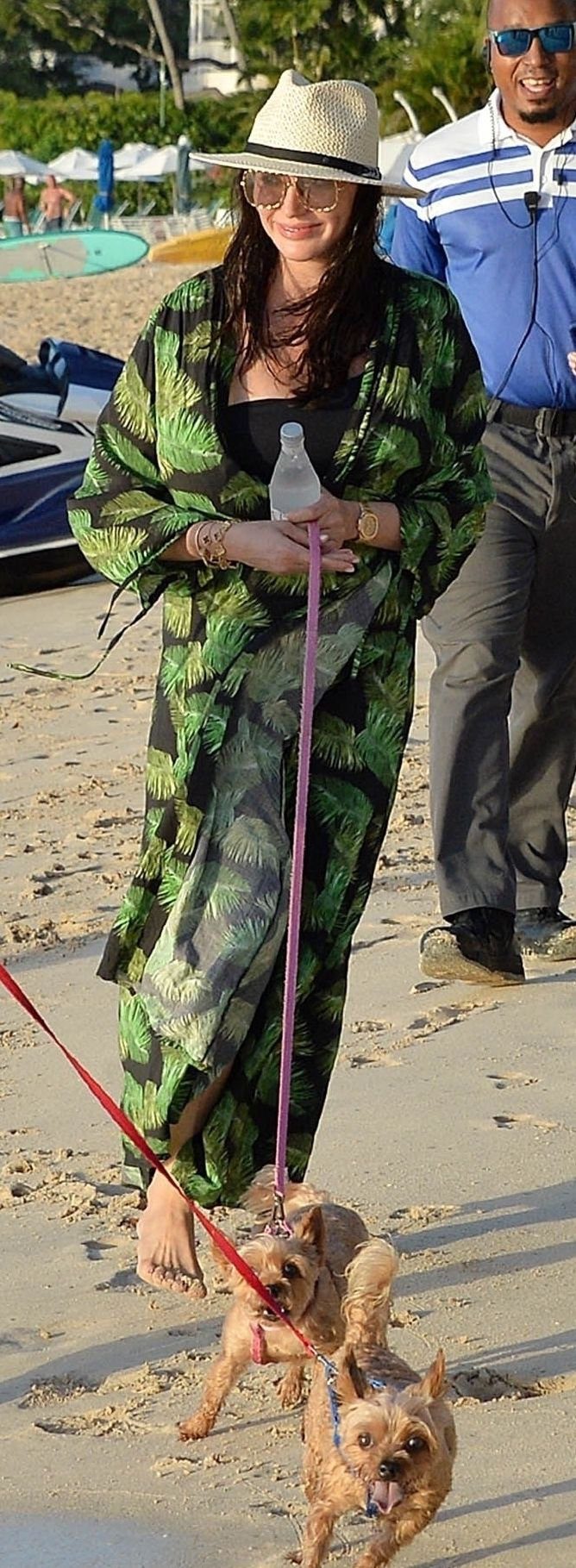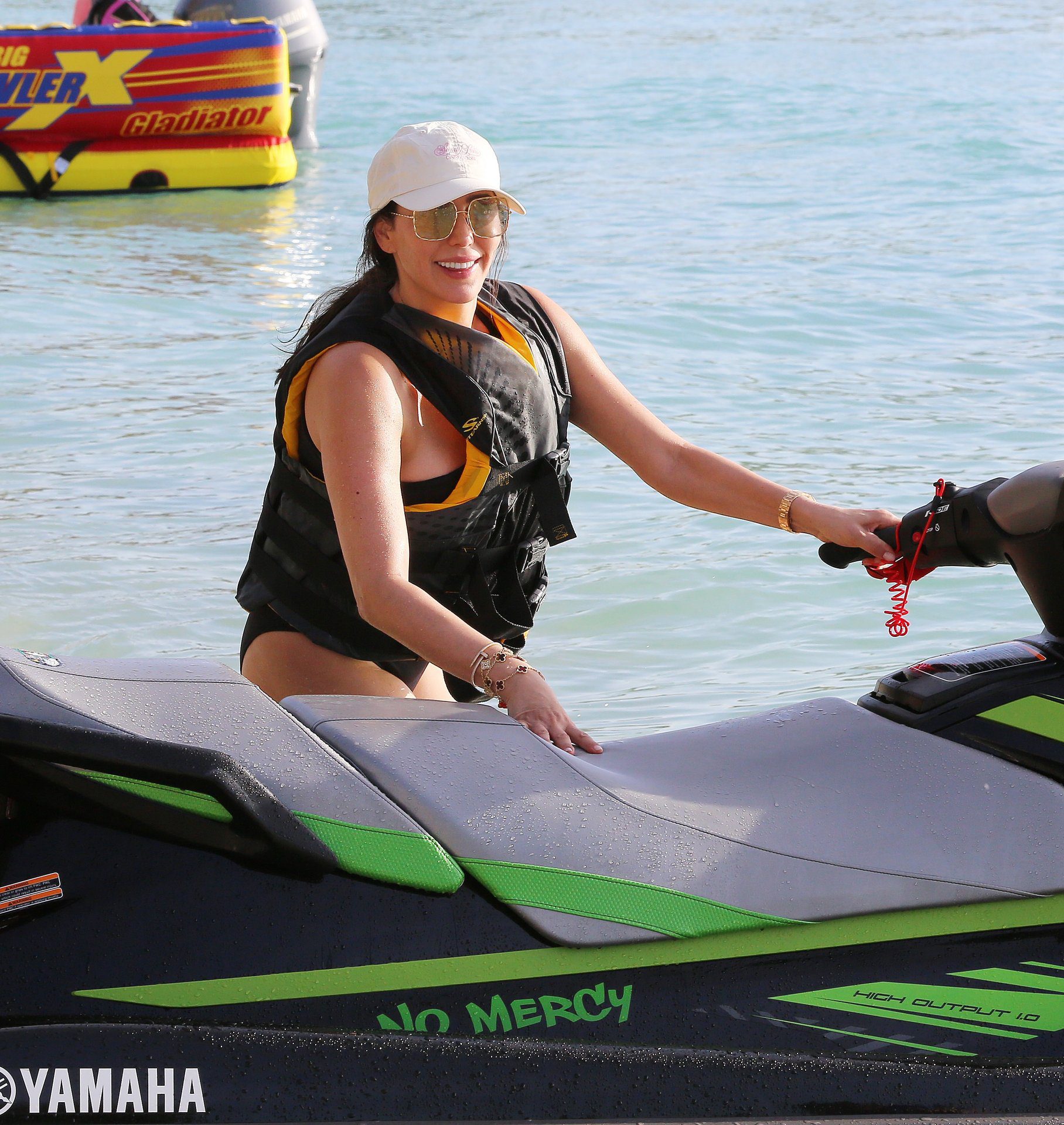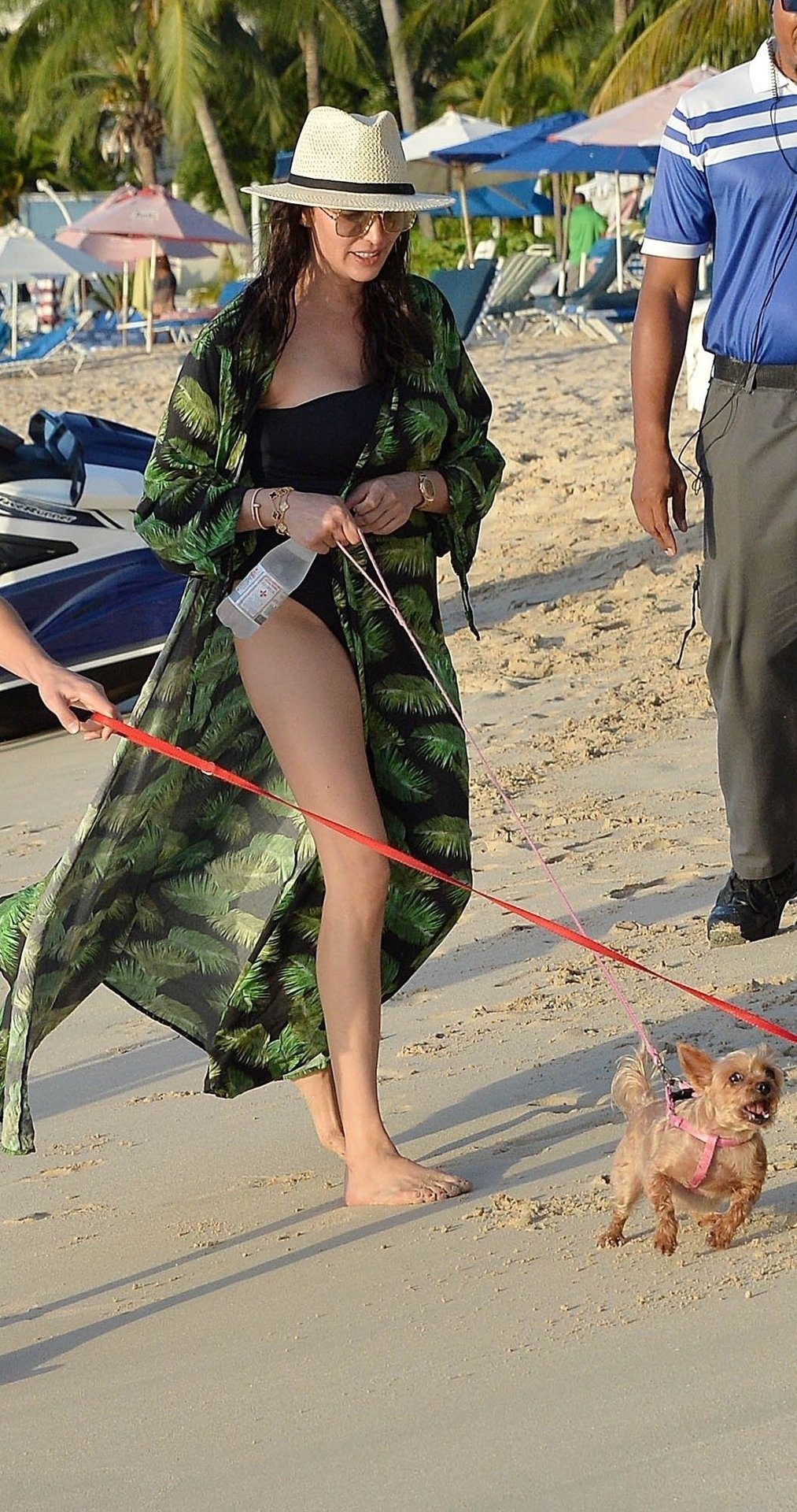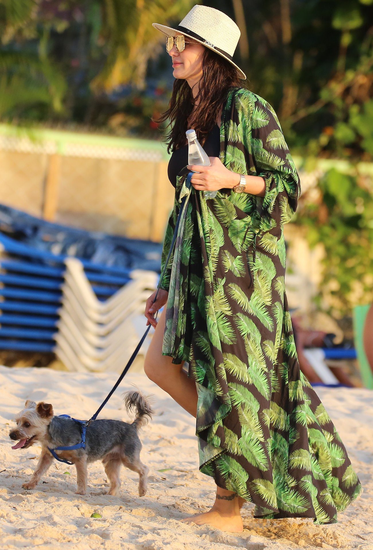 Television personality Simon Cowell and socialite Lauren Silverman enjoy a beach day in Barbados with their son Eric Cowell, 12/20/2019.