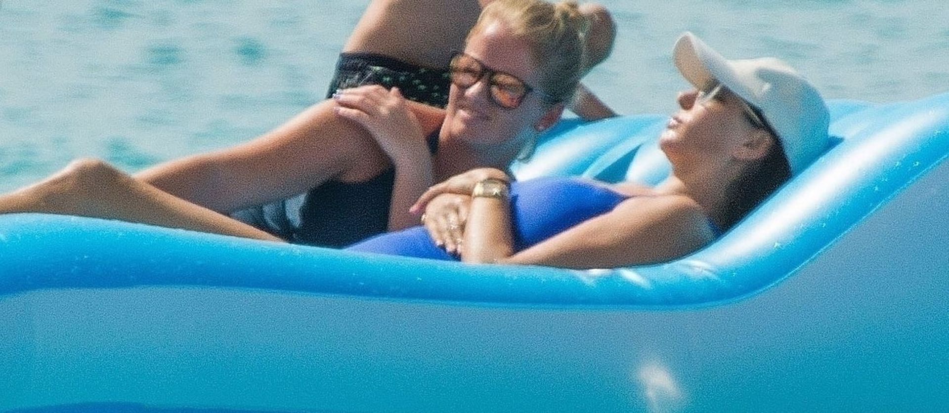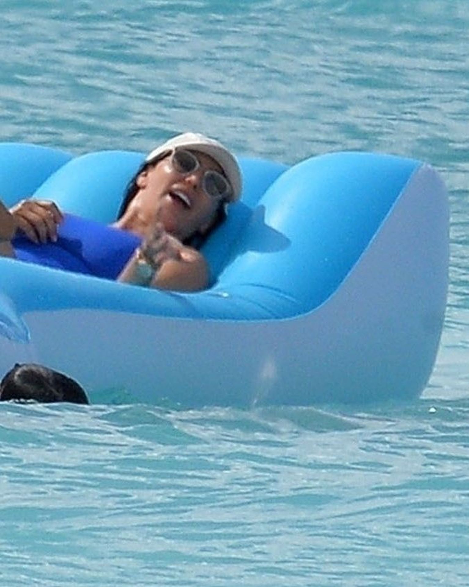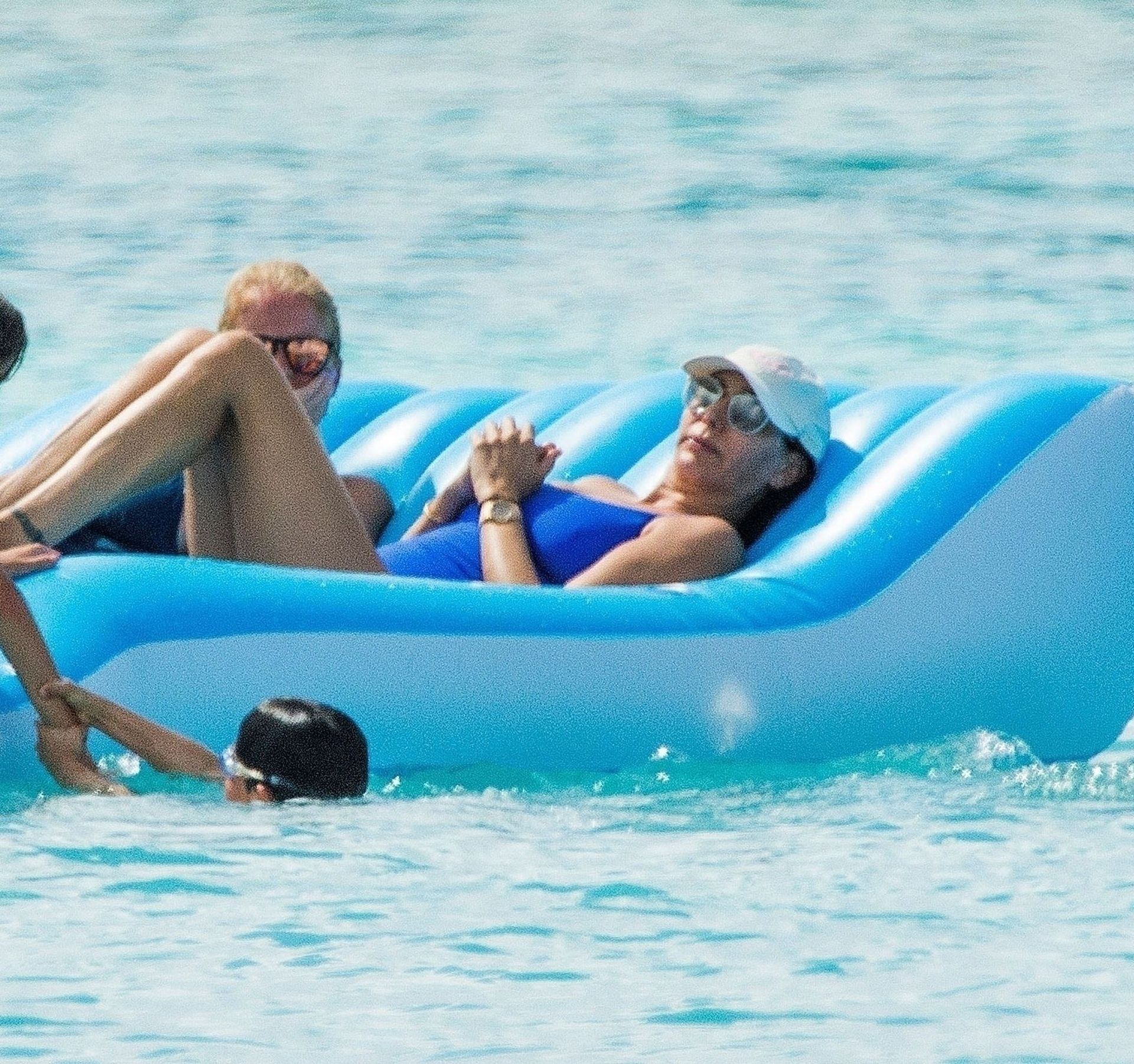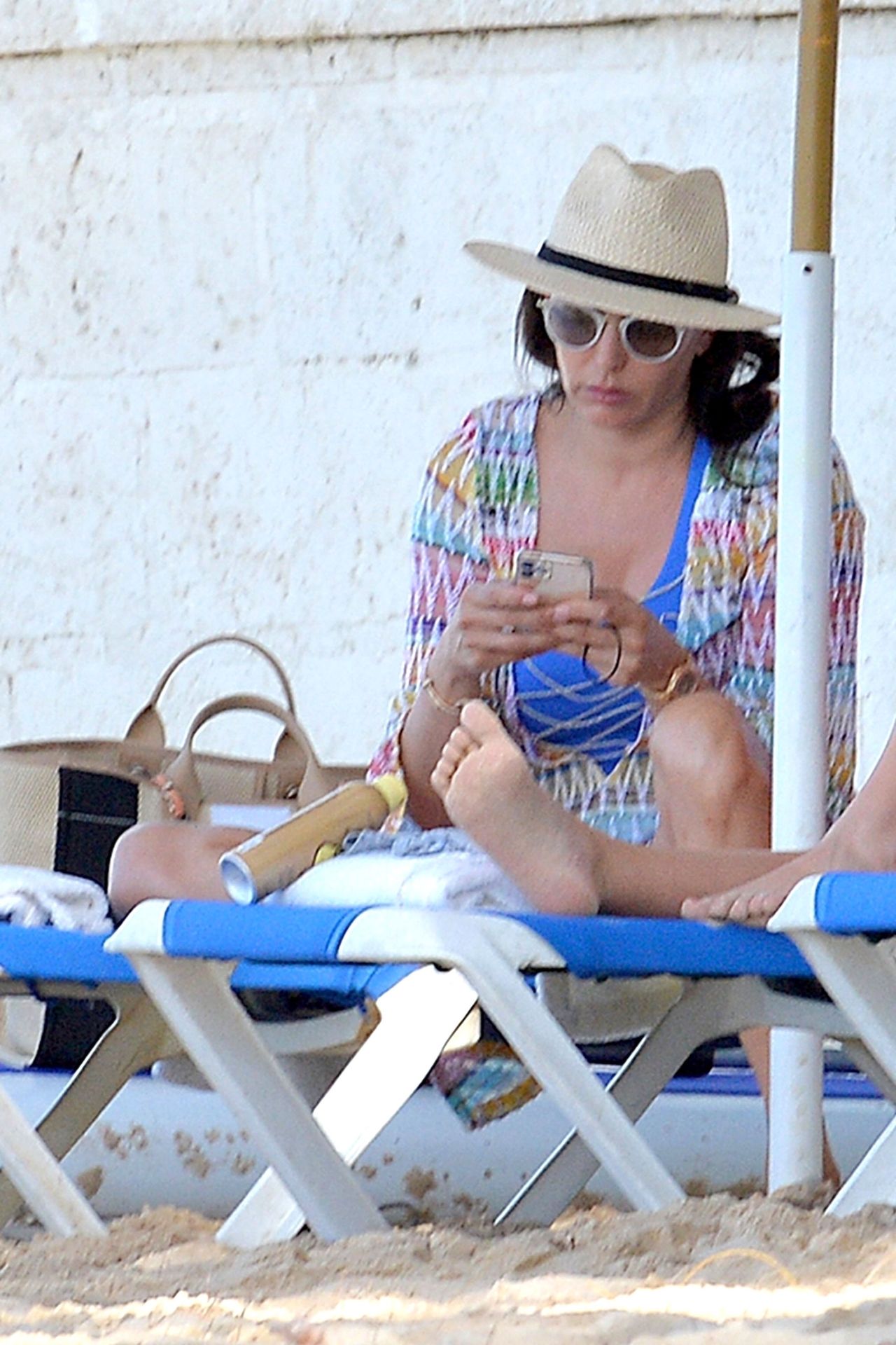 The ever so stylish Lauren holding her Chanel beach bag chilling out on her sunbed and later took a dip in the sea to cool off.