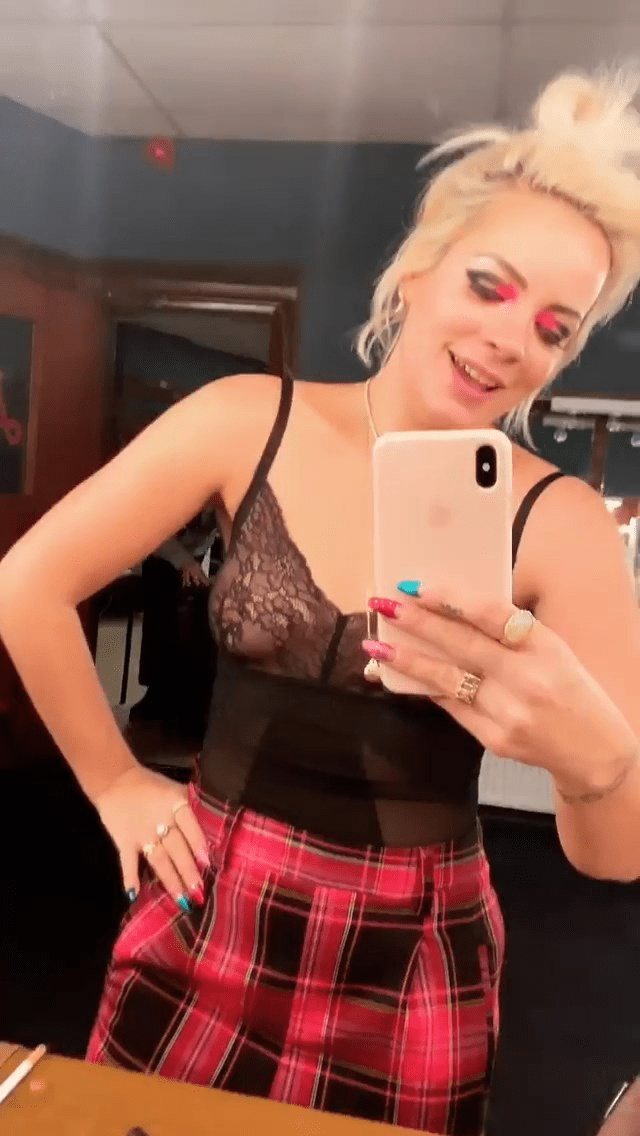 Lily Allen shared a new selfie video on Instagram, 12/14/2018. The 33-year-old singer showed off her tits wearing a black lace top.