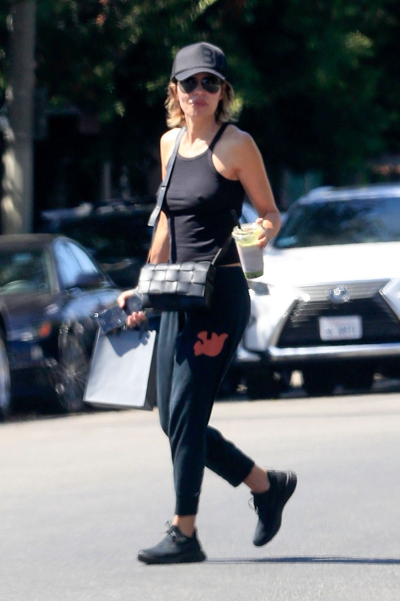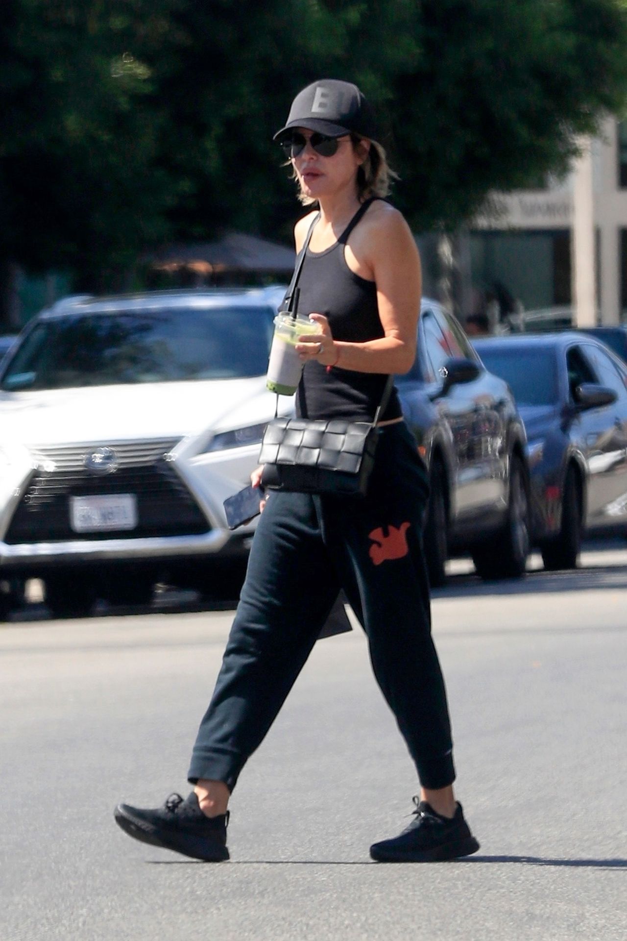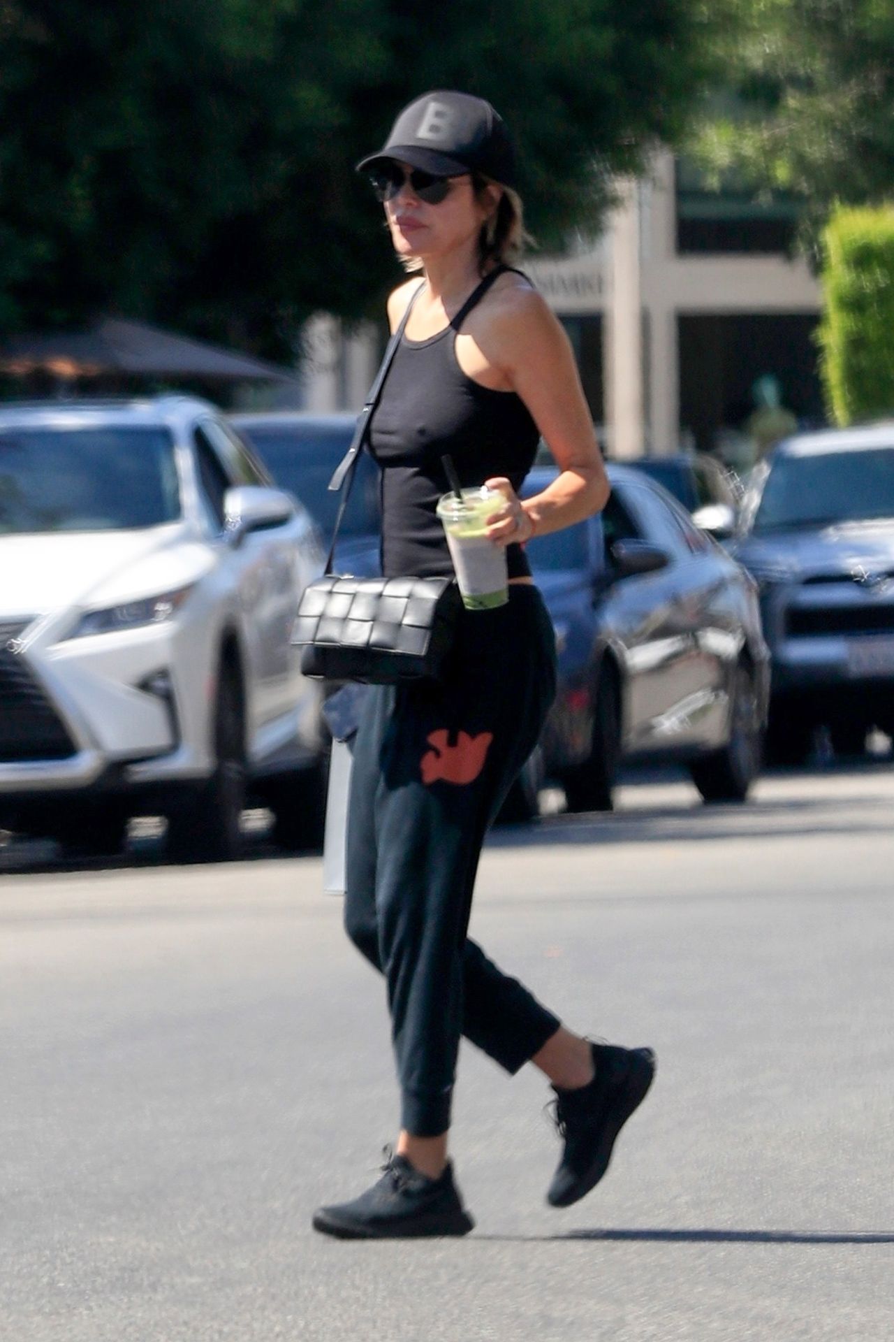Lisa Rinna was spotted grabbing a healthy juice after a visit to Kate Somerville in West Hollywood, 09/21/2019. “The Real Housewives of Beverly Hills” star kept things super casual in all-black athletic gear, even opting to ditch the bra on her weekend outing.