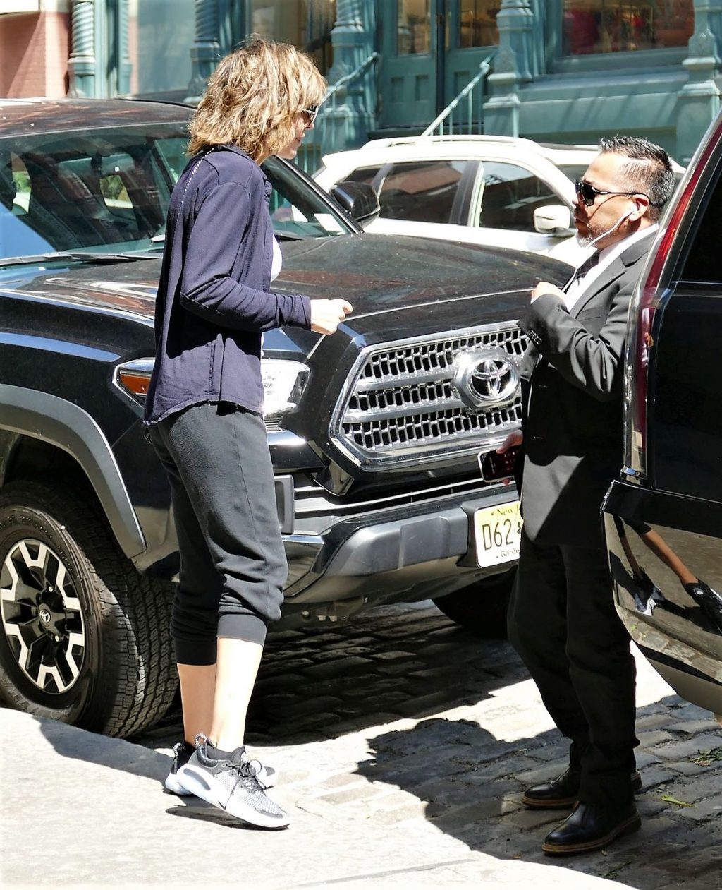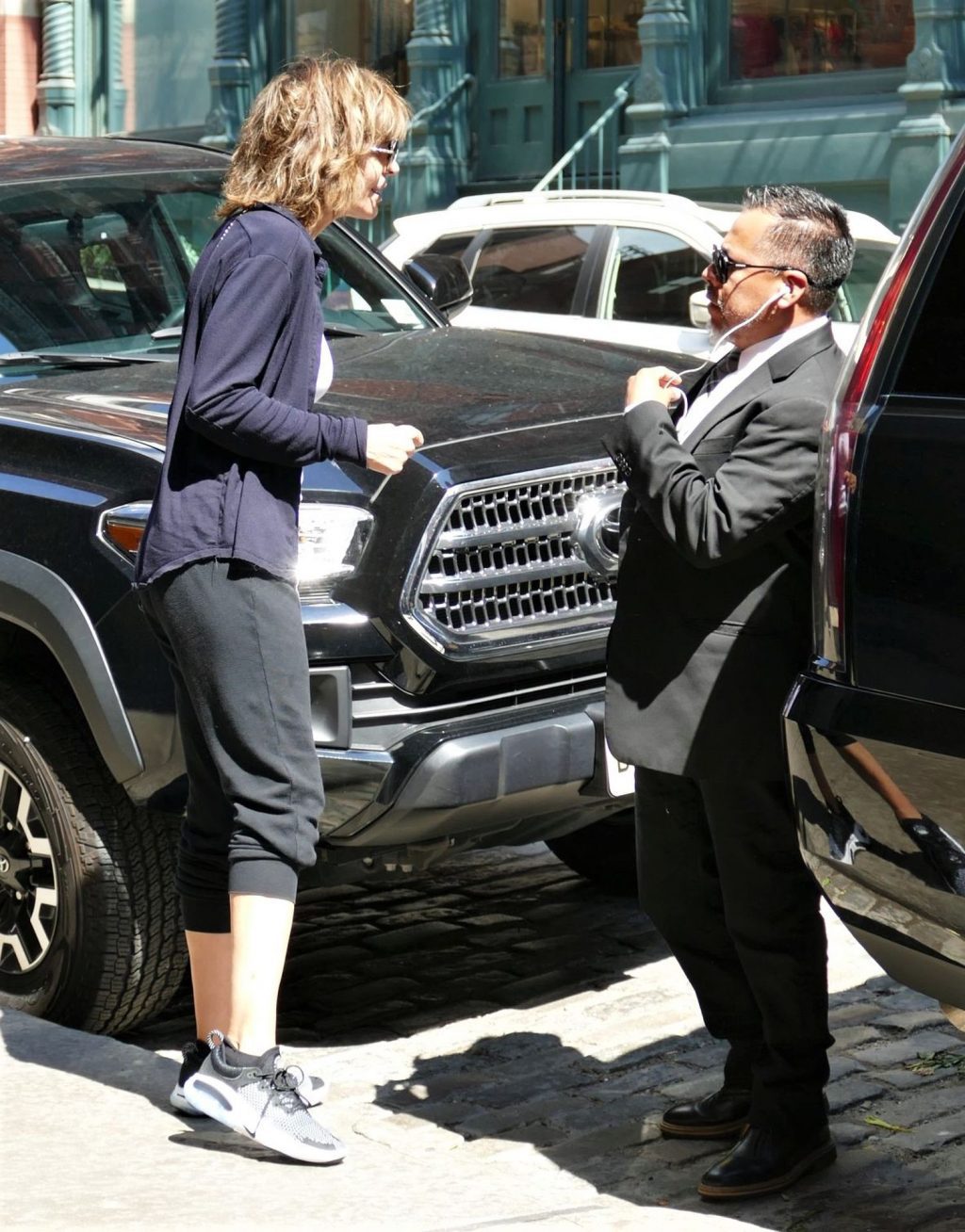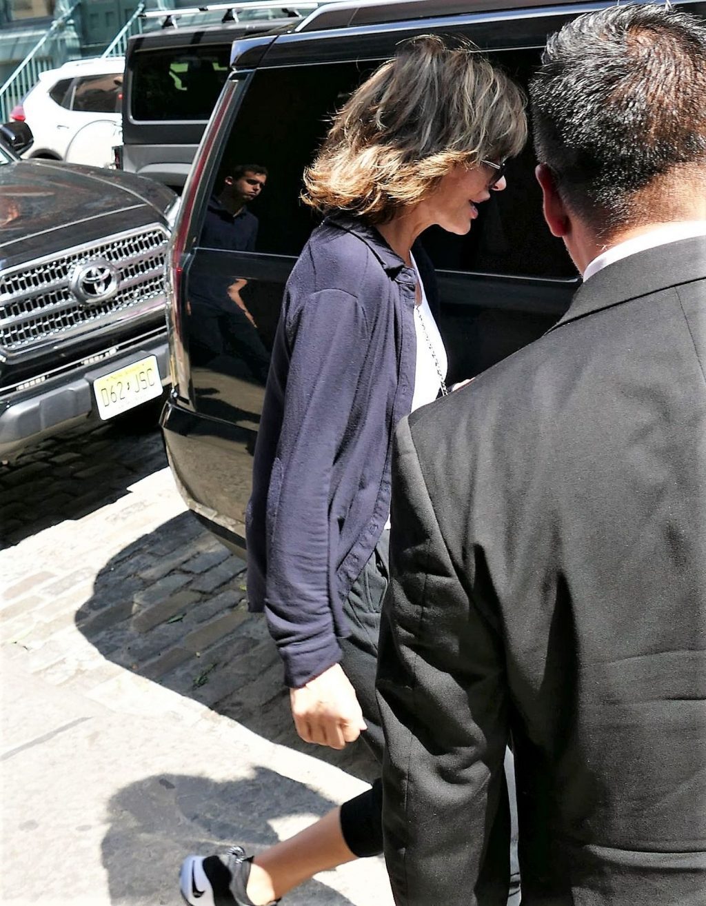 Lovely Lisa Rinna was seen braless under white top worn with jogging suit – New York, 08/17/2019.