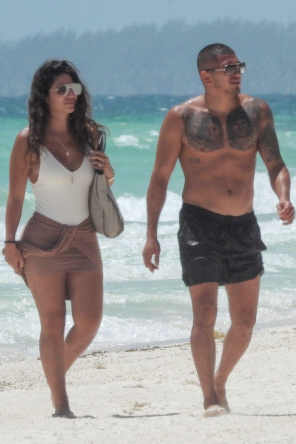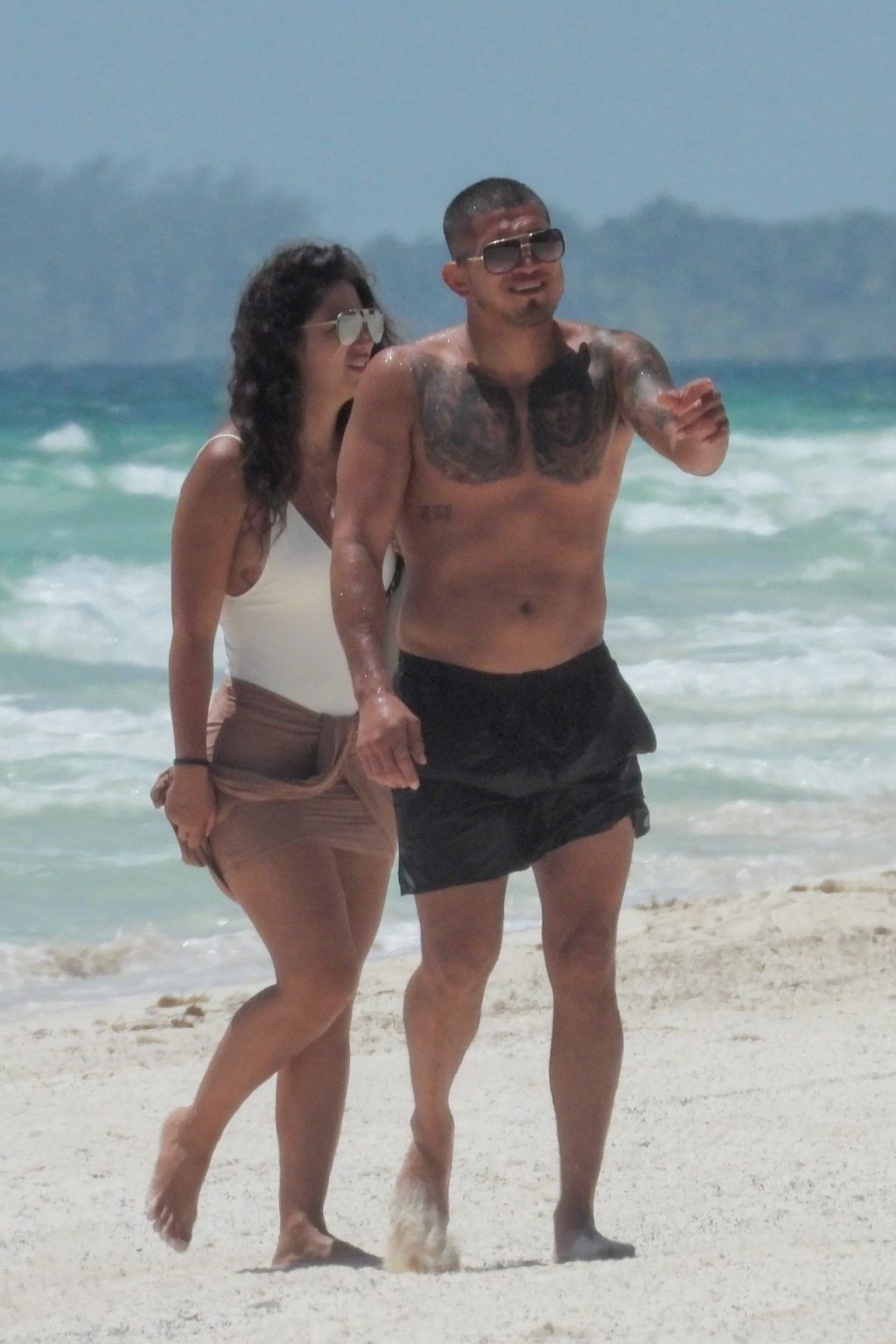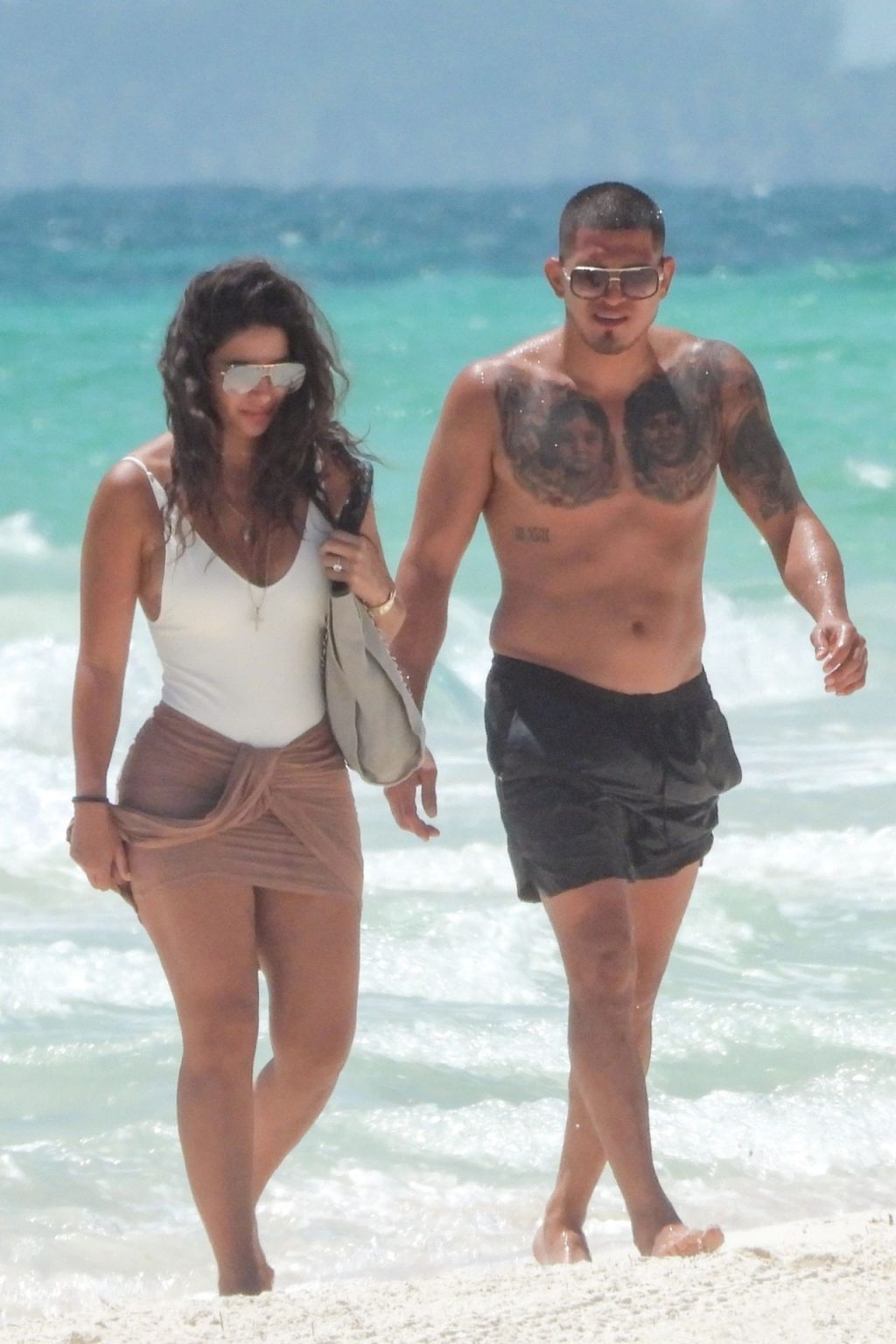 UFC fighter Anthony Pettis and his longtime girlfriend, Lisette Gadzuric look inseparable as they hit the waters of Tulum during their Mexico vacation, 09/04/2019. The happy couple hold each other tight while taking a dip in the turquoise-colored water.