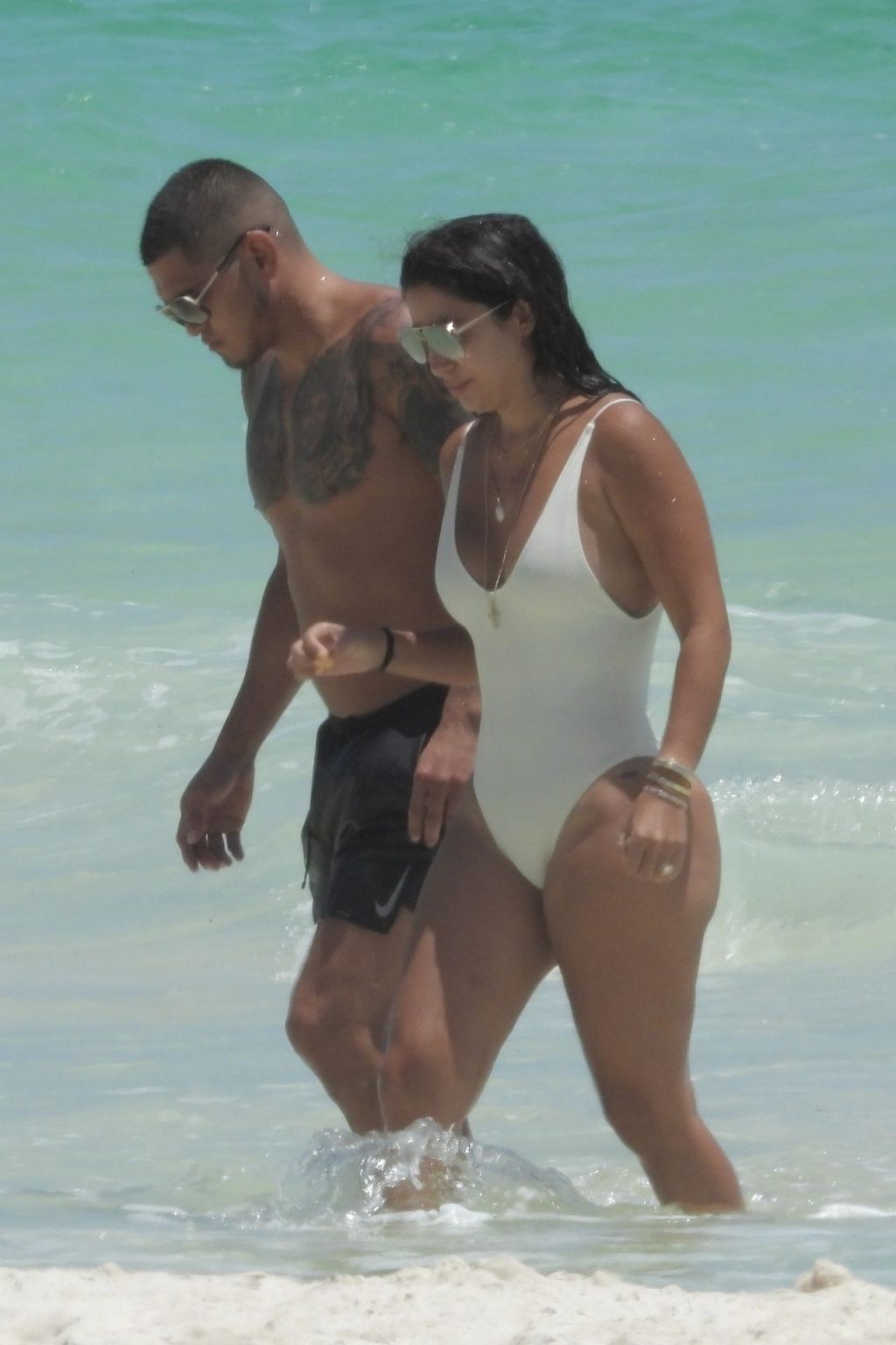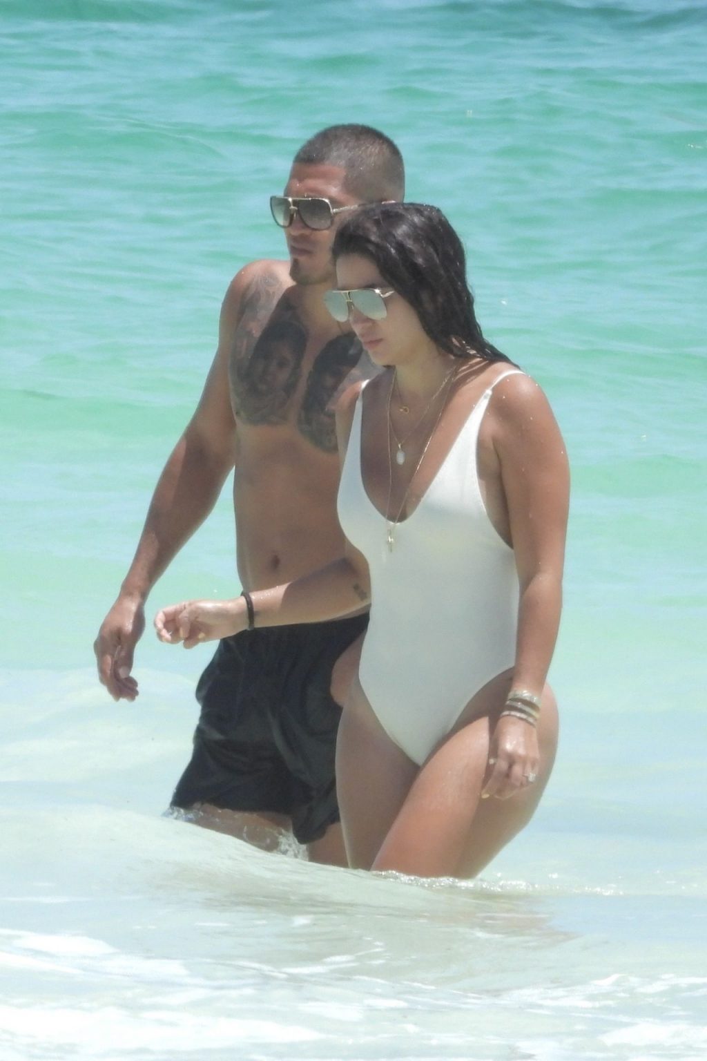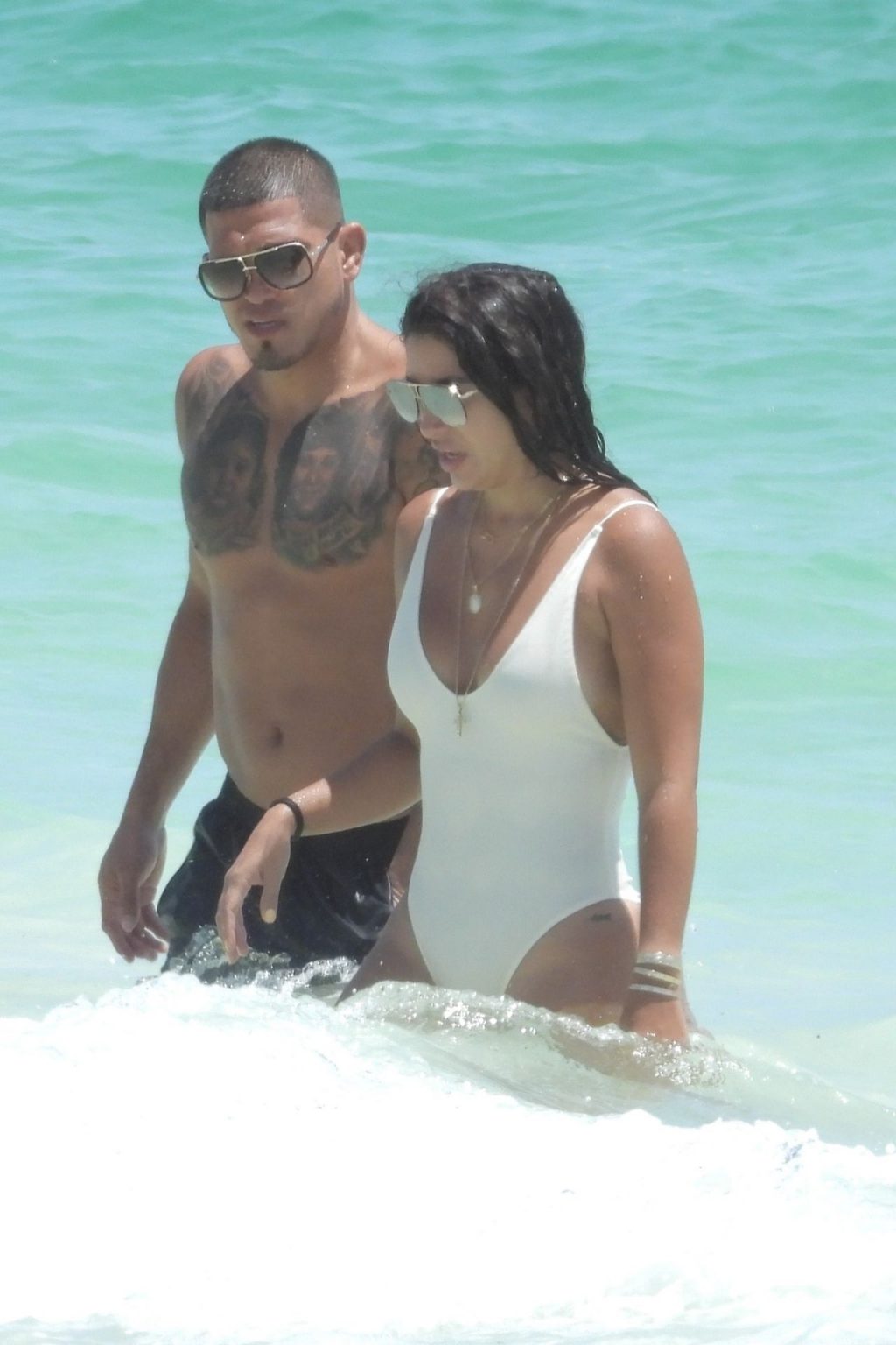 UFC fighter Anthony Pettis and his longtime girlfriend, Lisette Gadzuric look inseparable as they hit the waters of Tulum during their Mexico vacation, 09/04/2019. The happy couple hold each other tight while taking a dip in the turquoise-colored water.