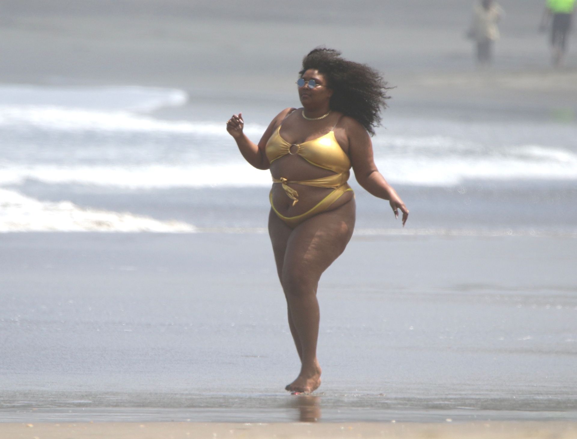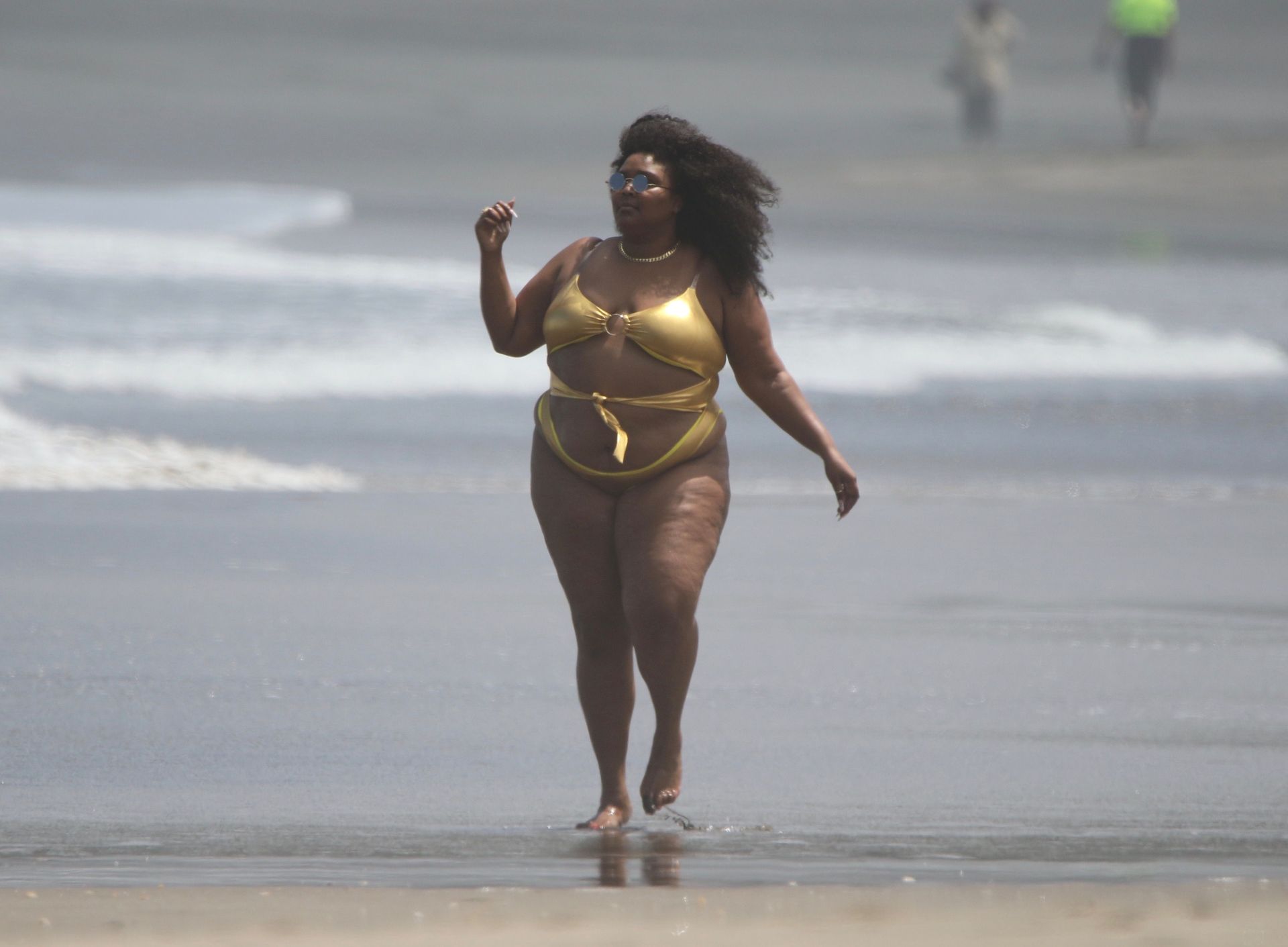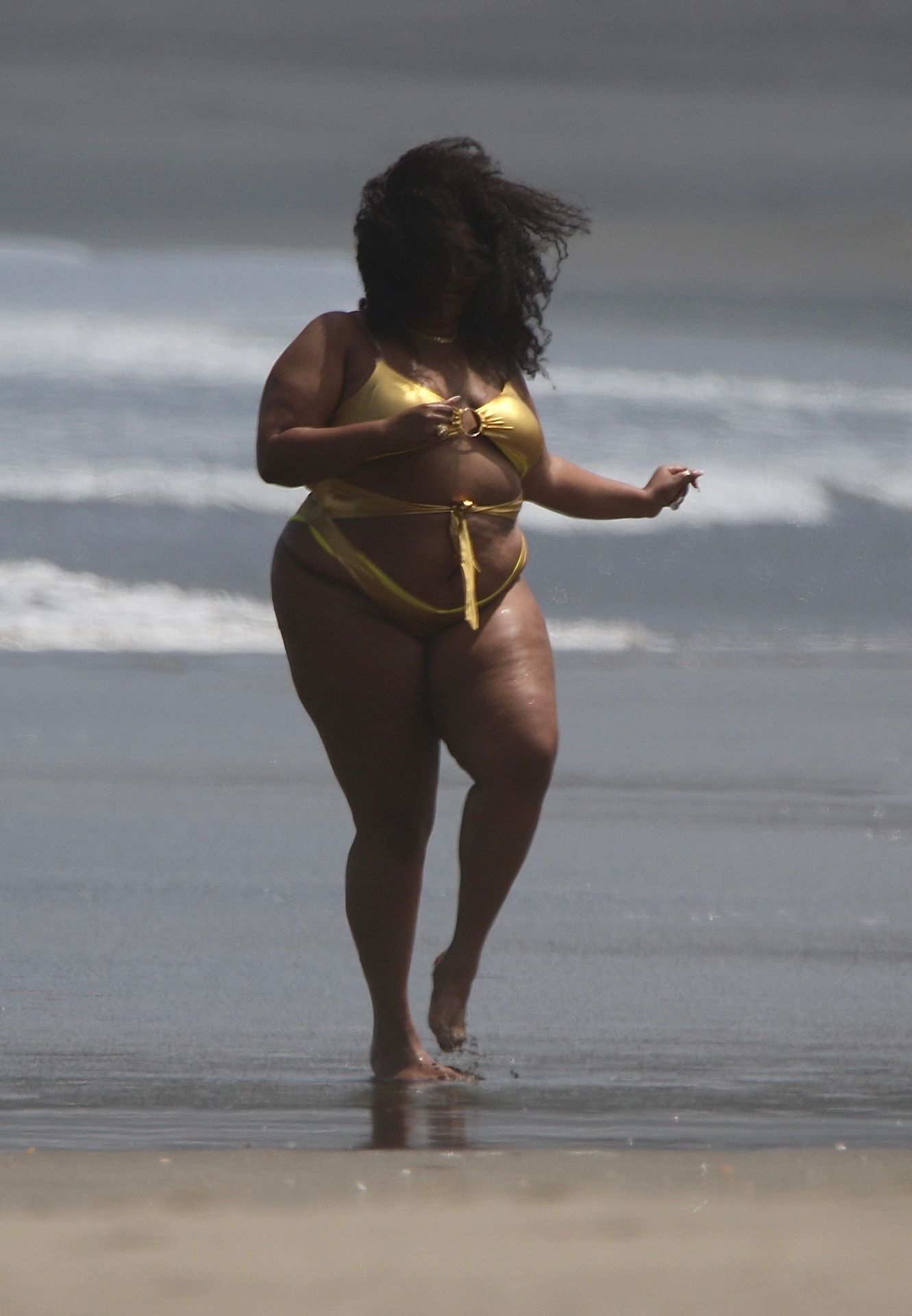Lizzo Stands Out In A Gold Bikini In Auckland 0007