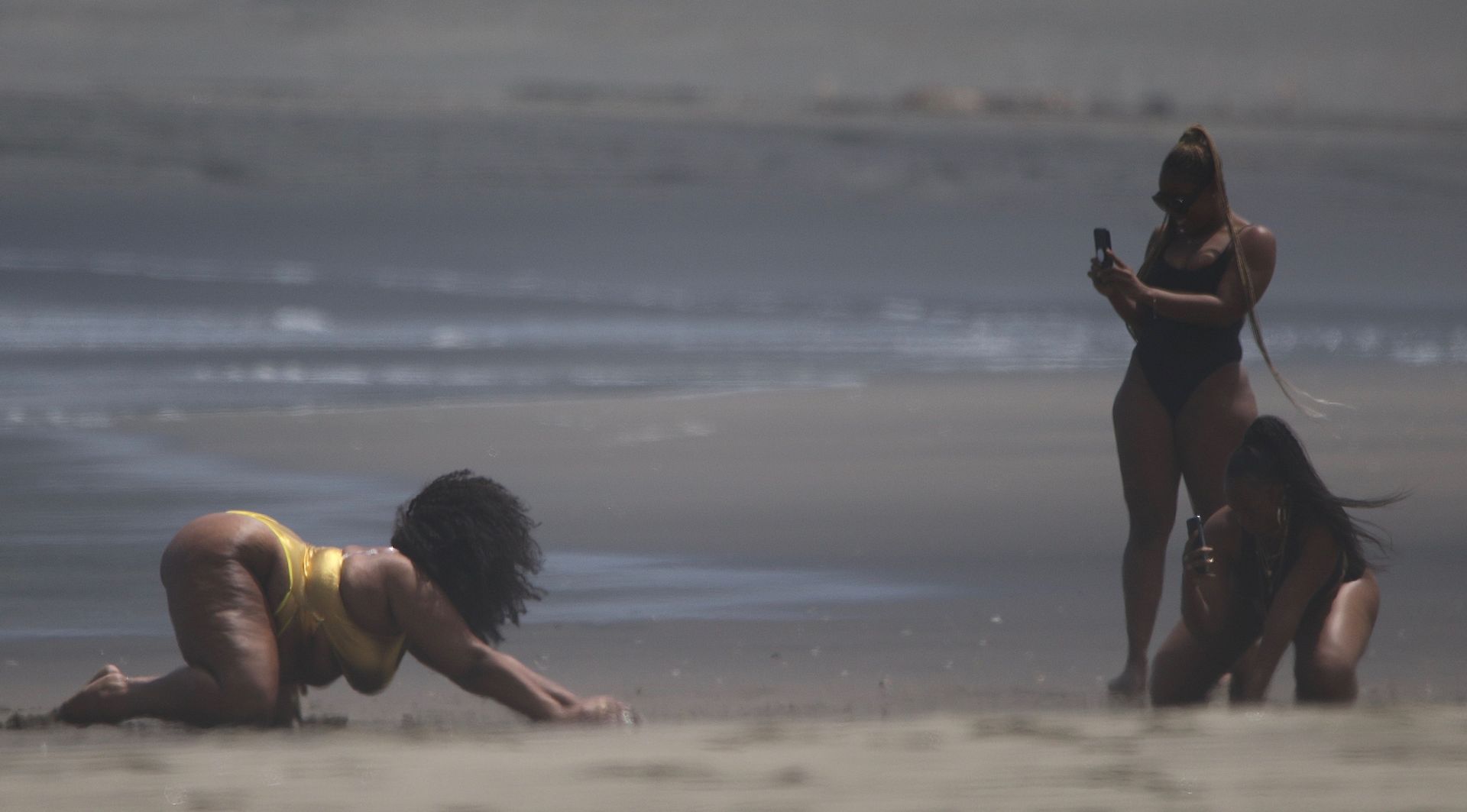 Visiting Piha hours before taking the stage at the FOMO festival, she and her group enjoyed taking raunchy pictures before they were ordered out of the surf by a lifeguard patrol. The beach is notoriously dangerous for rip currents and many people have died there swimming away from the patrolled area.