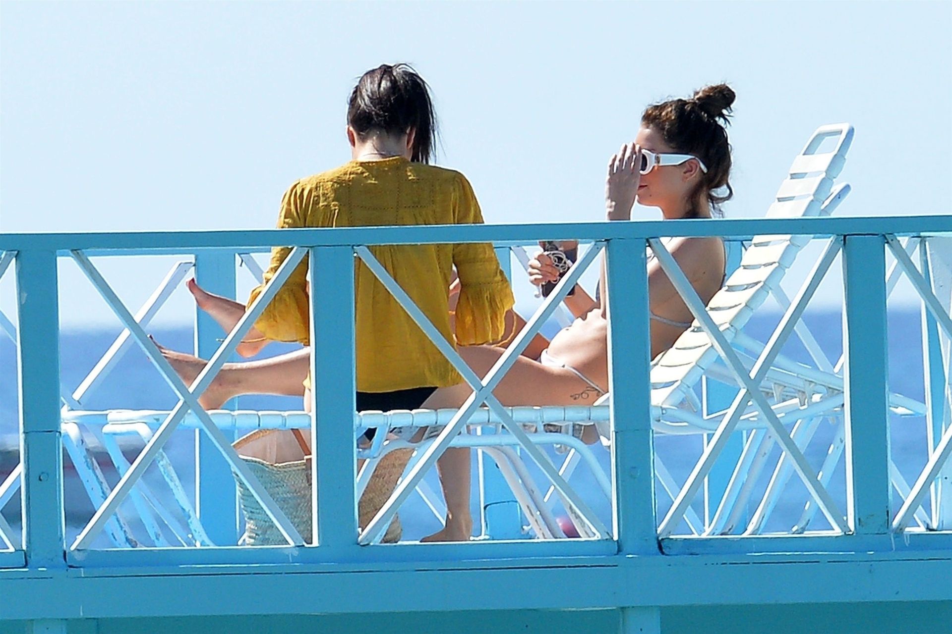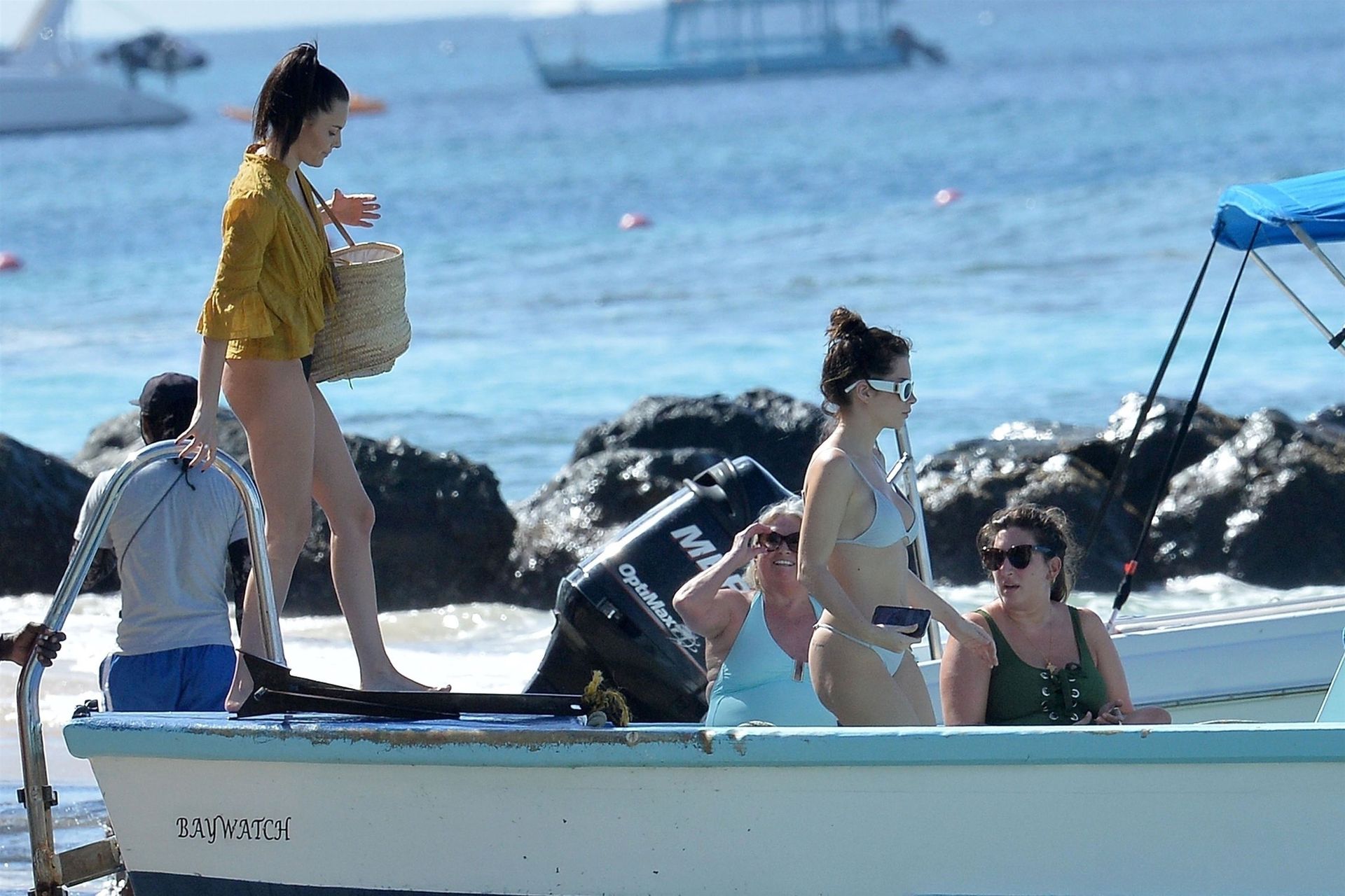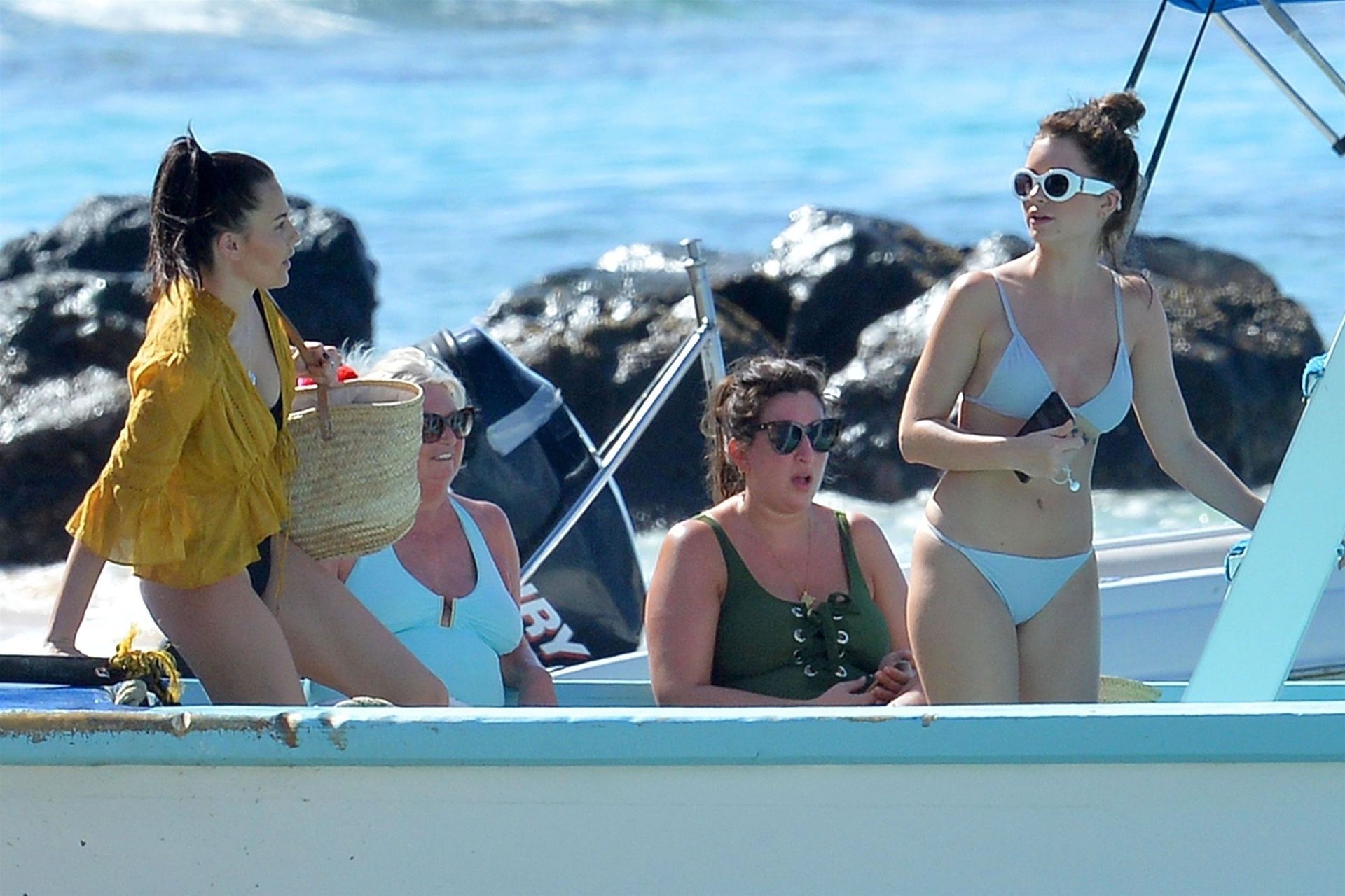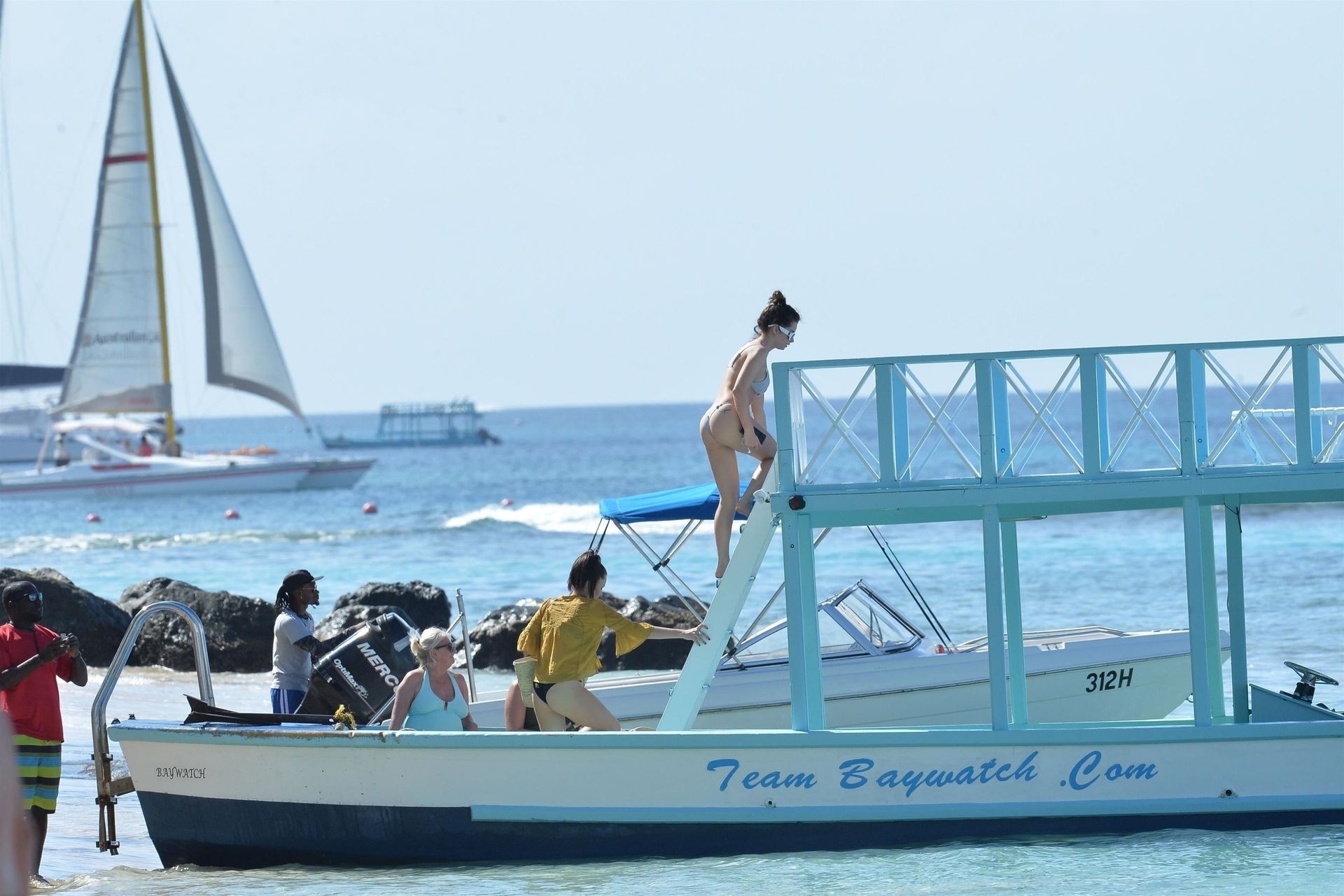Model Lottie Moss and “Made In Chelsea” pal Emily Blackwell take the boat in Barbados, 12/11/2018.