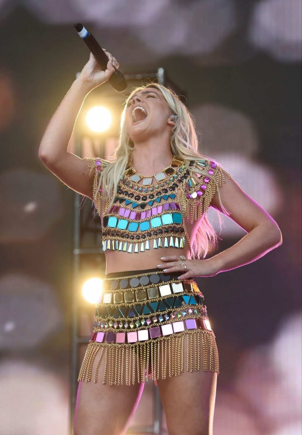 English singer and The Fappening Star Louisa Johnson looked sexy in her Bejeweled outfit while performing live at Manchester Pride, 08/24/2019.