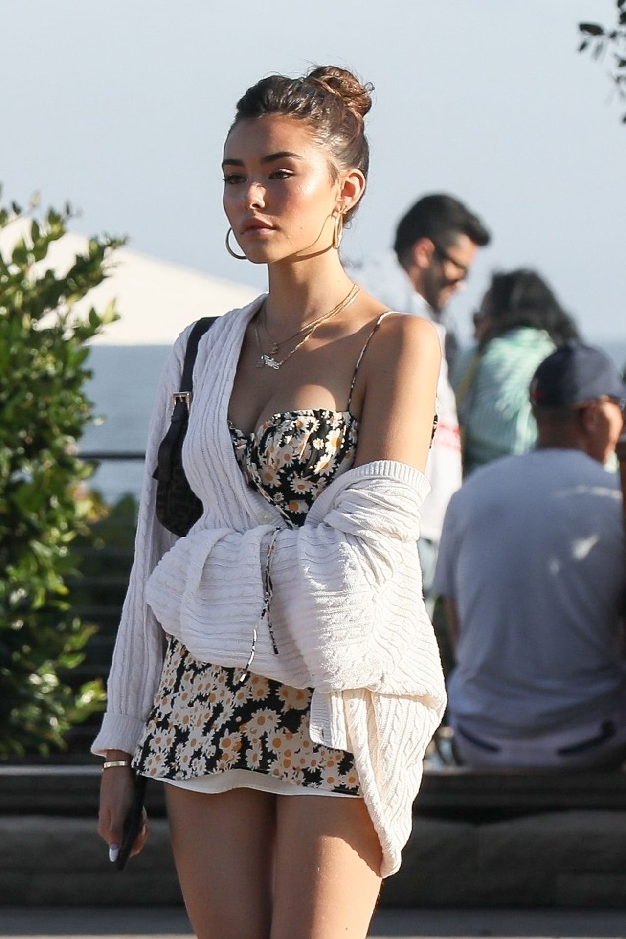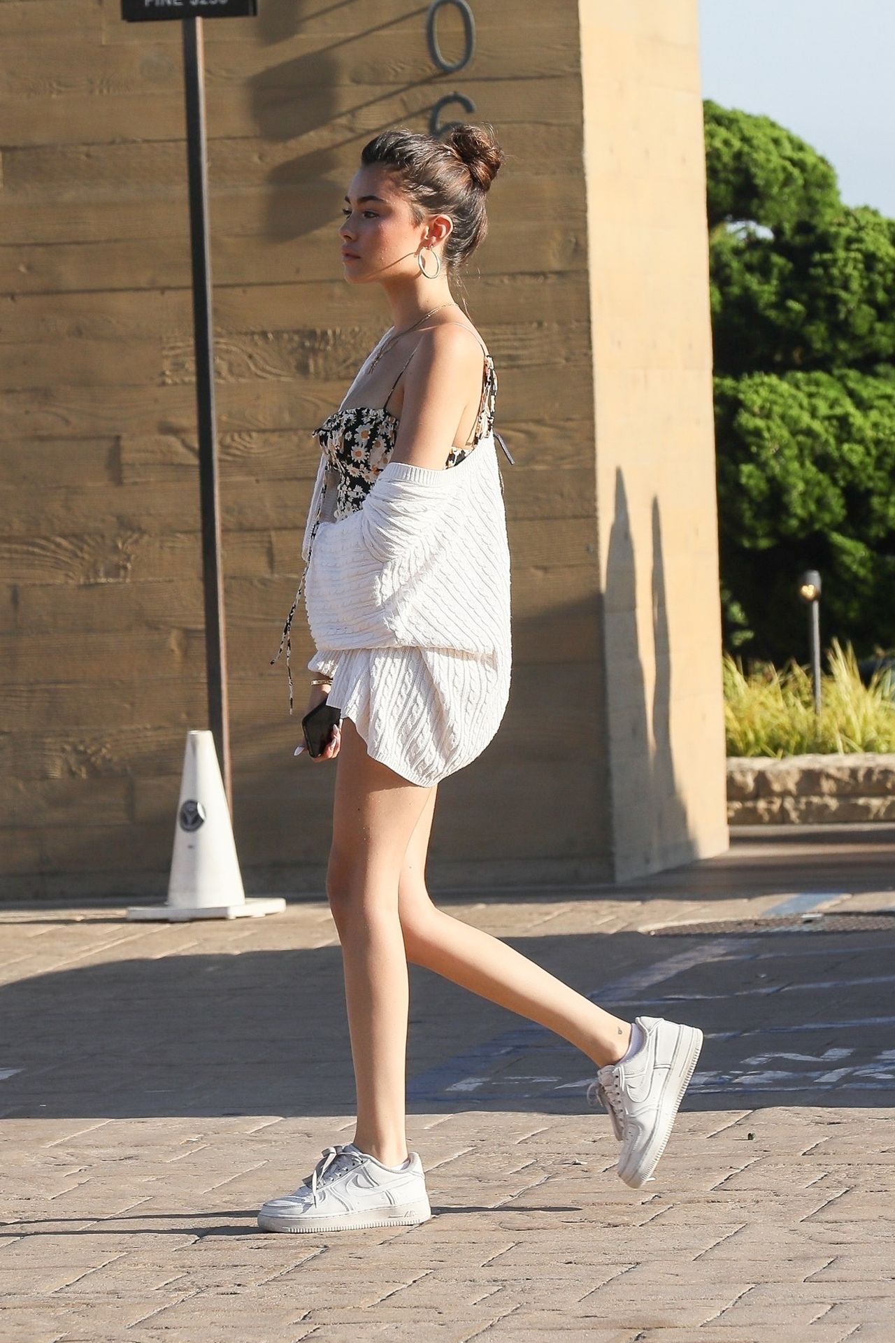 Leggy Madison Beer was spotted leaving Nobu after lunch with friends, 08/25/2019. The singer chose a floral mini dress paired with sneakers for her outing.