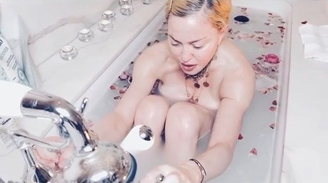 Madonna shared a new Instagram video about Covid-19, 03/22/2020. This time she covered her old tits, sitting in the bath.