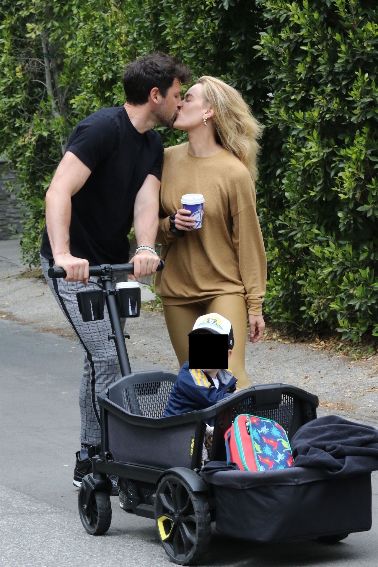 “Dancing with the Stars” dance pros Maksim Chmerkovskiy and wife Peta Murgatroyd seen out on a walk Saturday. The two look fine as they walk their son during this LA lock down from the corona virus and share a kiss before continuing their walk.