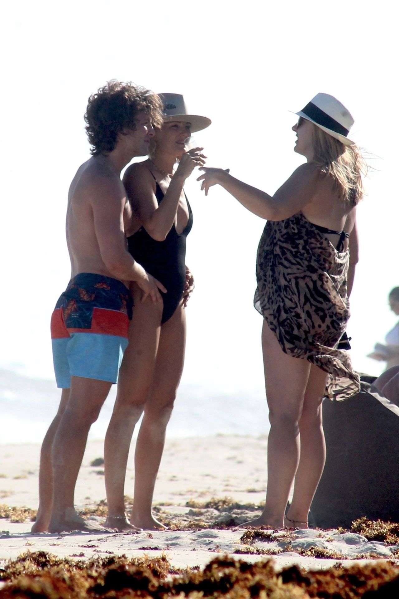 Malin Akerman enjoys a day at the beach in Tulum with her new husband Jack Donnelly and their friends, 12/03/2018. The newlywed couple looks ecstatic as they joke around with pals.
