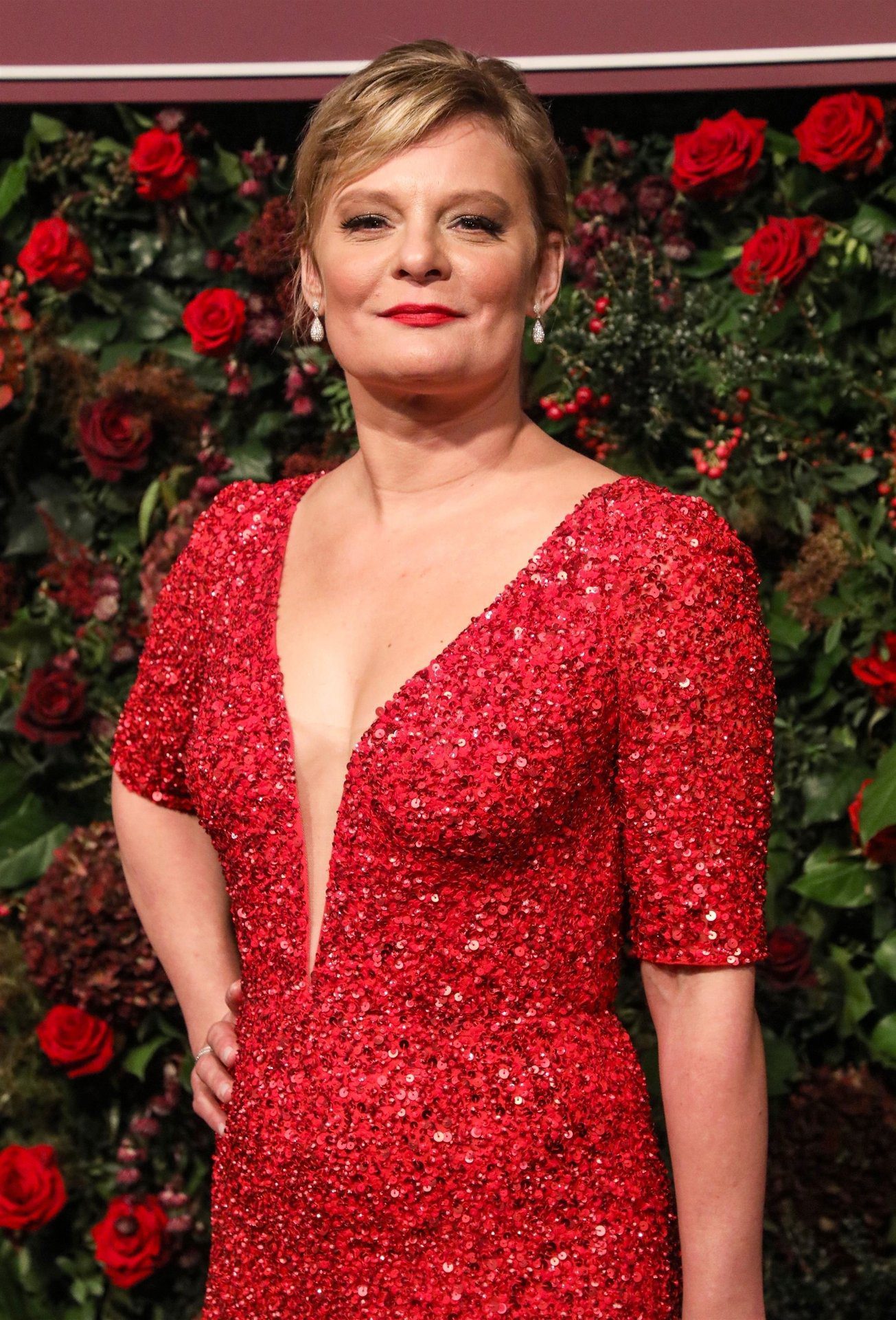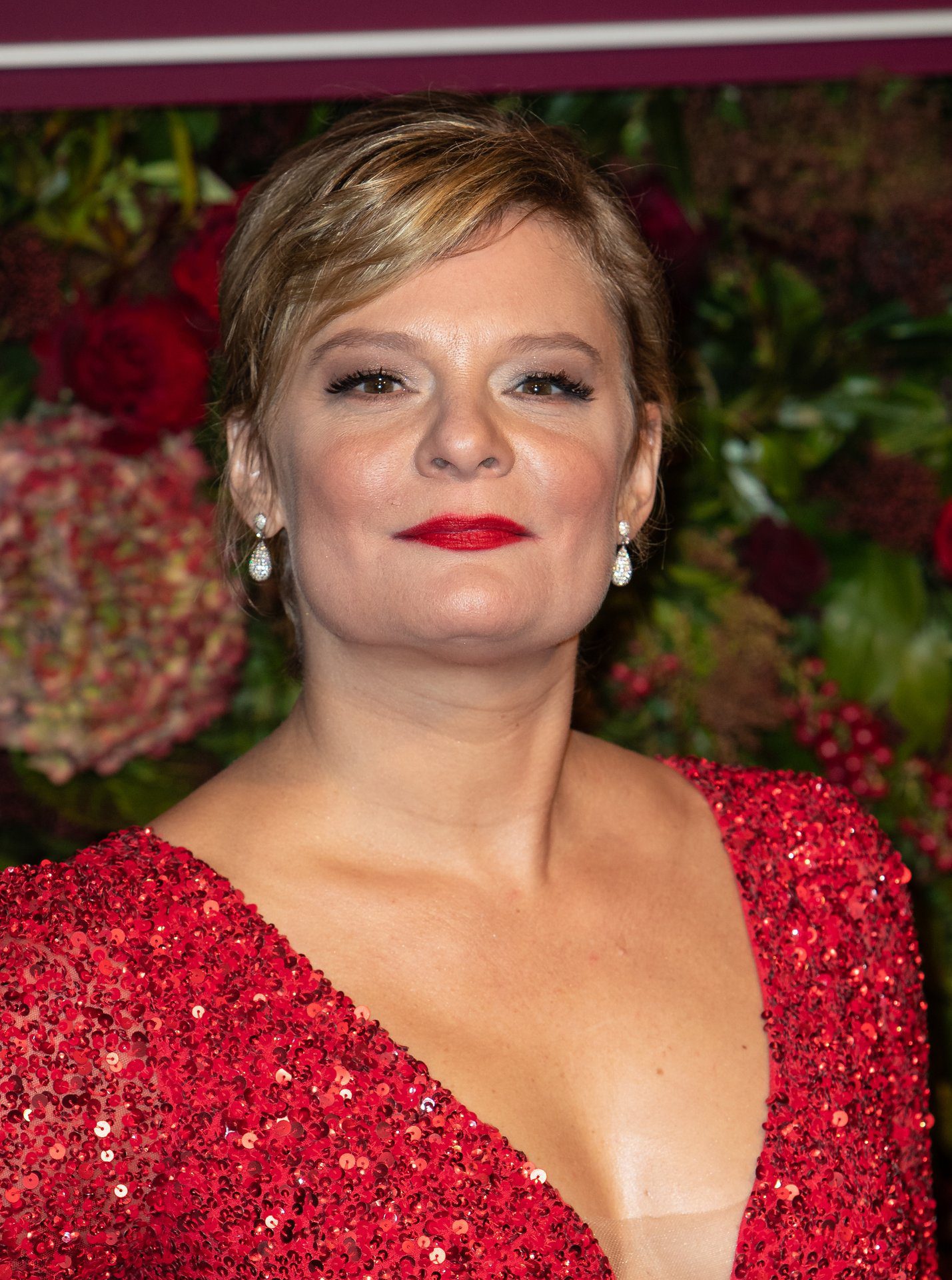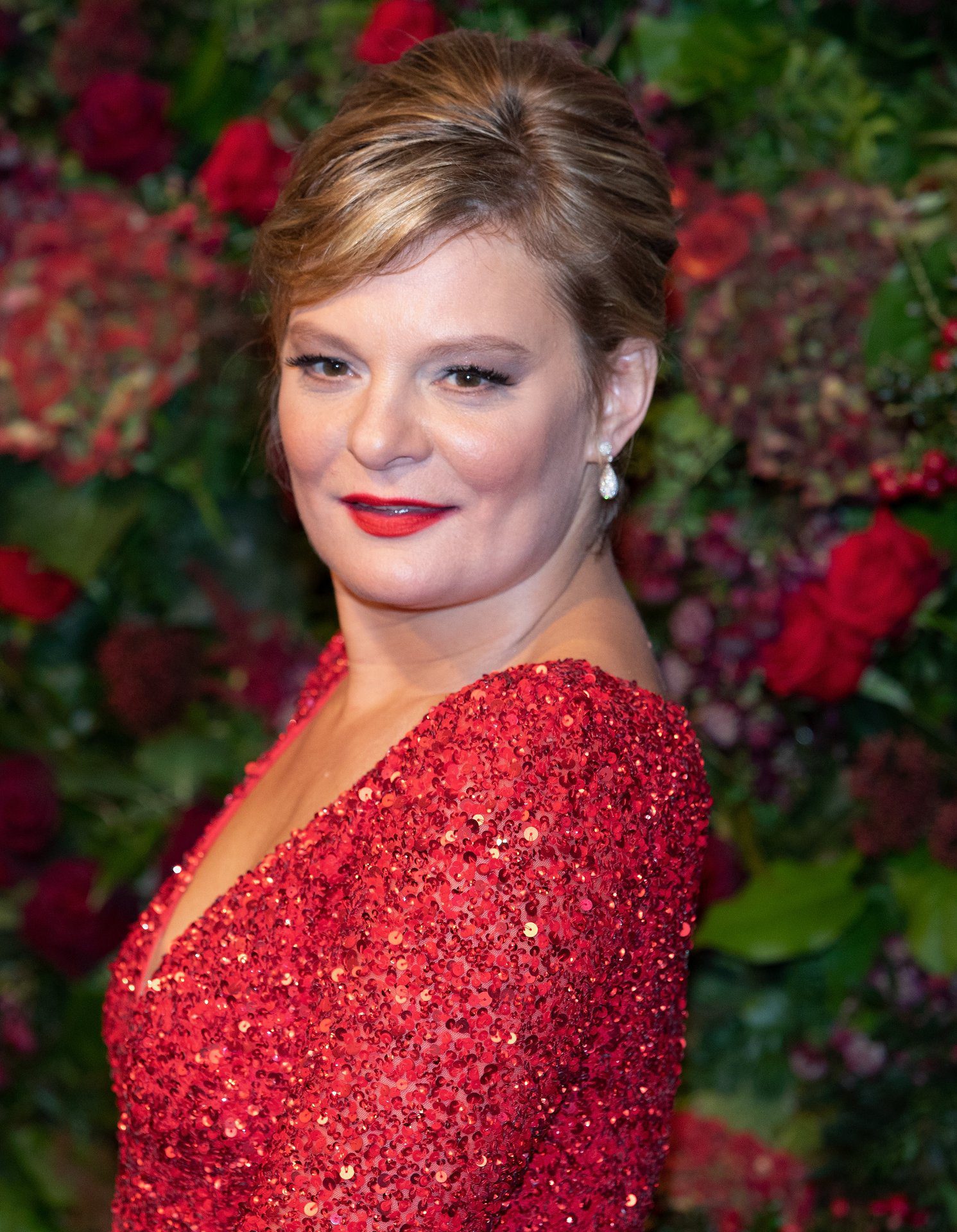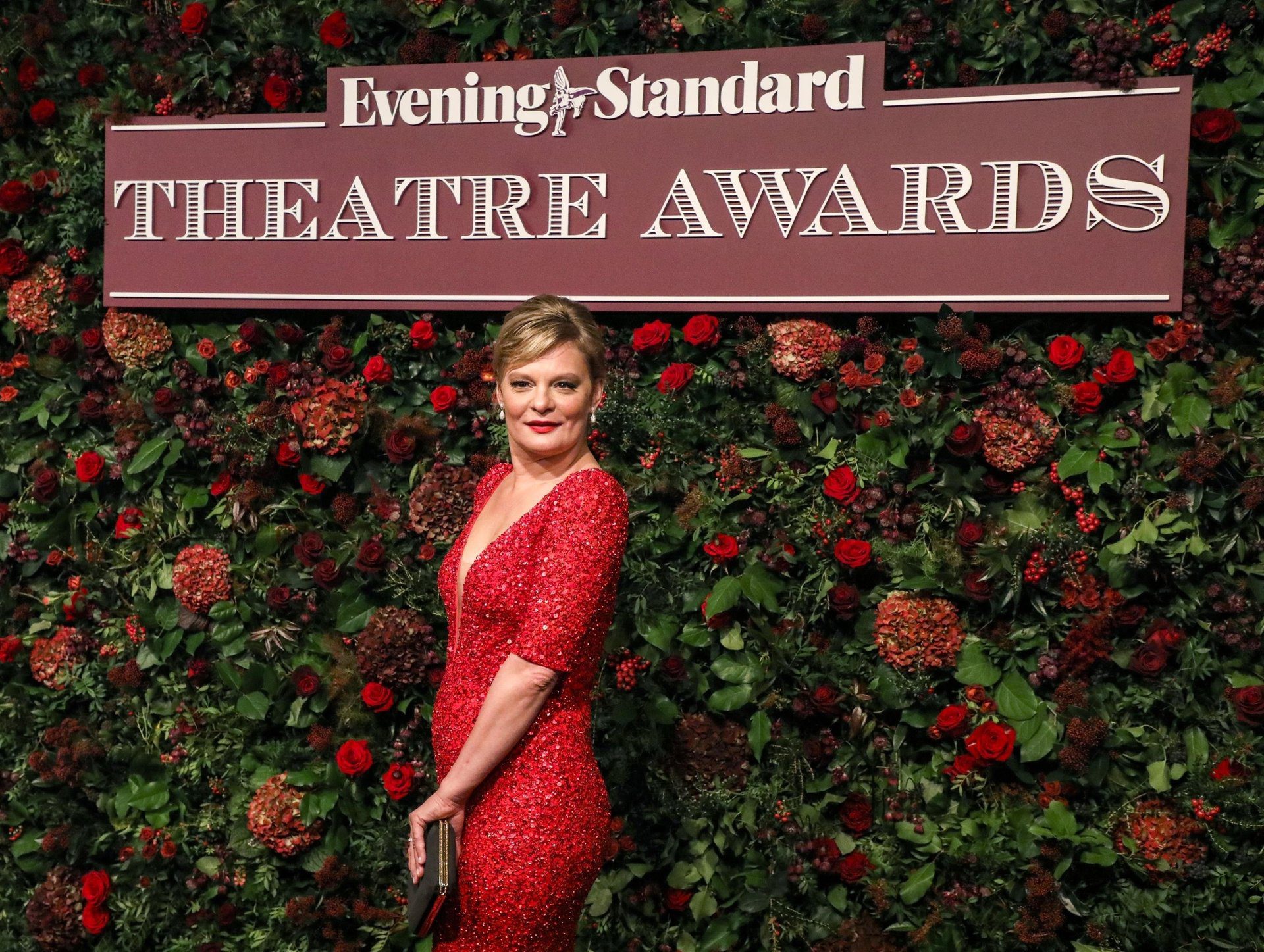 American actress, singer, model Martha Plimpton was seen in a red dress on the red carpet of the 2019 Evening Standard Theatre Awards at the London Coliseum, 11/25/2019.