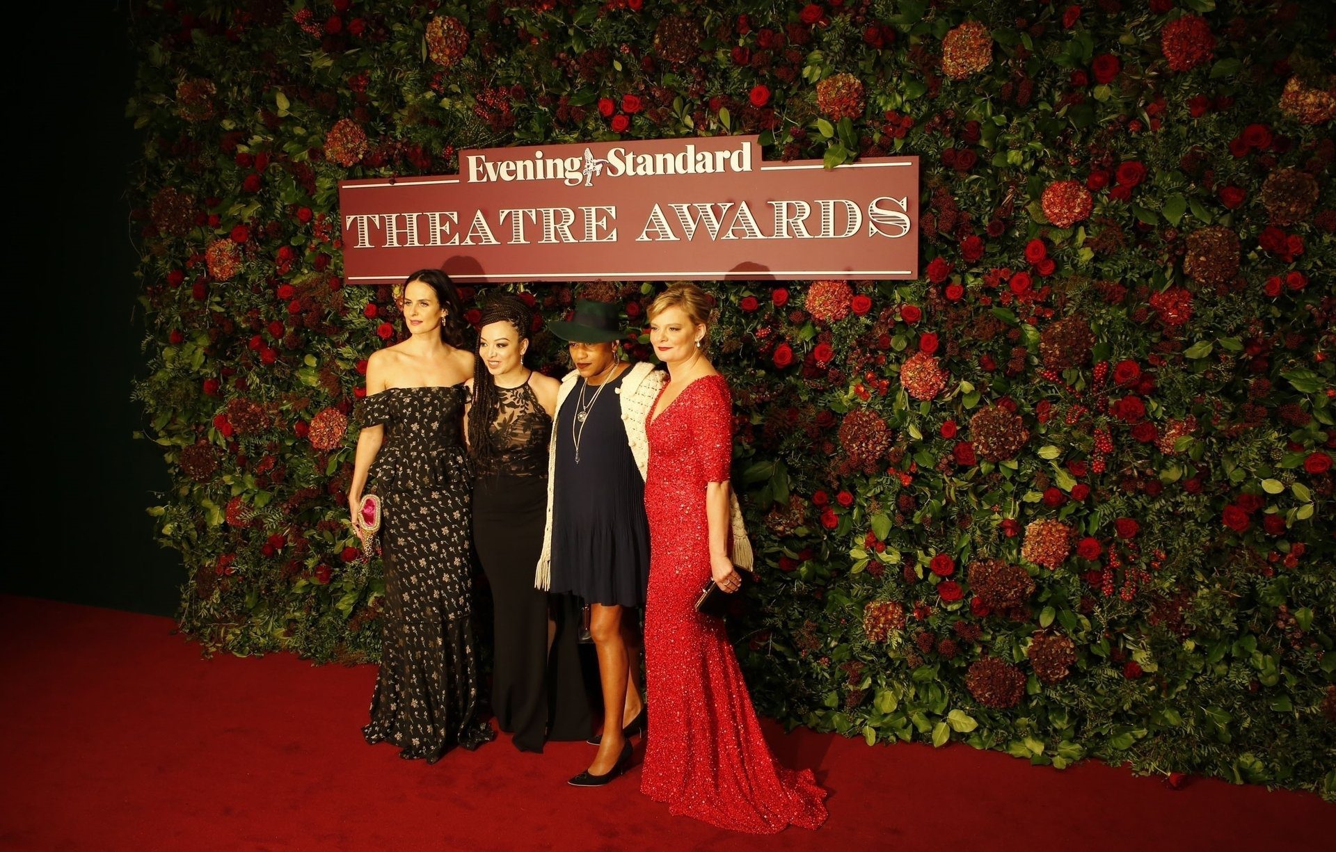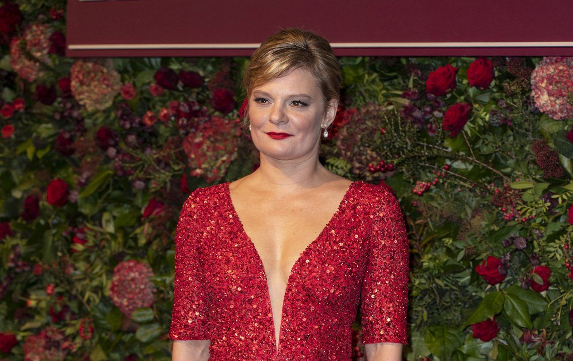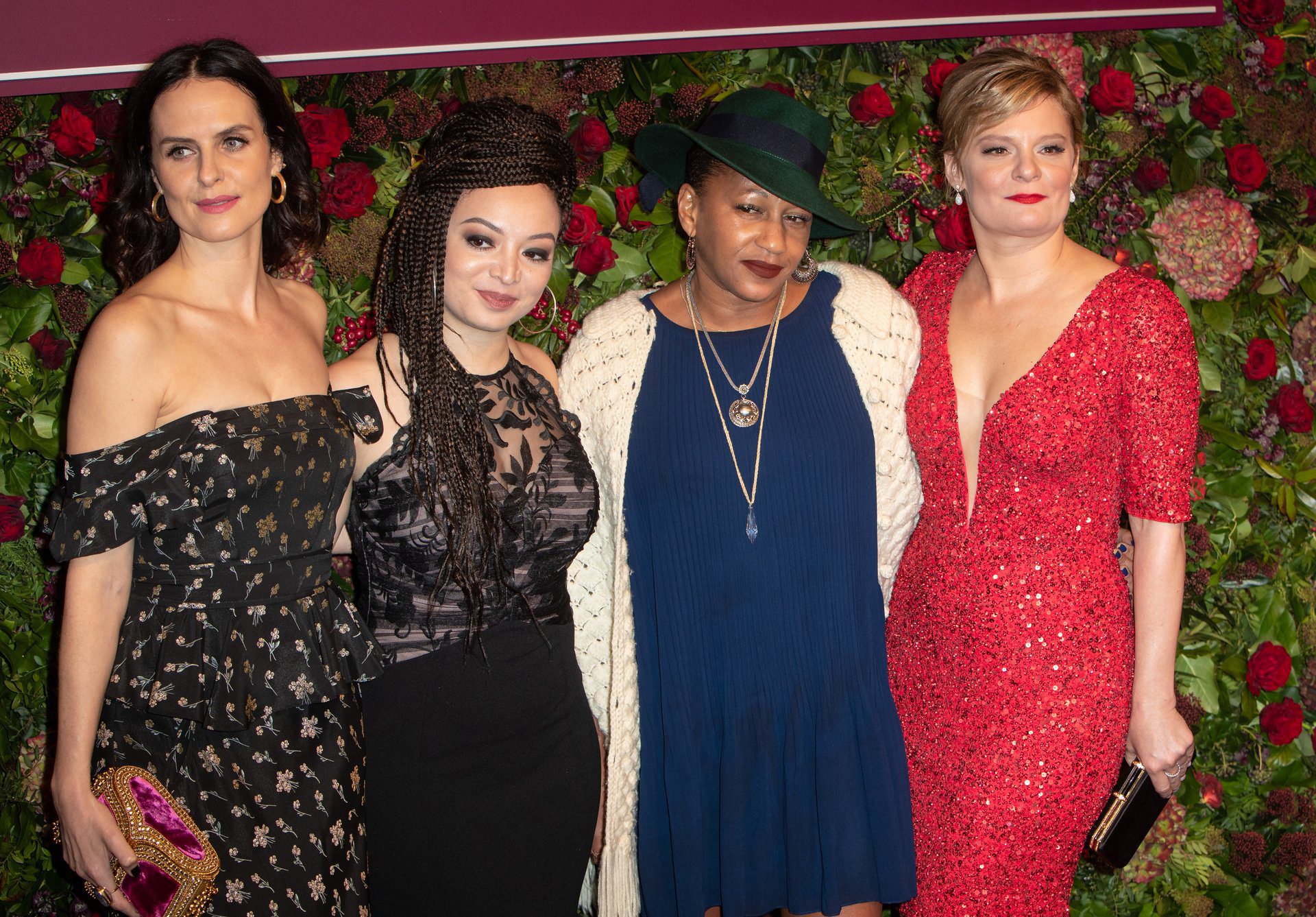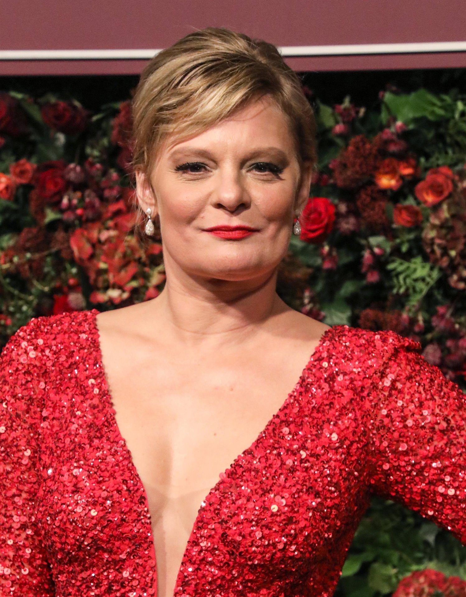 American actress, singer, model Martha Plimpton was seen in a red dress on the red carpet of the 2019 Evening Standard Theatre Awards at the London Coliseum, 11/25/2019.
