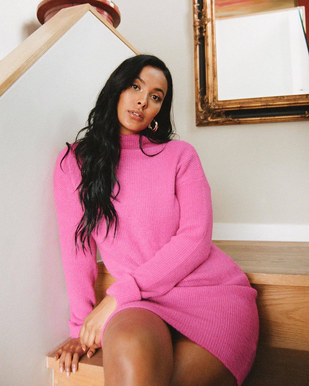 Maya Jama looks beautiful wearing pink dress in a photoshoot for an interview with the Guardian.