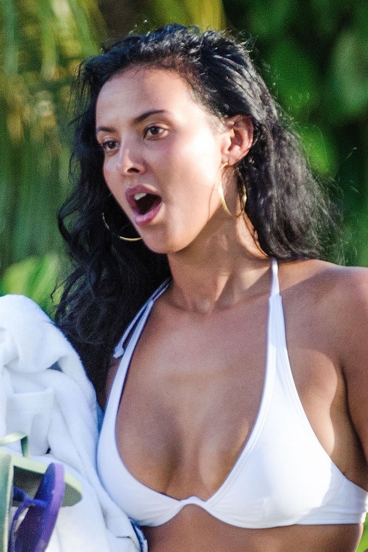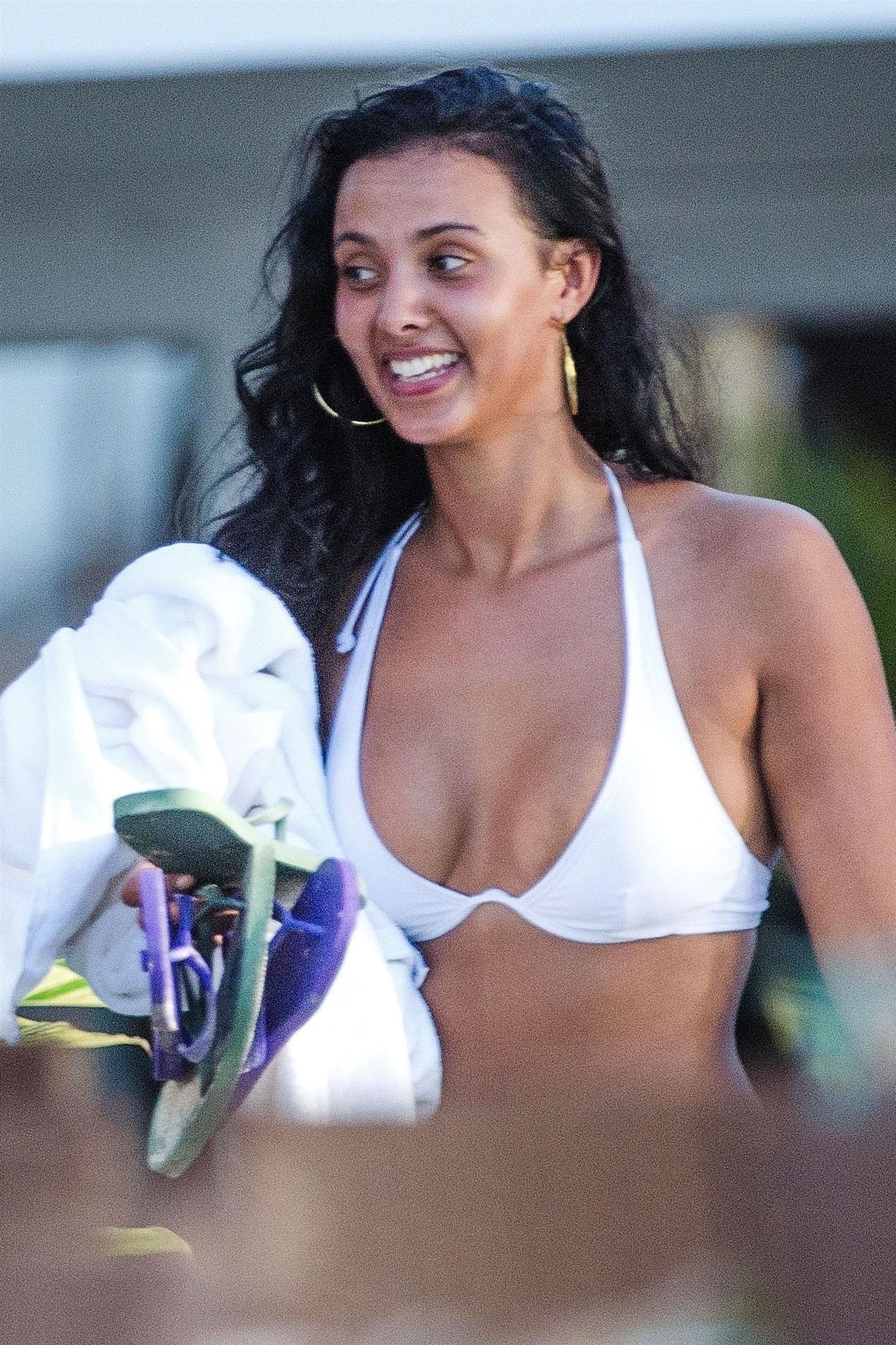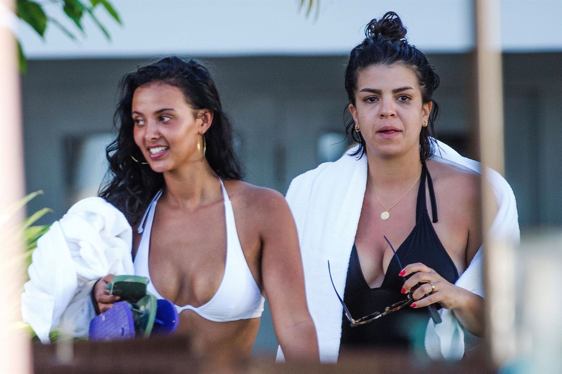 British presenter Maya Jama was seen enjoying a day on the beach with a friend while on vacation in Barbados, 12/06/2018. Maya showed off her toned body in a white bikini top and pink bottoms.