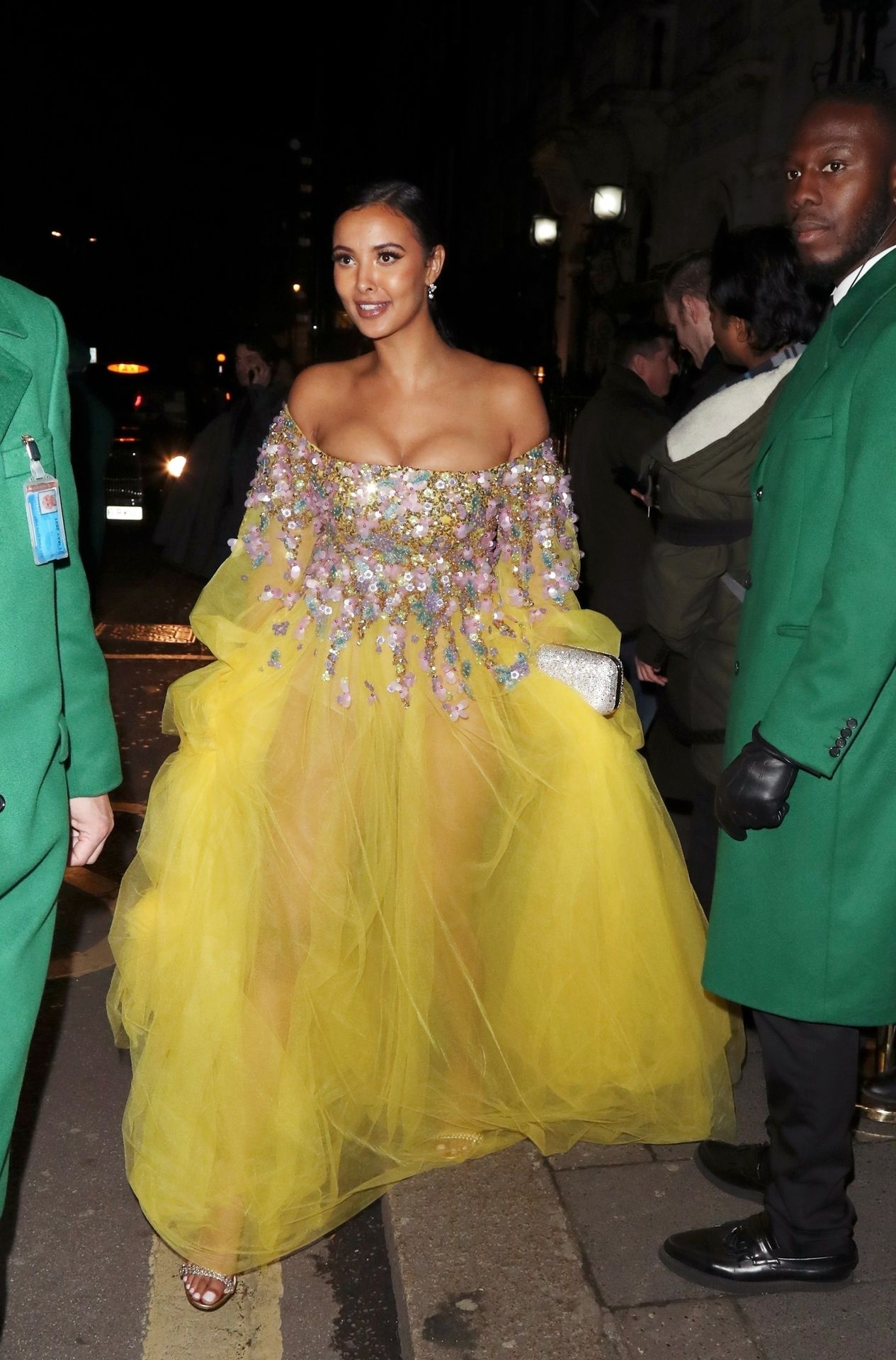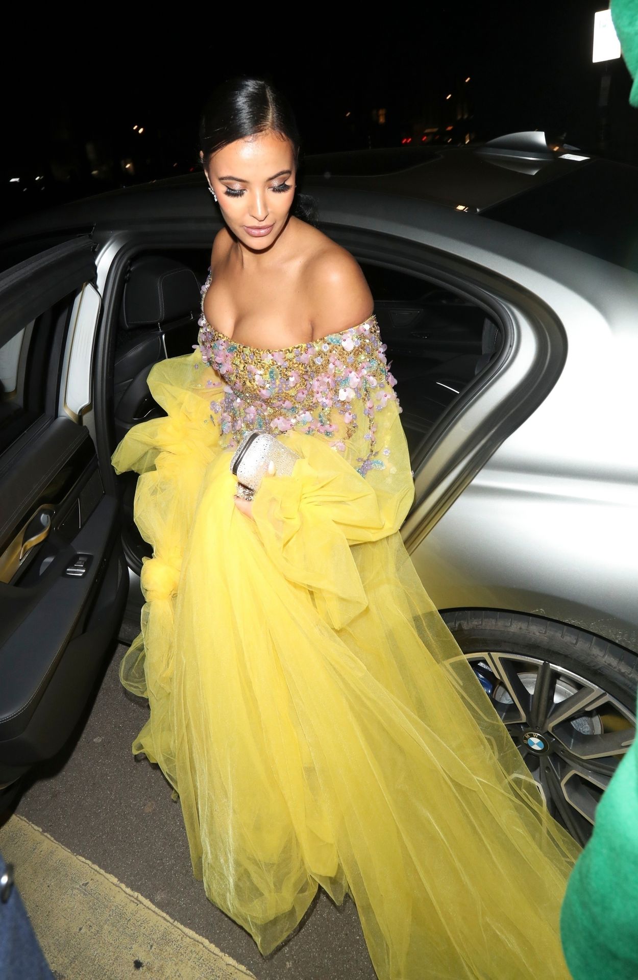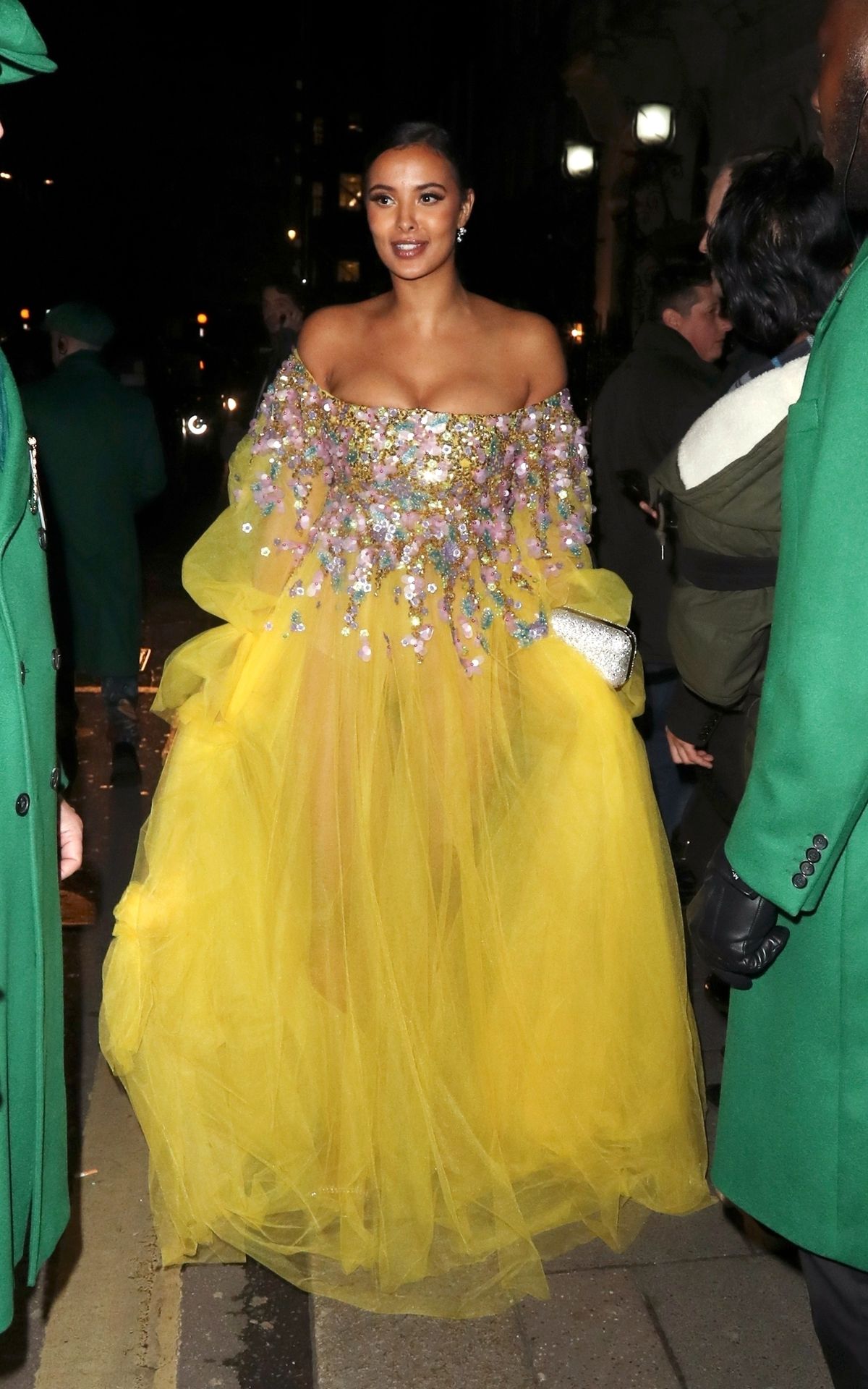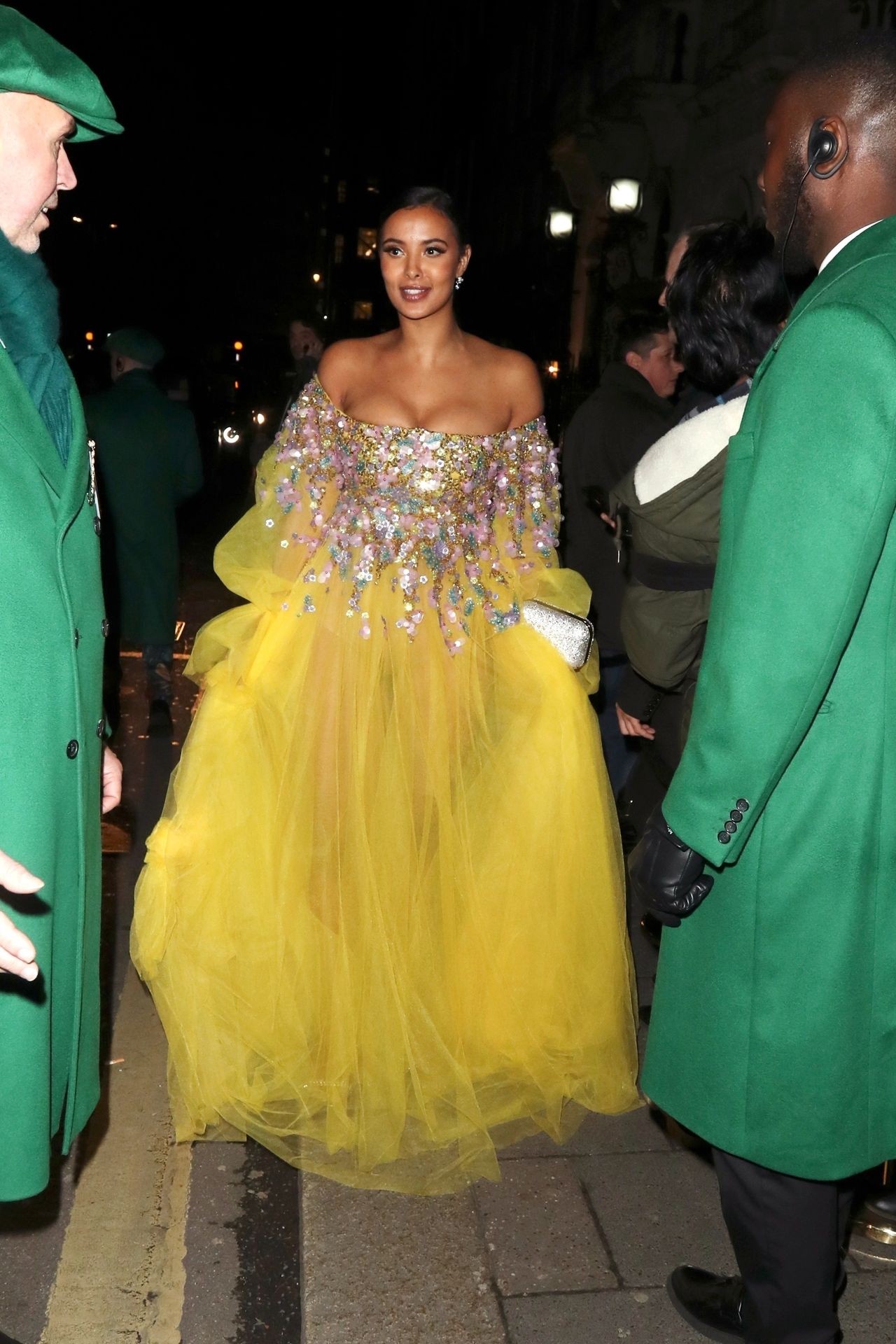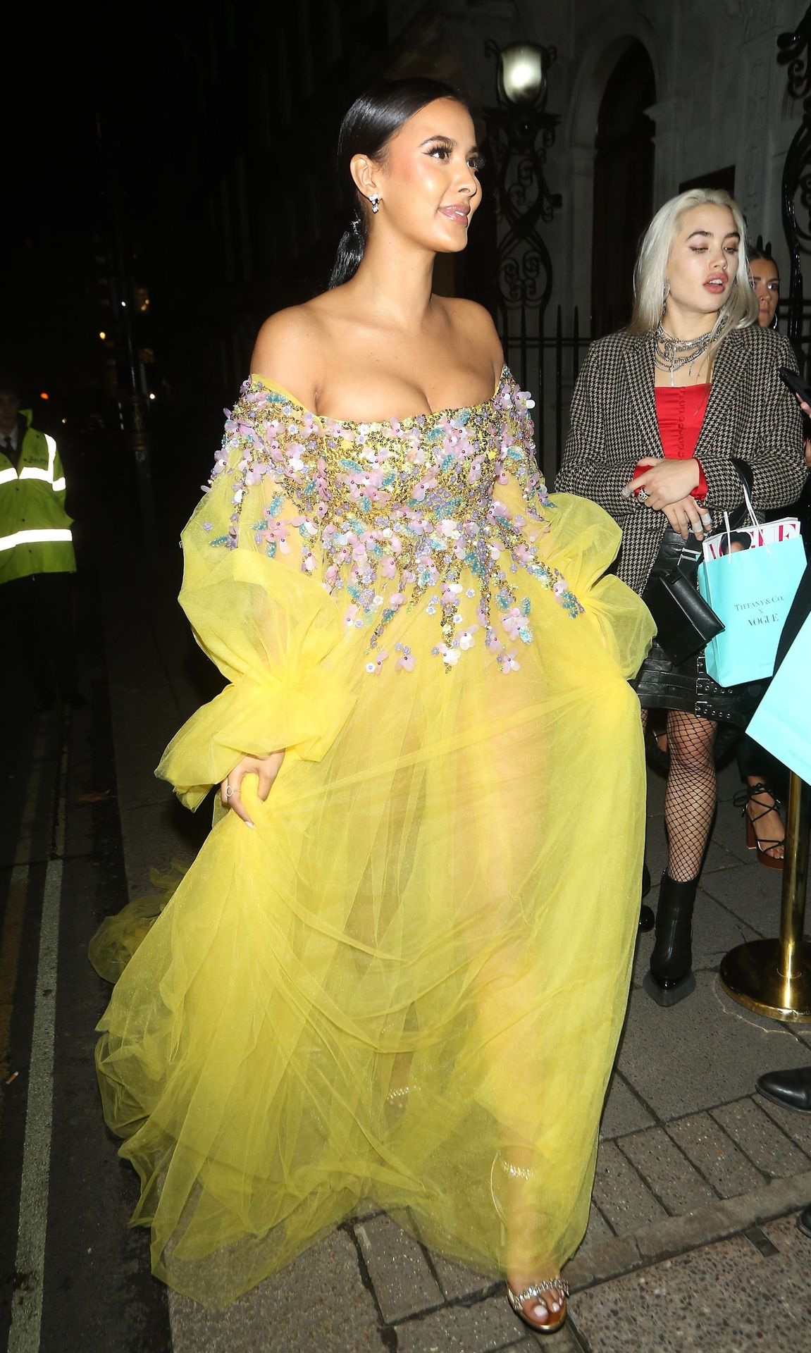 Busty TV host Maya Jama was photographed while attending the British Vogue and Tiffany & Co. Celebrate Fashion and Film Party at Annabel’s in London, 02/02/2020.