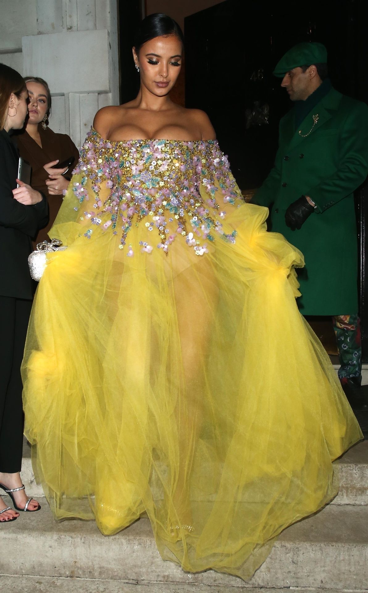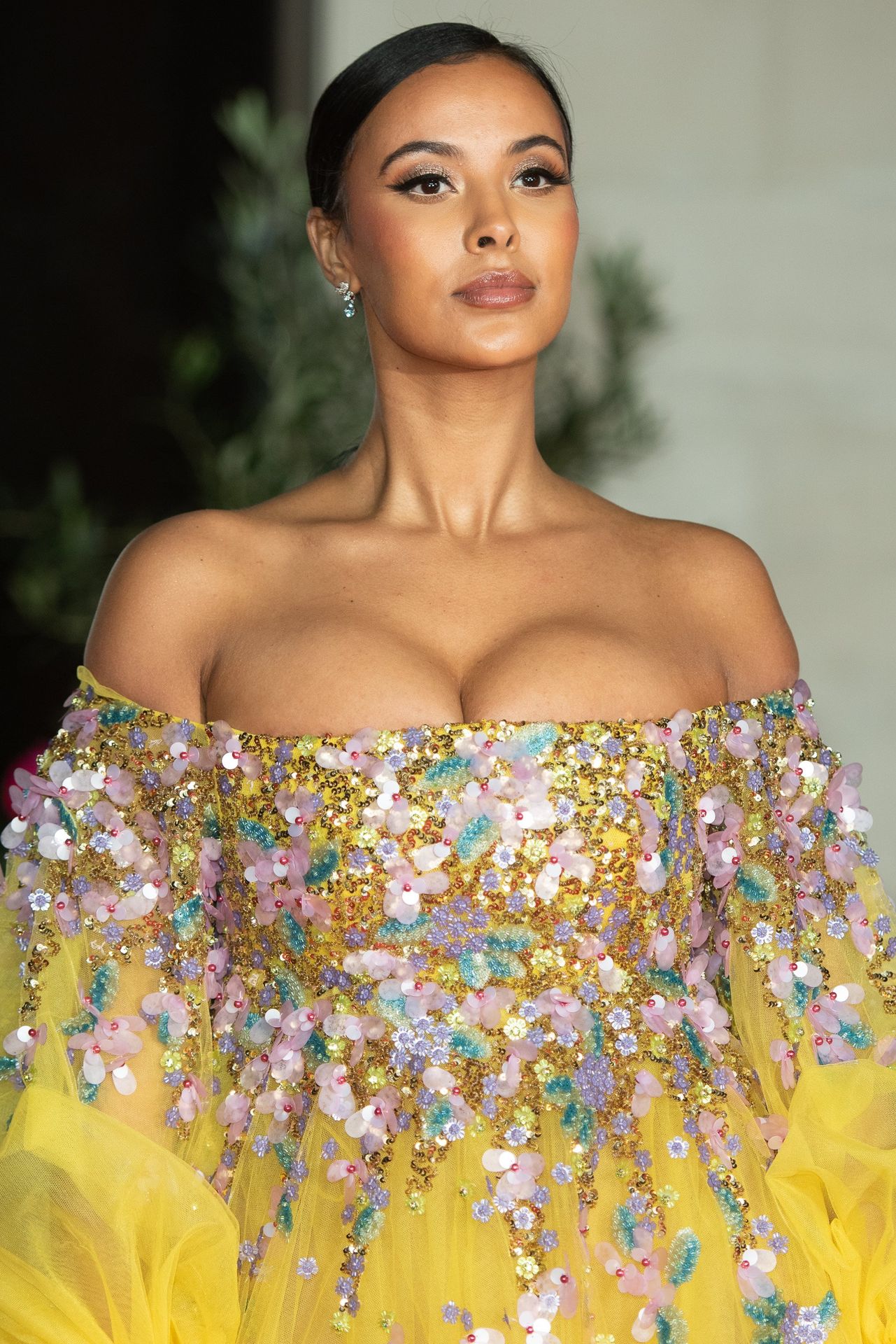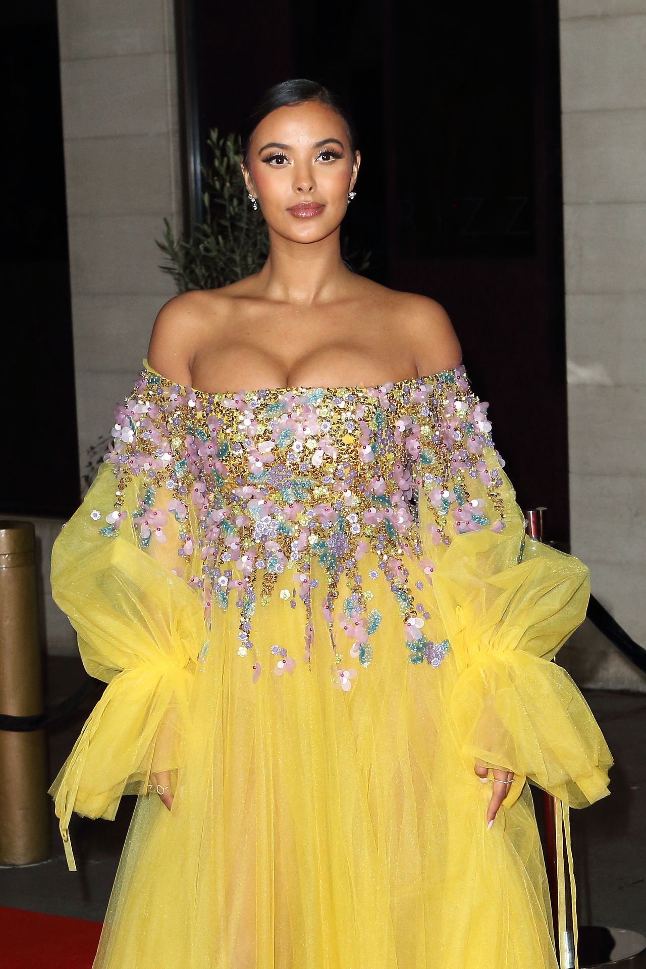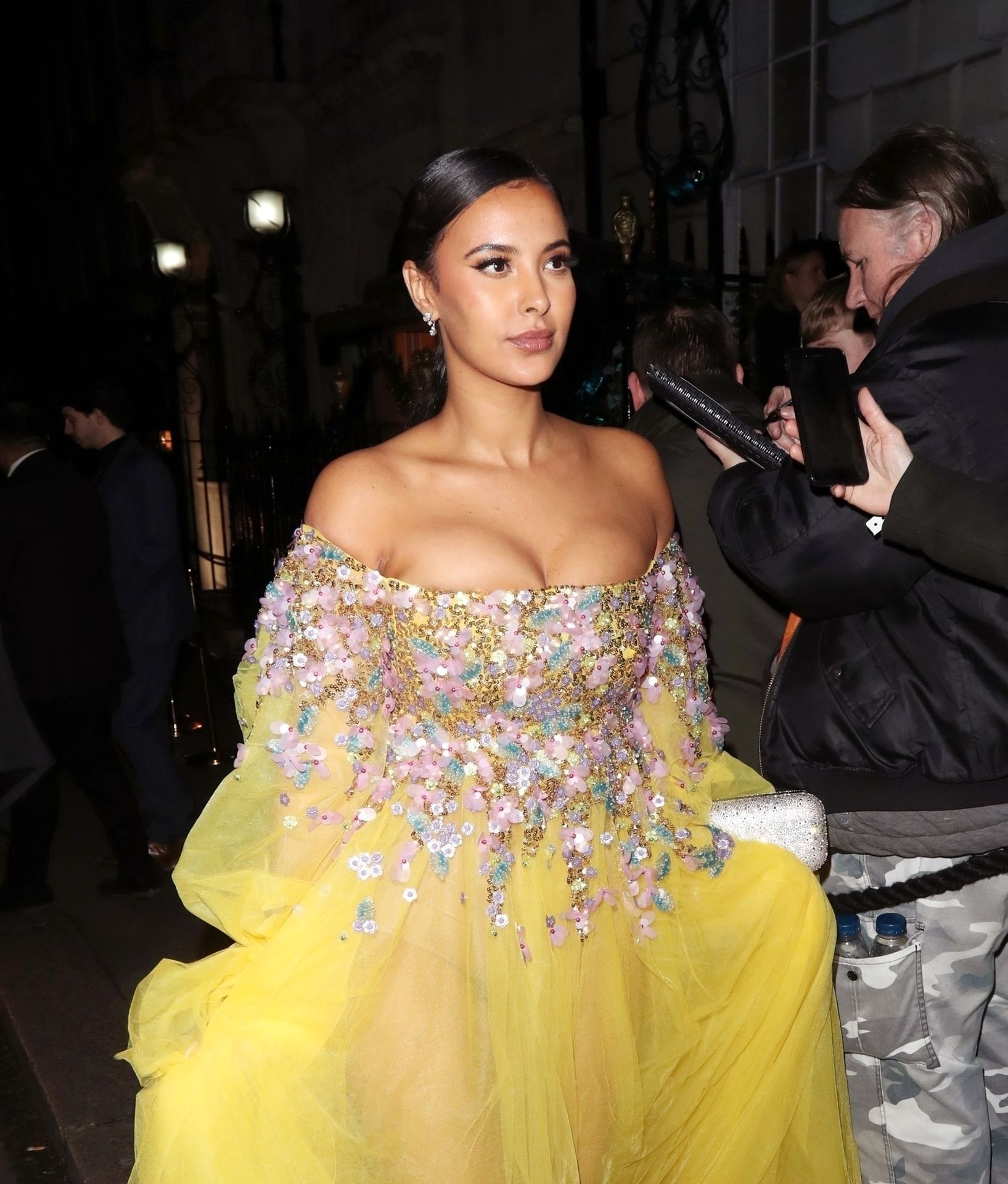 Busty TV host Maya Jama was photographed while attending the British Vogue and Tiffany & Co. Celebrate Fashion and Film Party at Annabel’s in London, 02/02/2020.