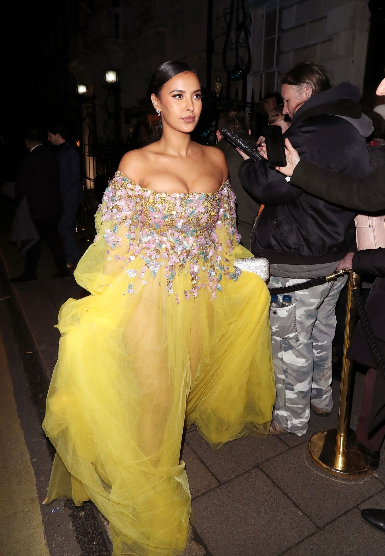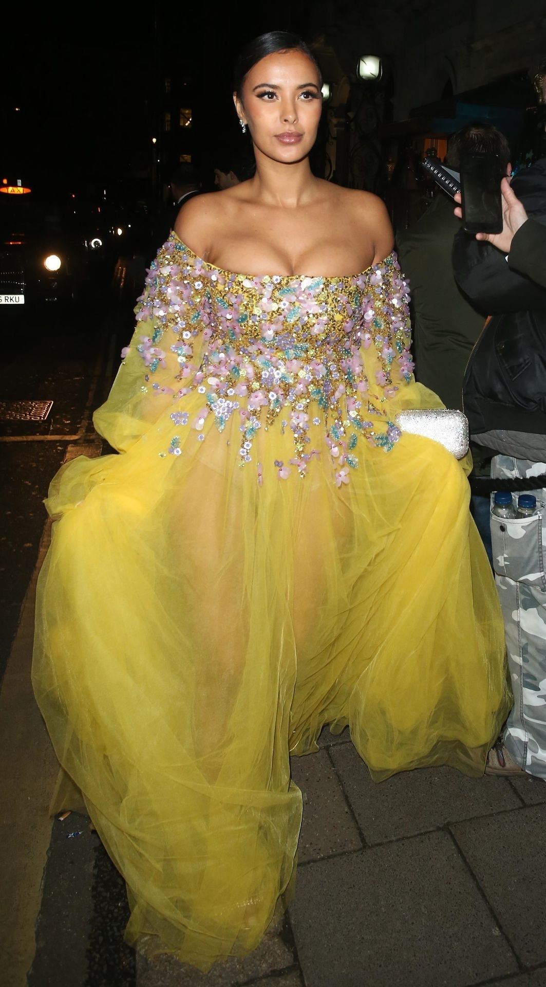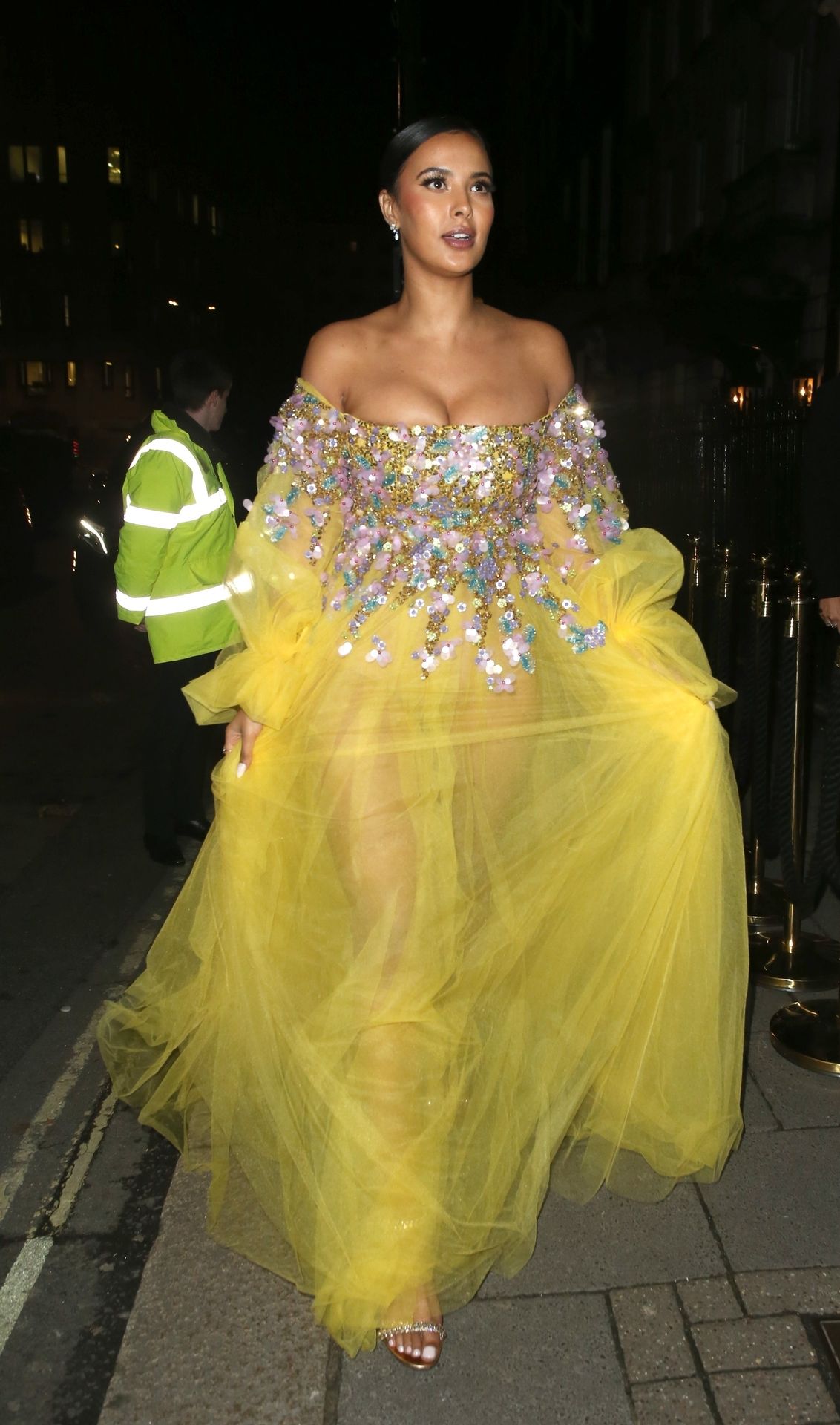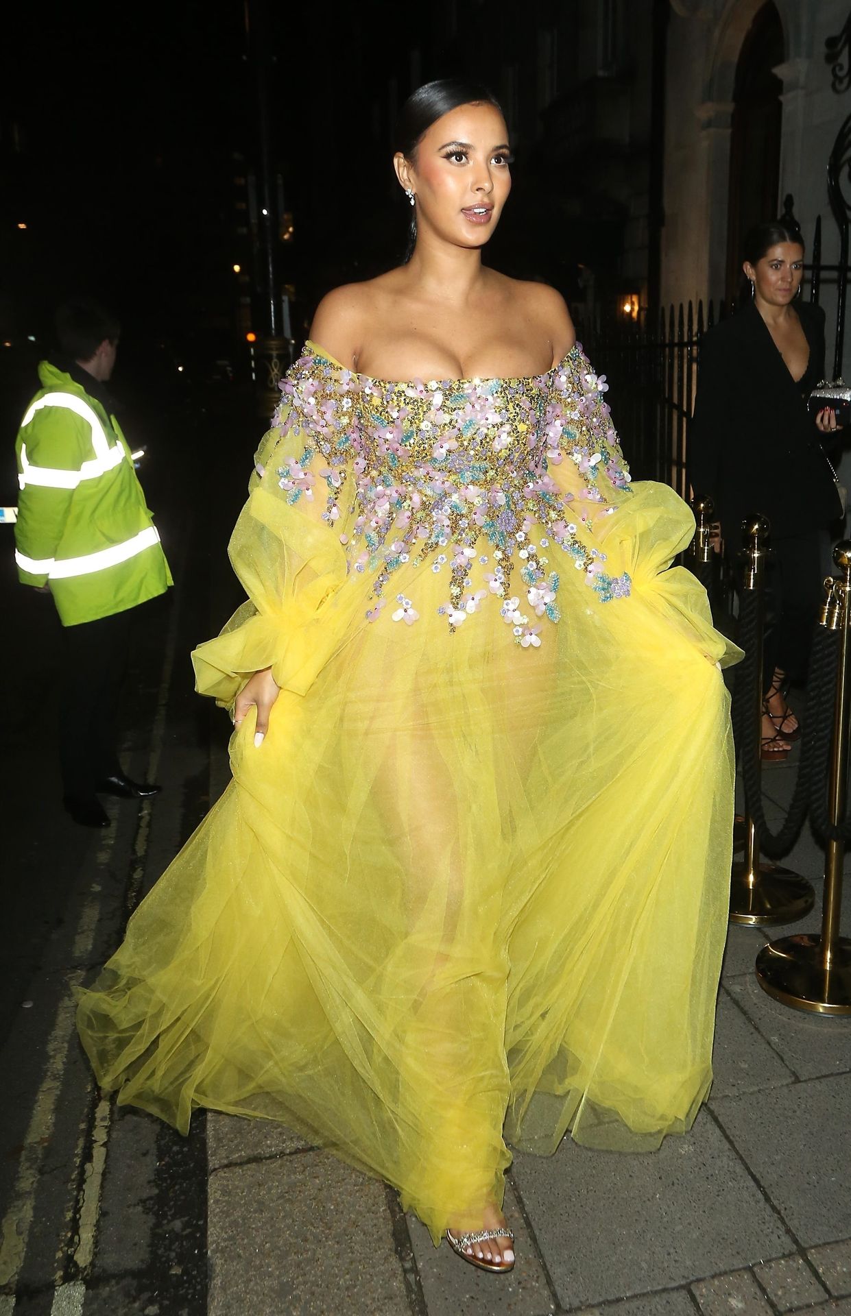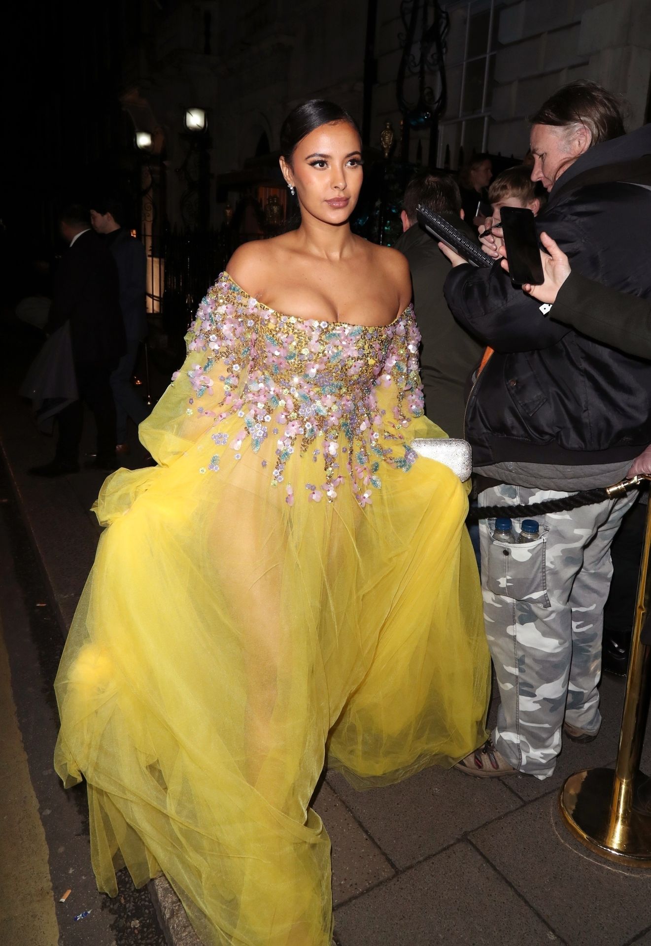 Busty TV host Maya Jama was photographed while attending the British Vogue and Tiffany & Co. Celebrate Fashion and Film Party at Annabel’s in London, 02/02/2020.