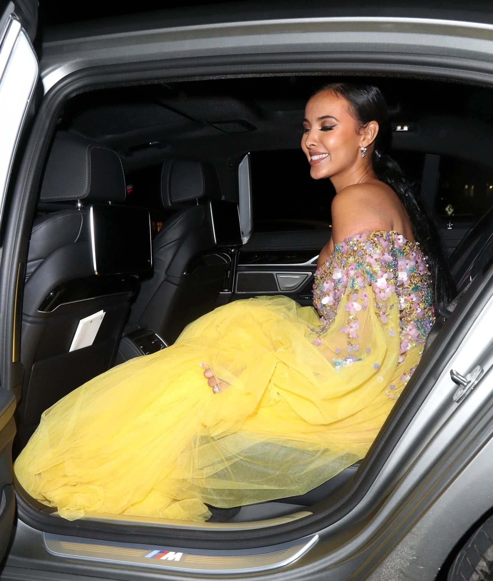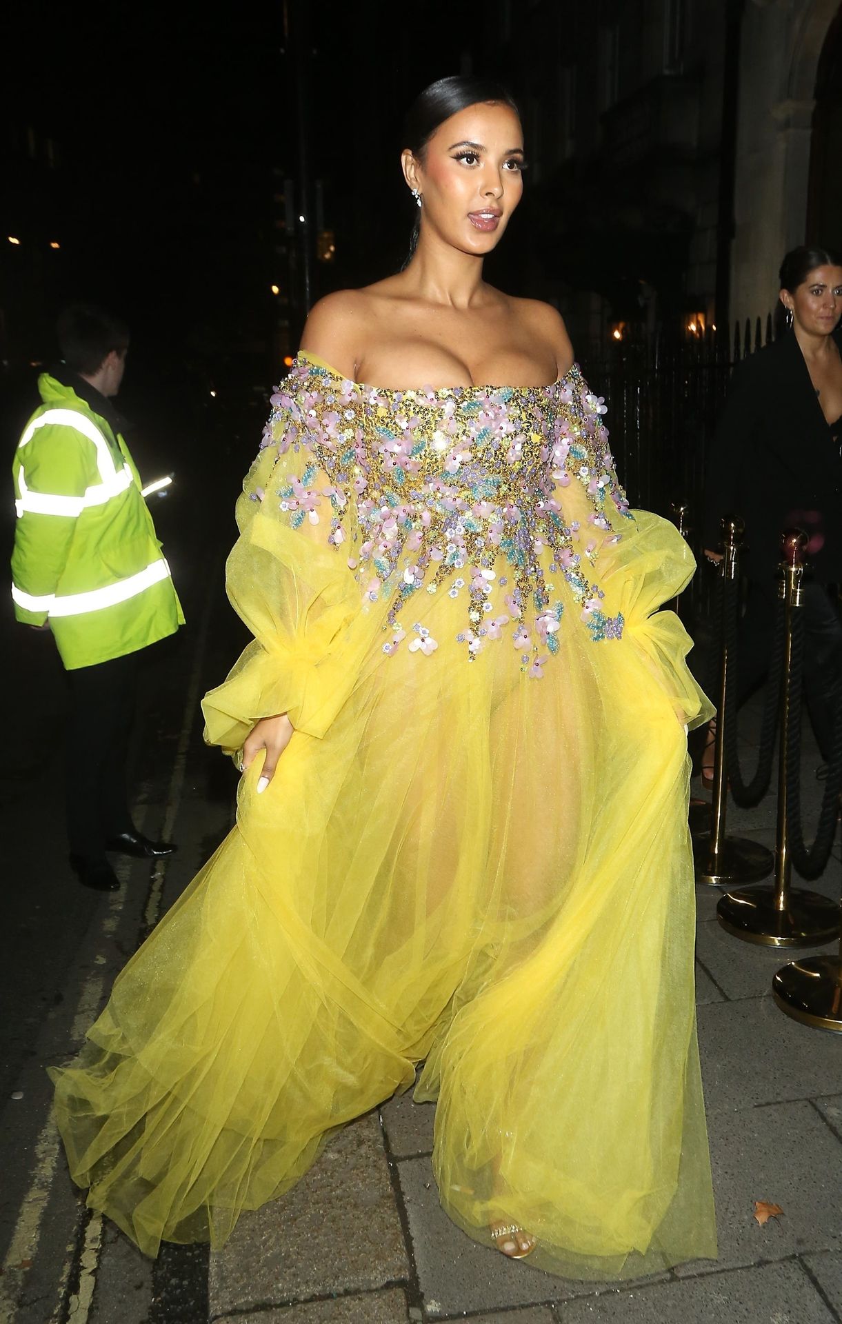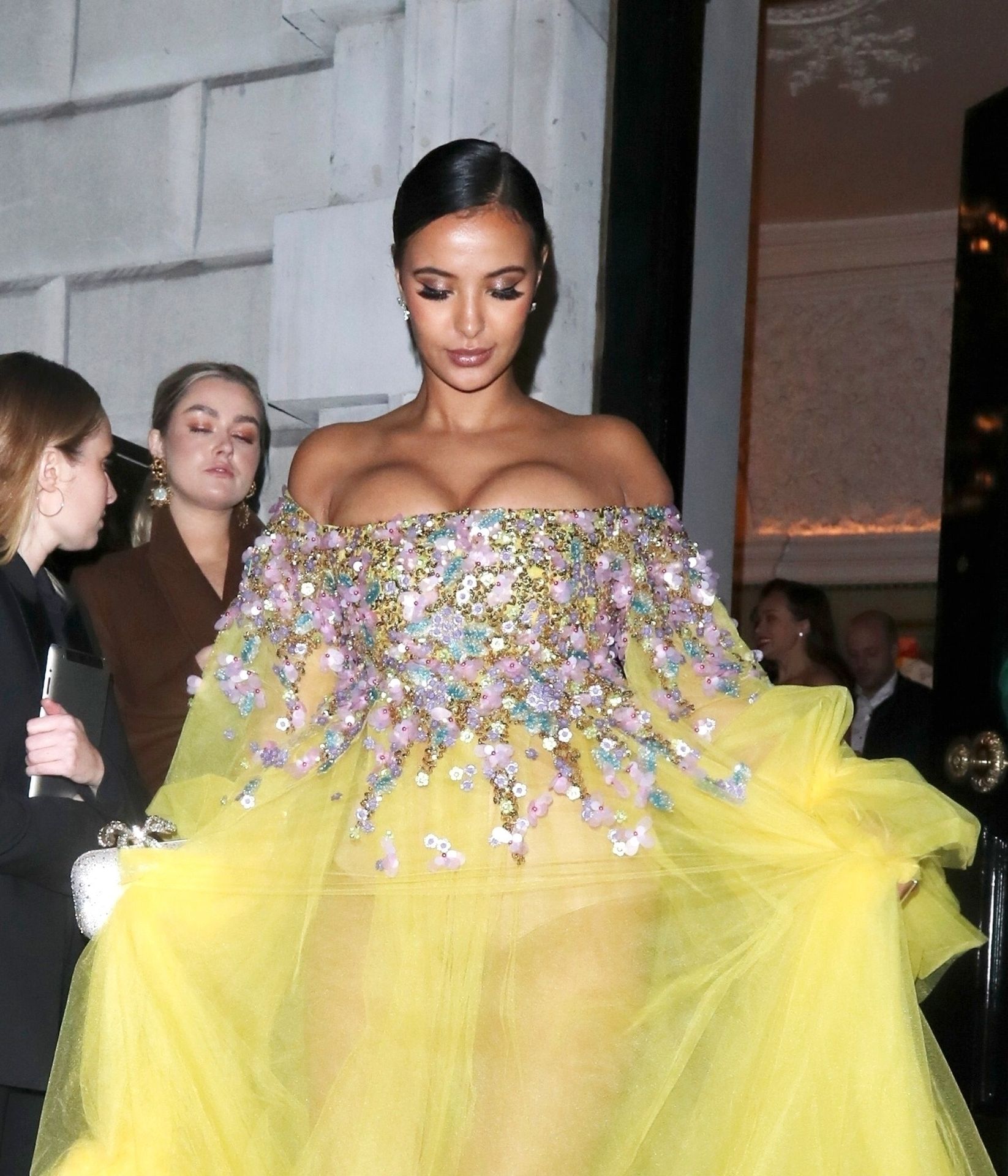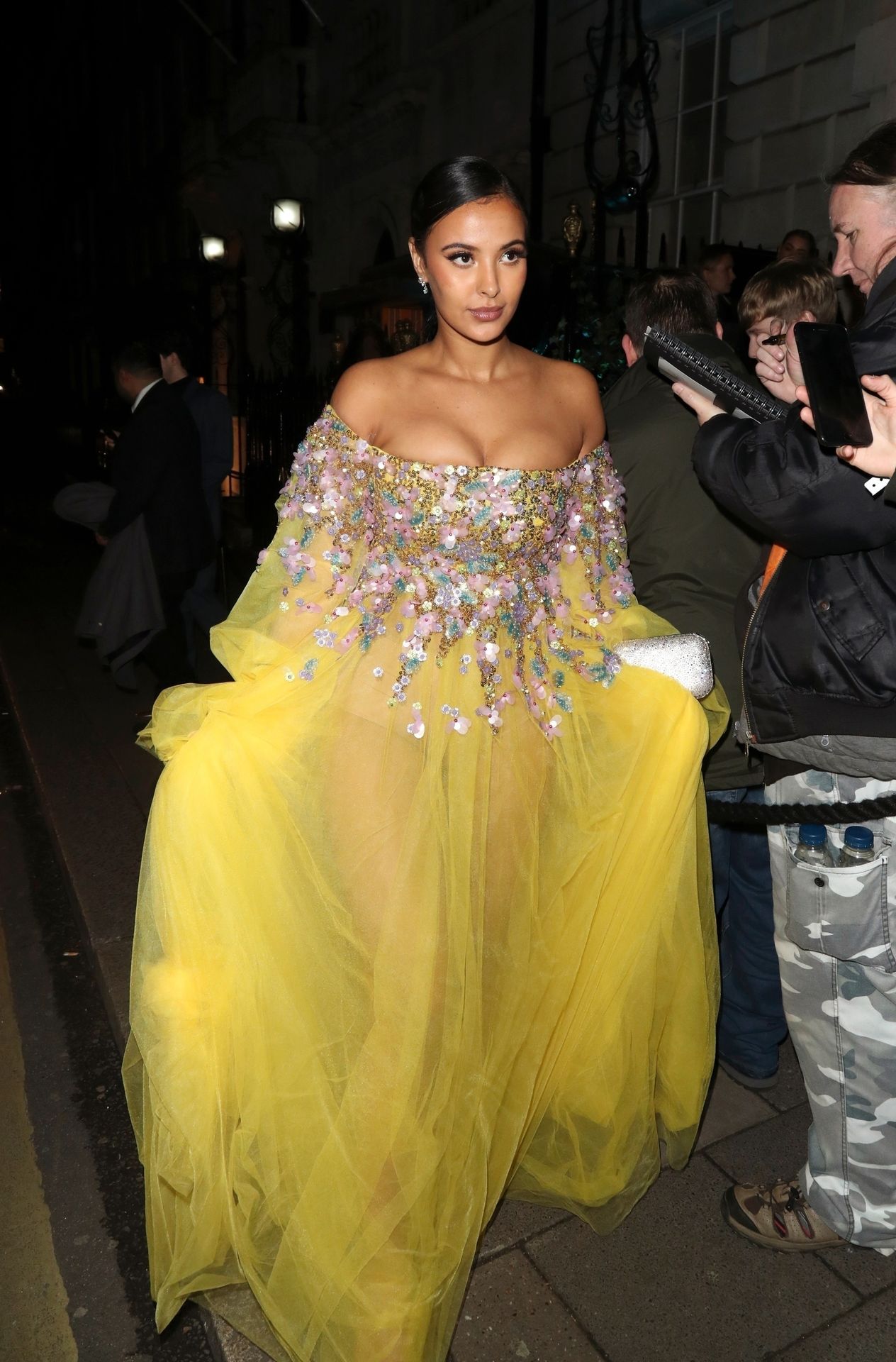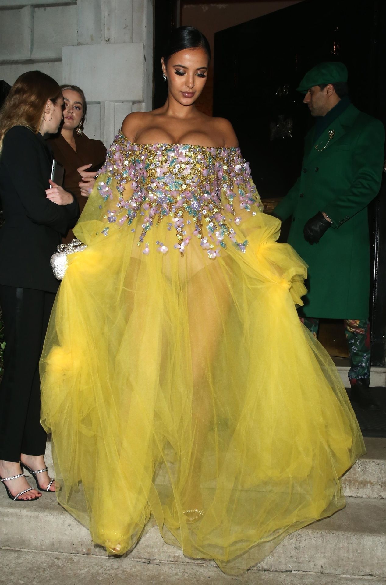 Busty TV host Maya Jama was photographed while attending the British Vogue and Tiffany & Co. Celebrate Fashion and Film Party at Annabel’s in London, 02/02/2020.