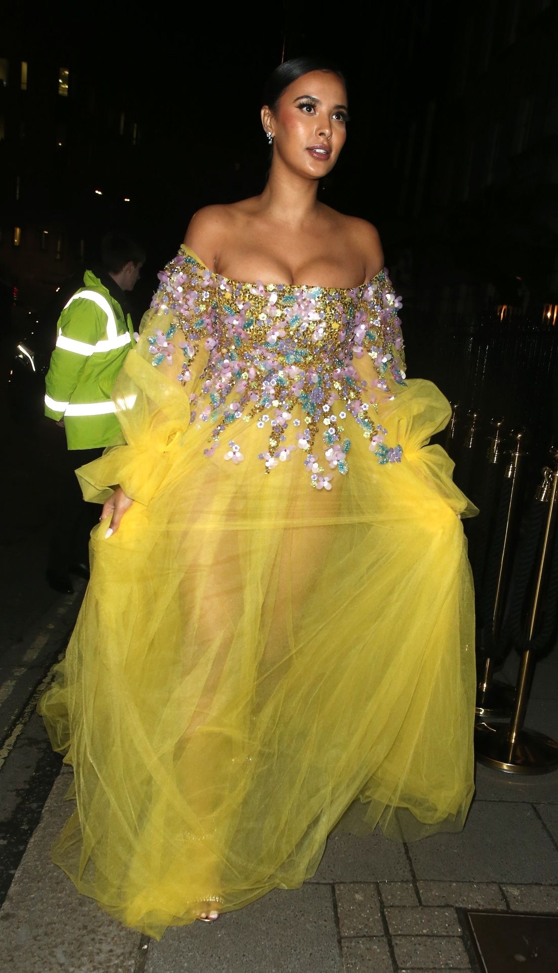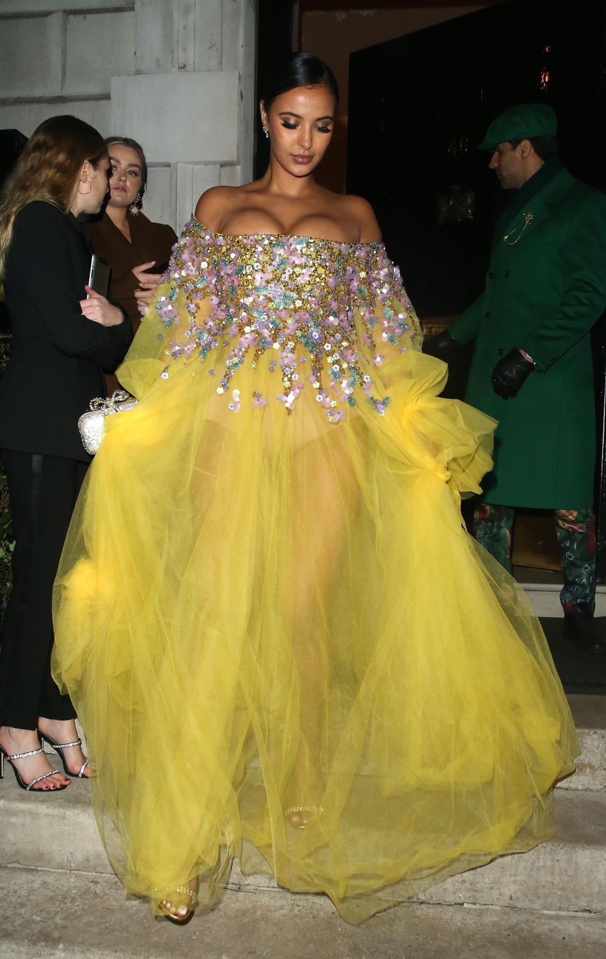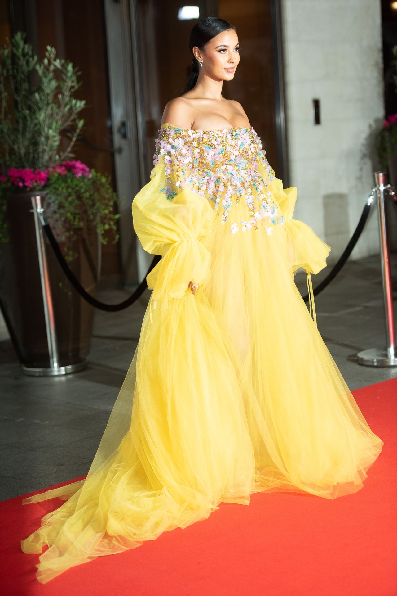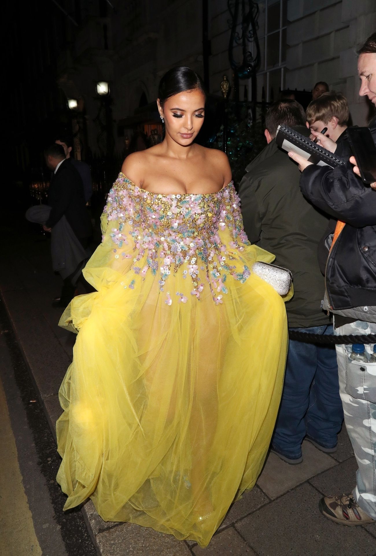Busty TV host Maya Jama was photographed while attending the British Vogue and Tiffany & Co. Celebrate Fashion and Film Party at Annabel’s in London, 02/02/2020.