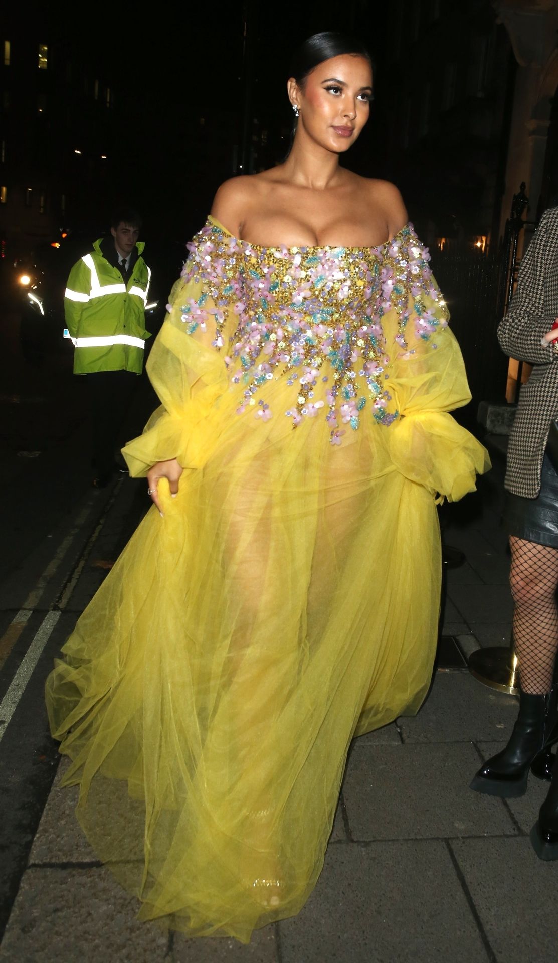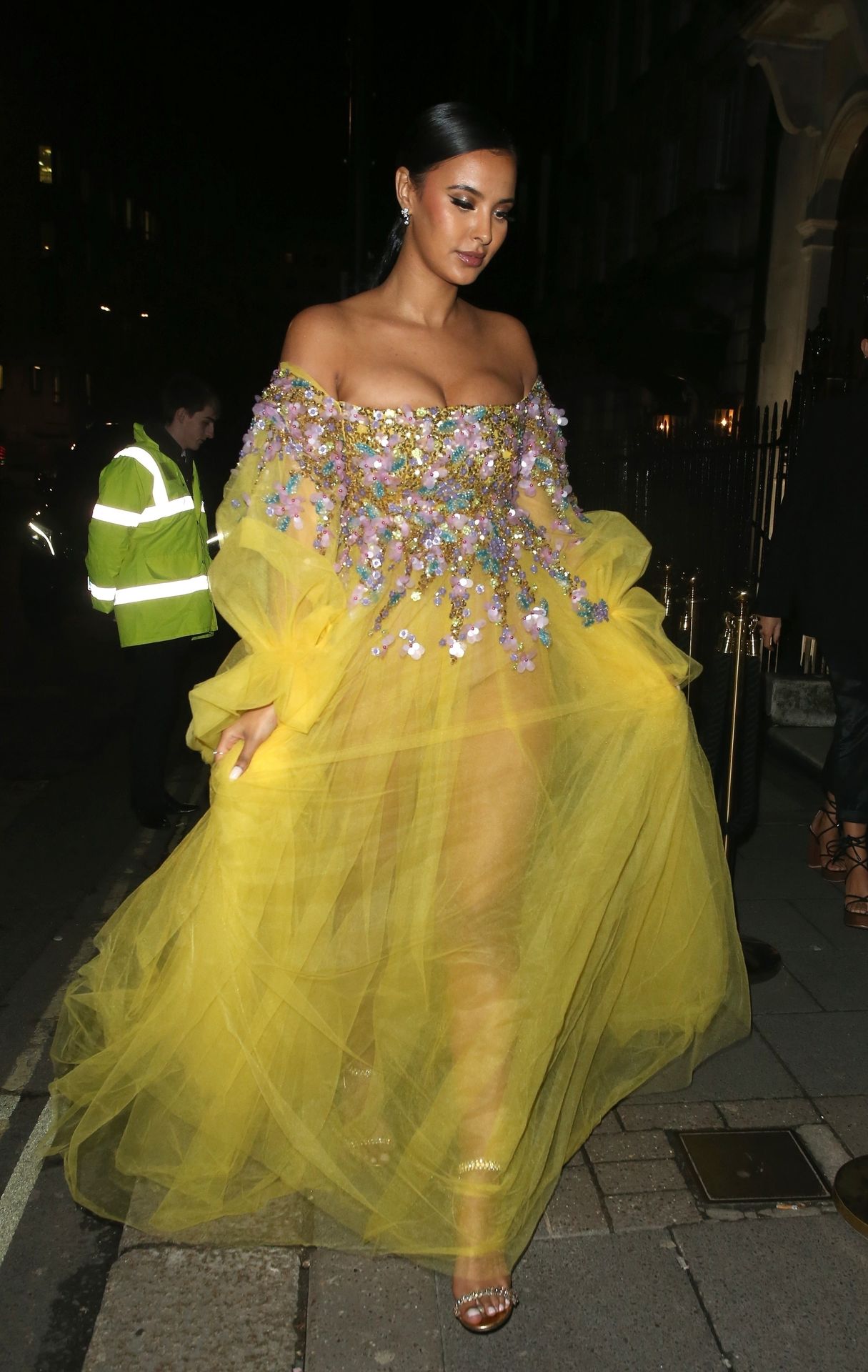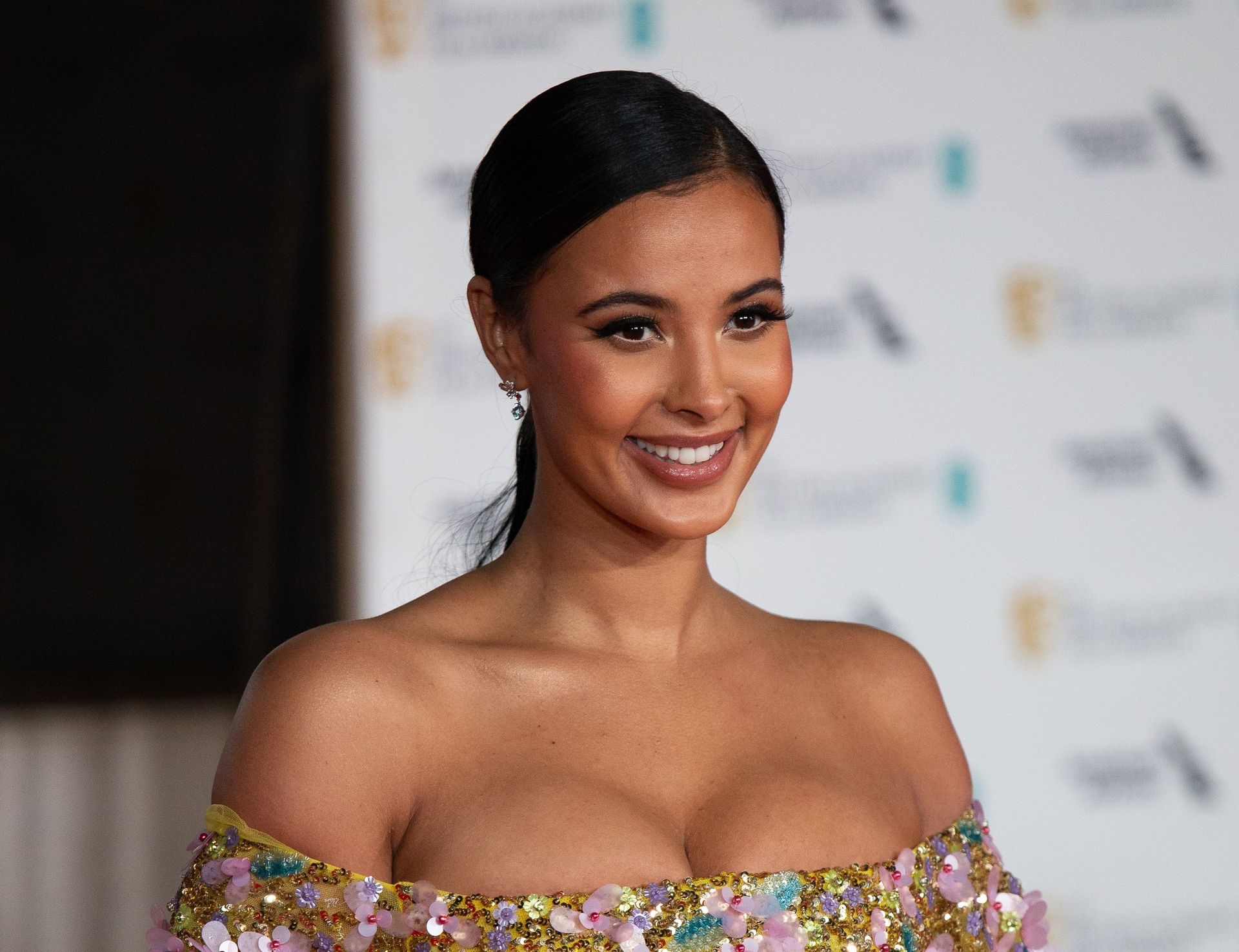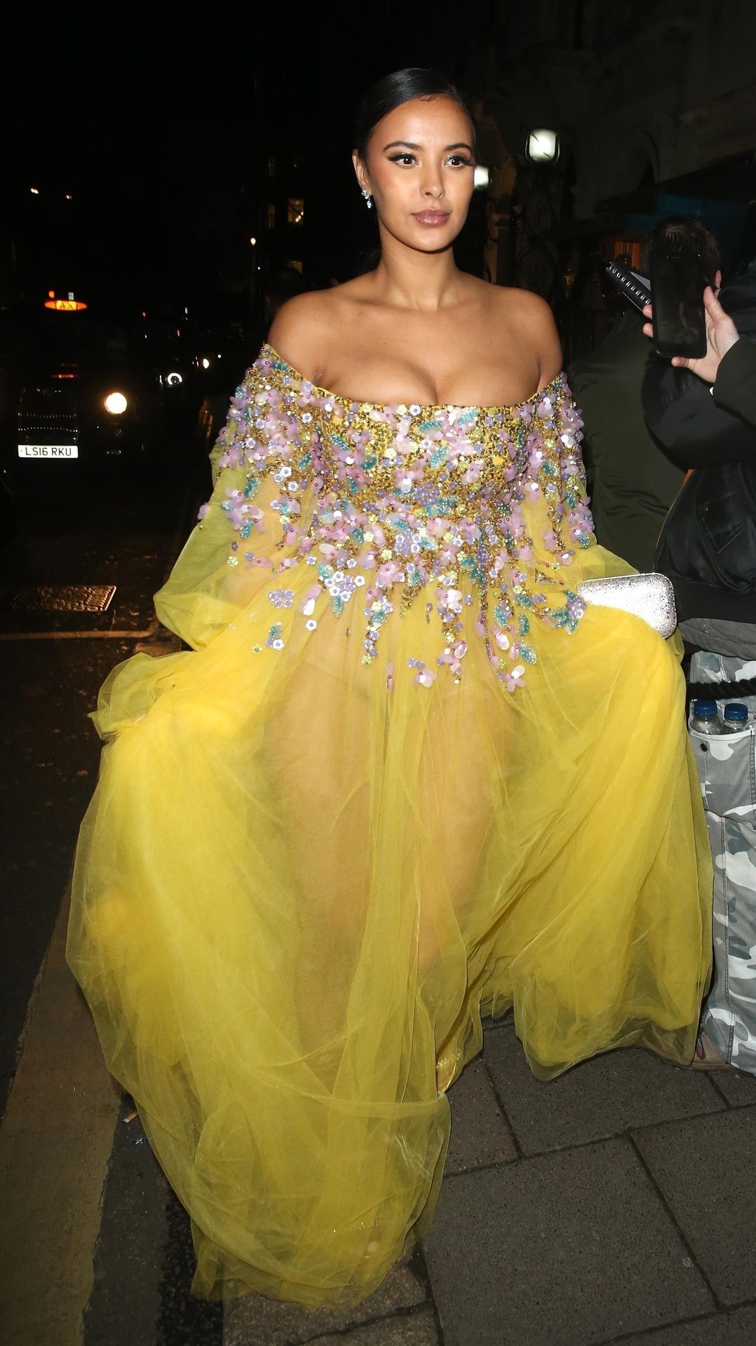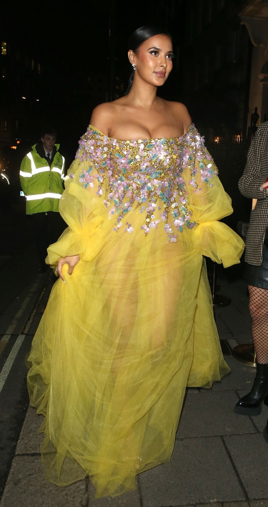 Busty TV host Maya Jama was photographed while attending the British Vogue and Tiffany & Co. Celebrate Fashion and Film Party at Annabel’s in London, 02/02/2020.