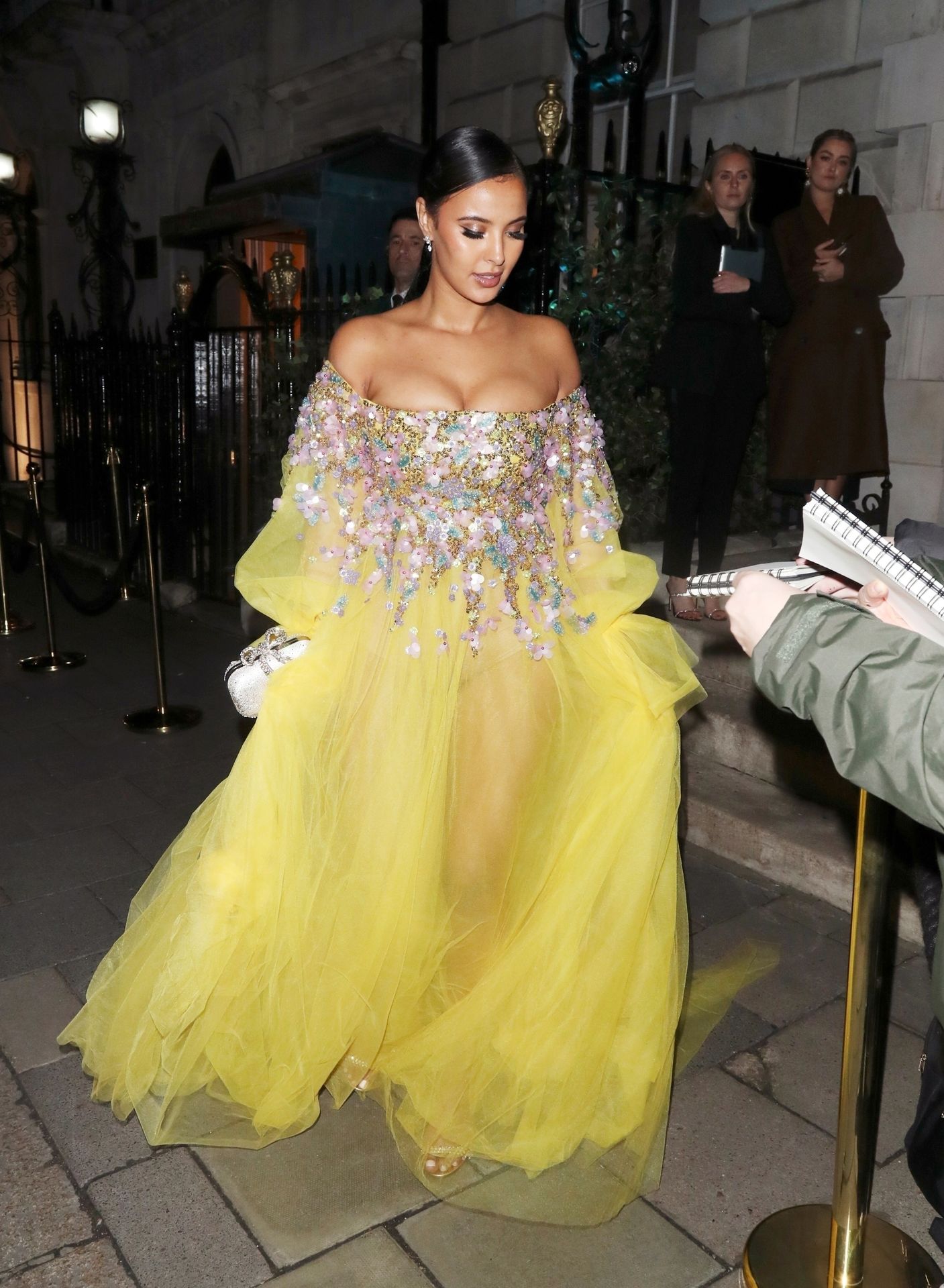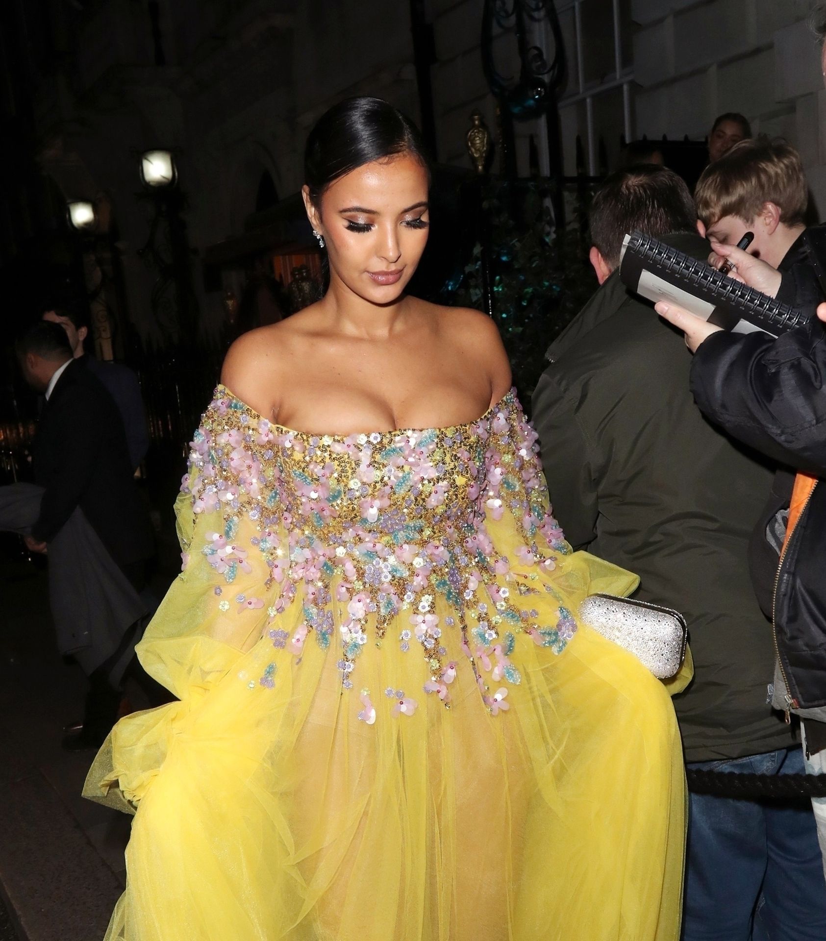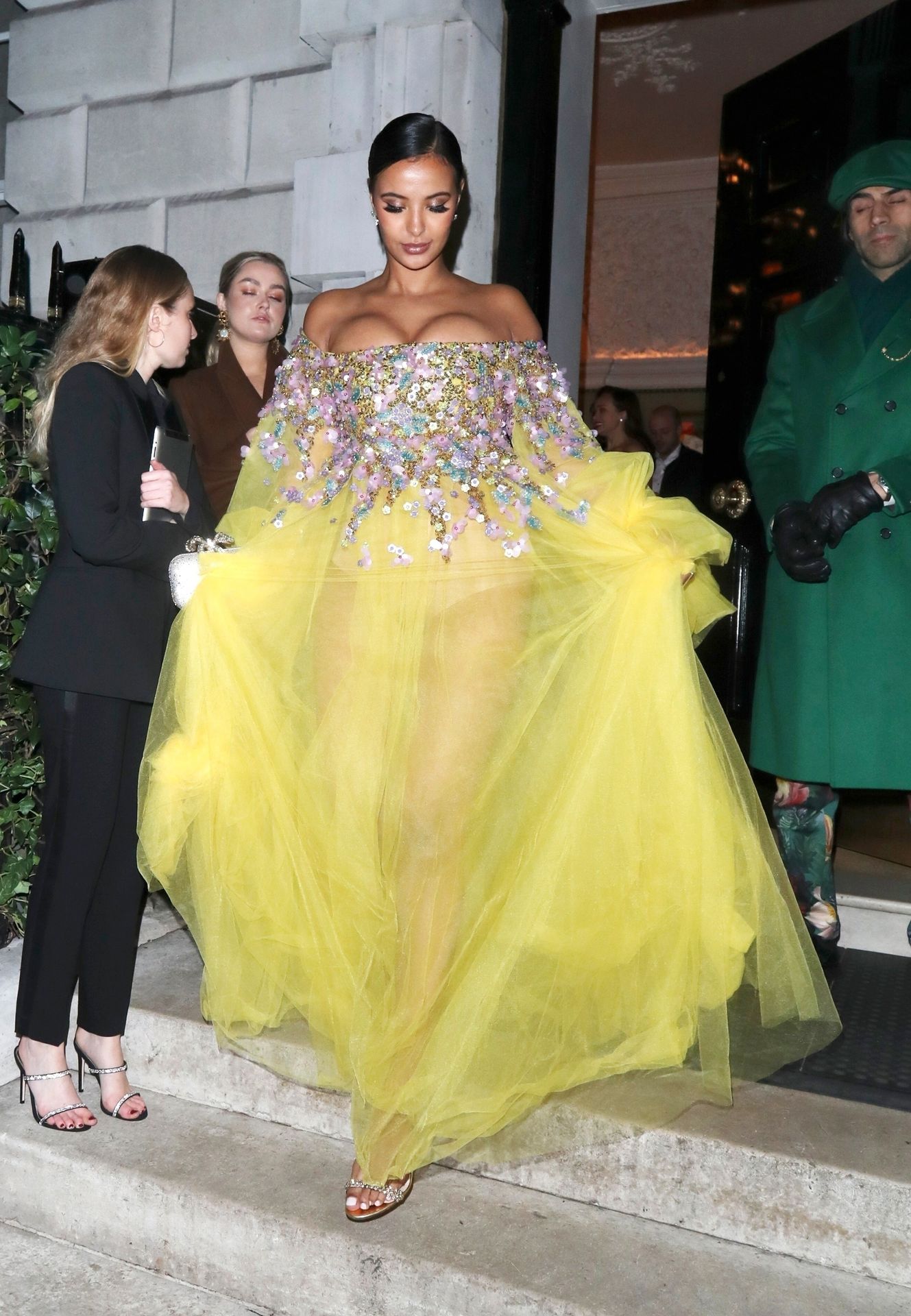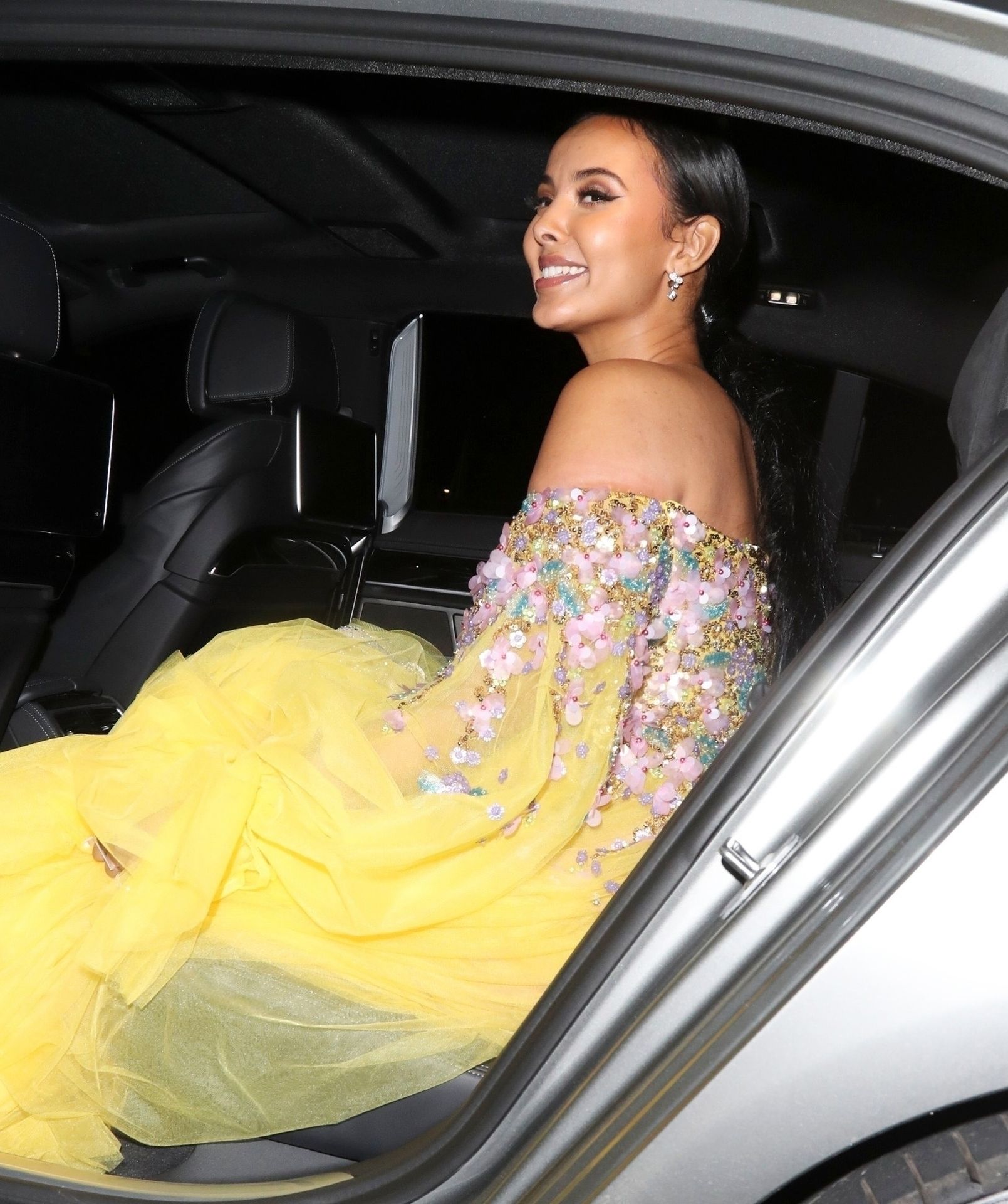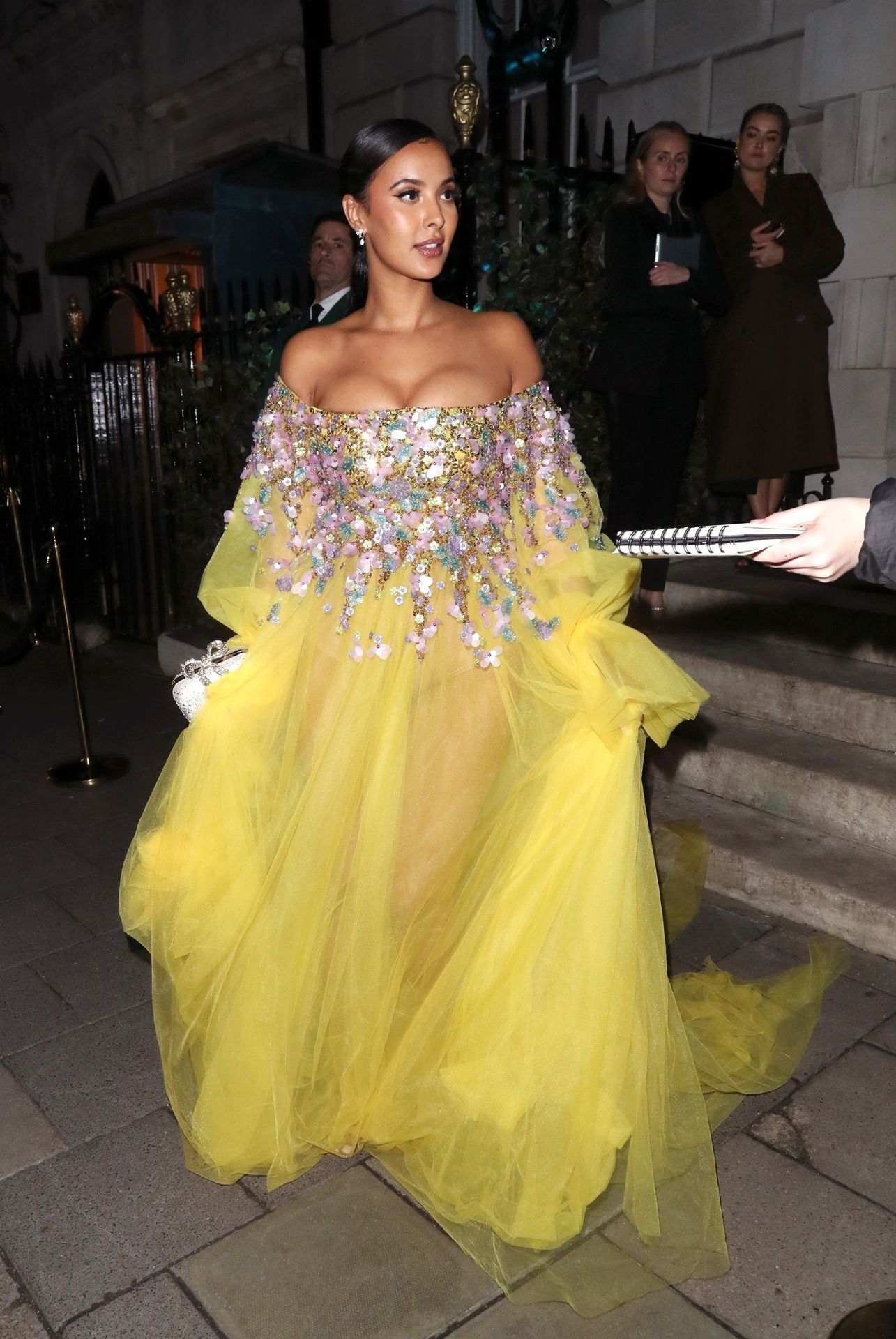 Busty TV host Maya Jama was photographed while attending the British Vogue and Tiffany & Co. Celebrate Fashion and Film Party at Annabel’s in London, 02/02/2020.