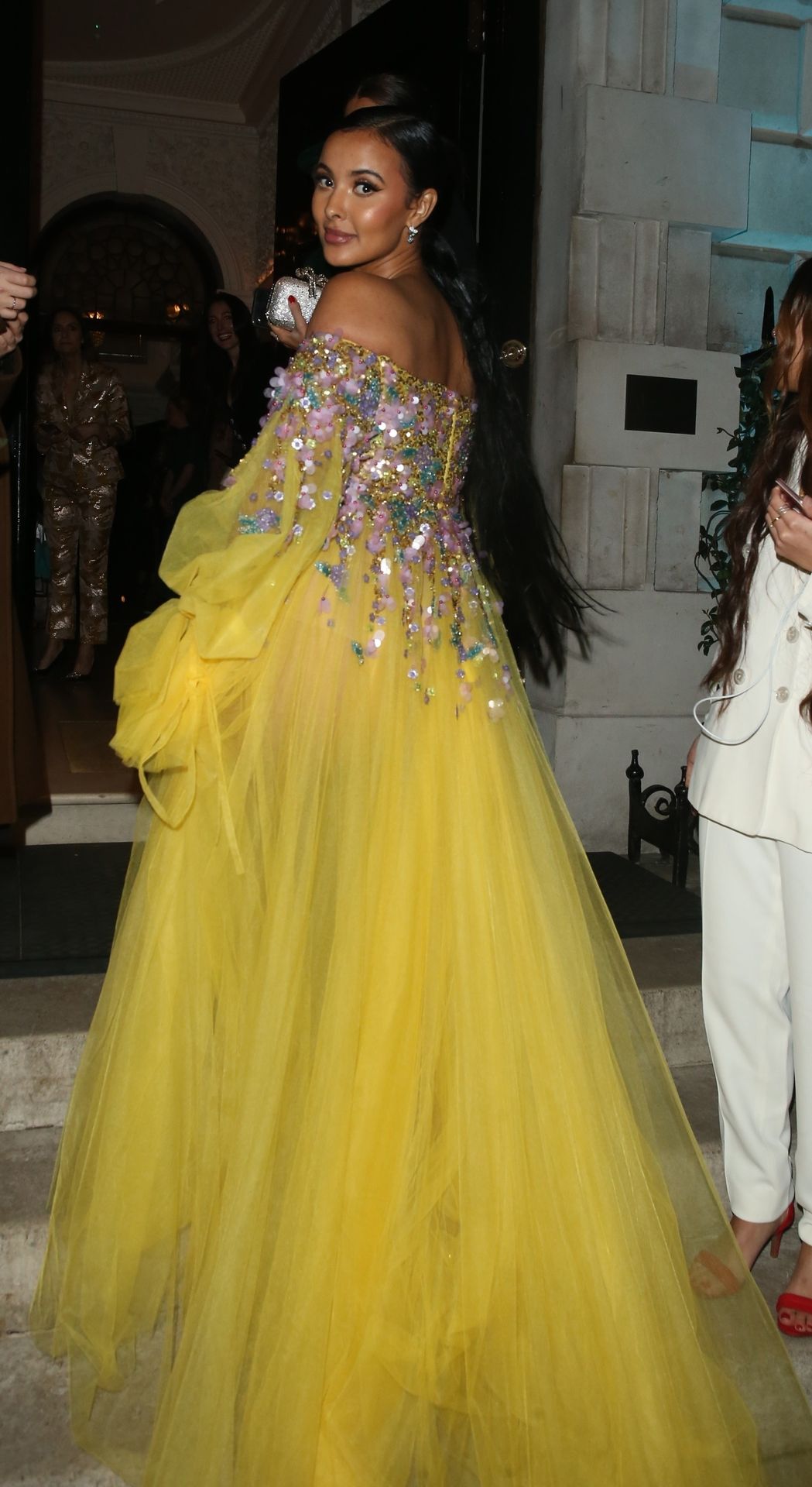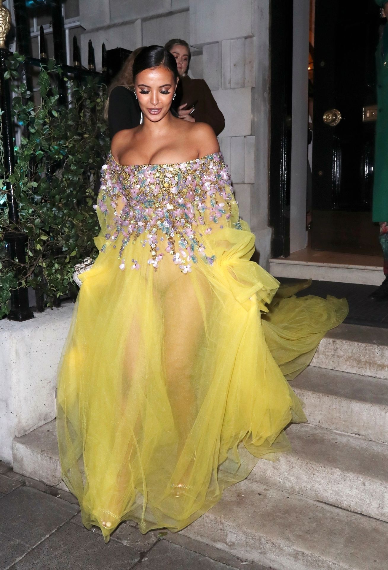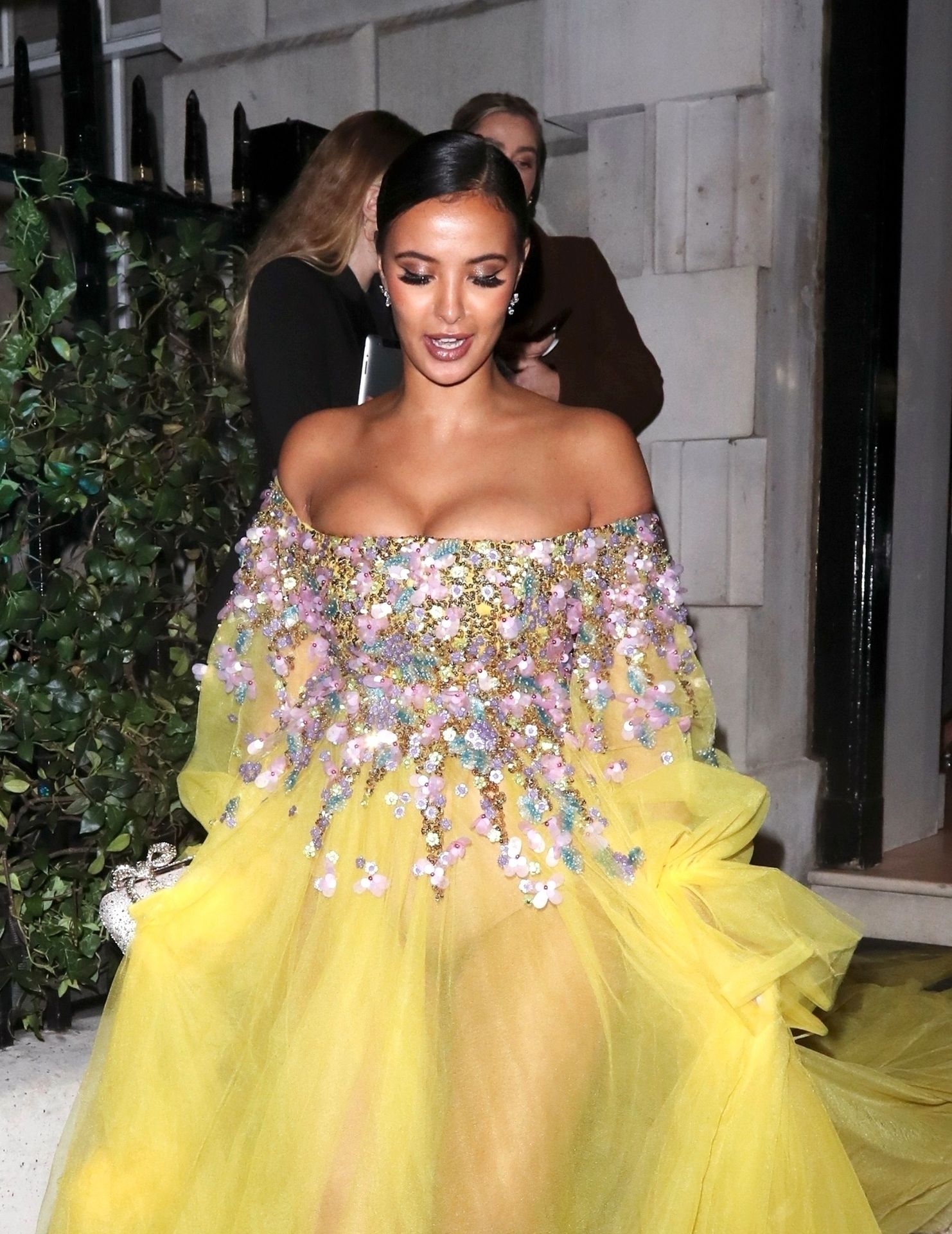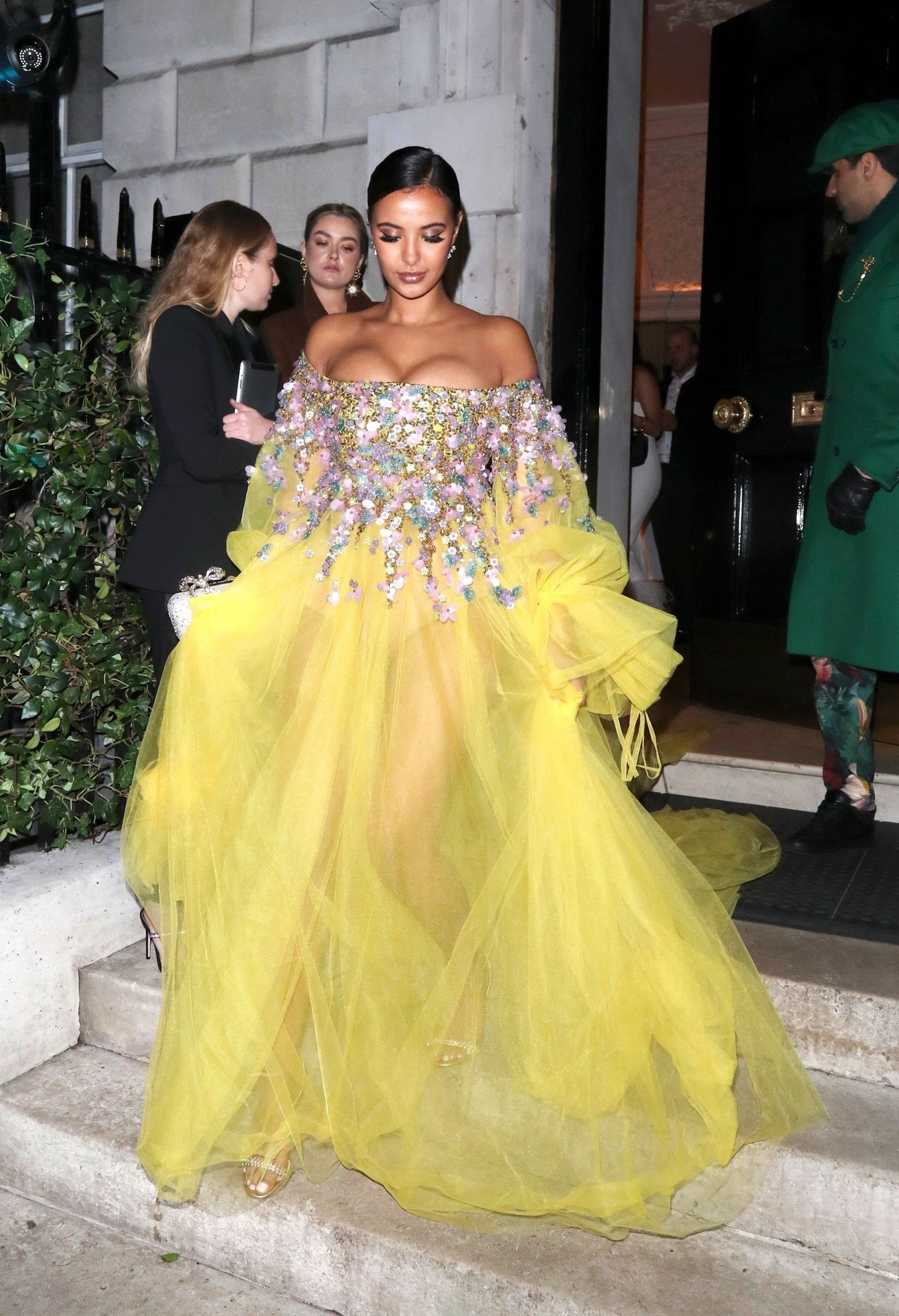 Busty TV host Maya Jama was photographed while attending the British Vogue and Tiffany & Co. Celebrate Fashion and Film Party at Annabel’s in London, 02/02/2020.